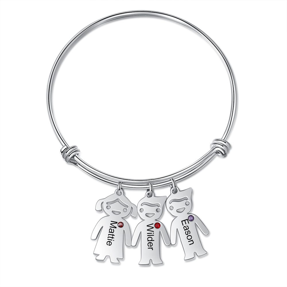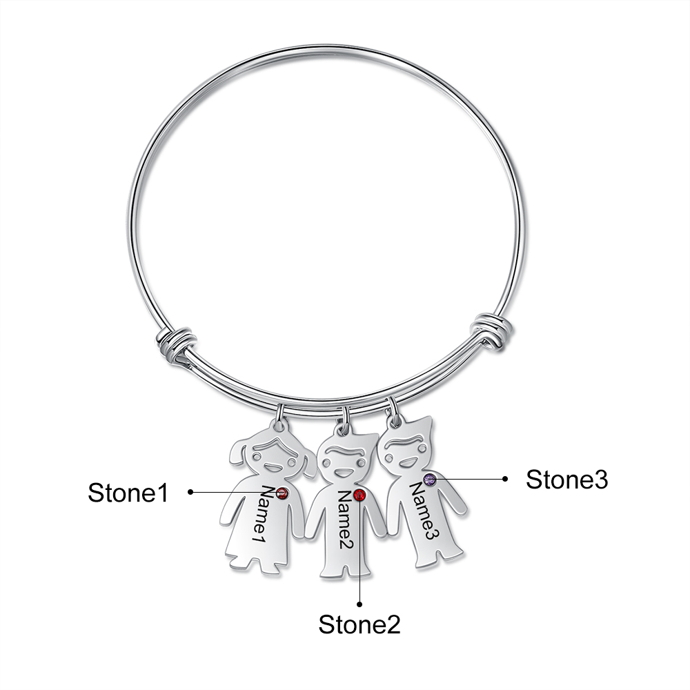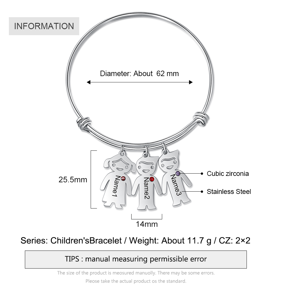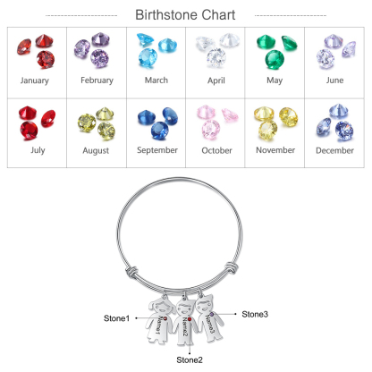 Personalized Kids Charm Bracelet With 3 Birthstones Engraved Names Bracelet Gift For Women