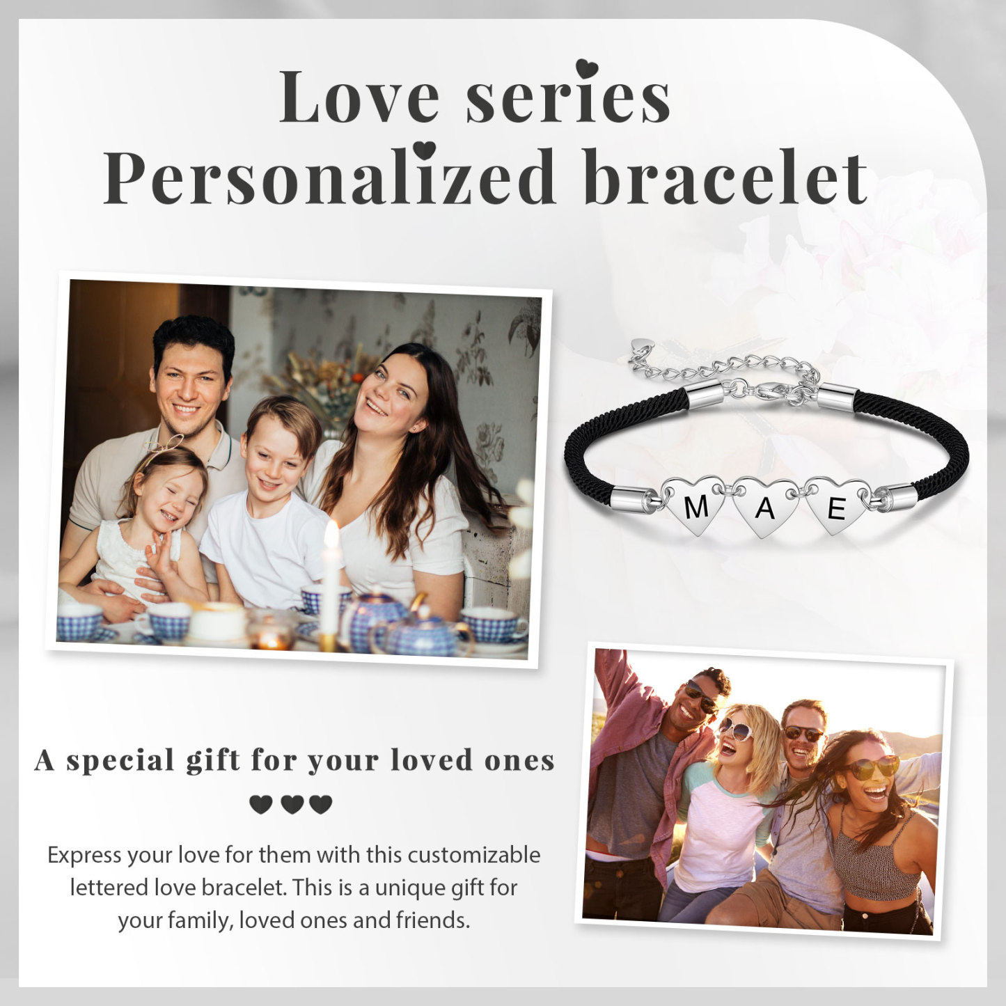 Our Heart Adjustable Bracelet is a symbol of love and personalization❤️. This exquisite bracelet allows you to customize 1-4 hearts, each of which can be engraved with your choice of letters.