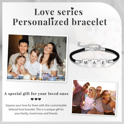 3 Letters-Personalized Heart Bracelet With 3 Letters Custom Bracelet Gift