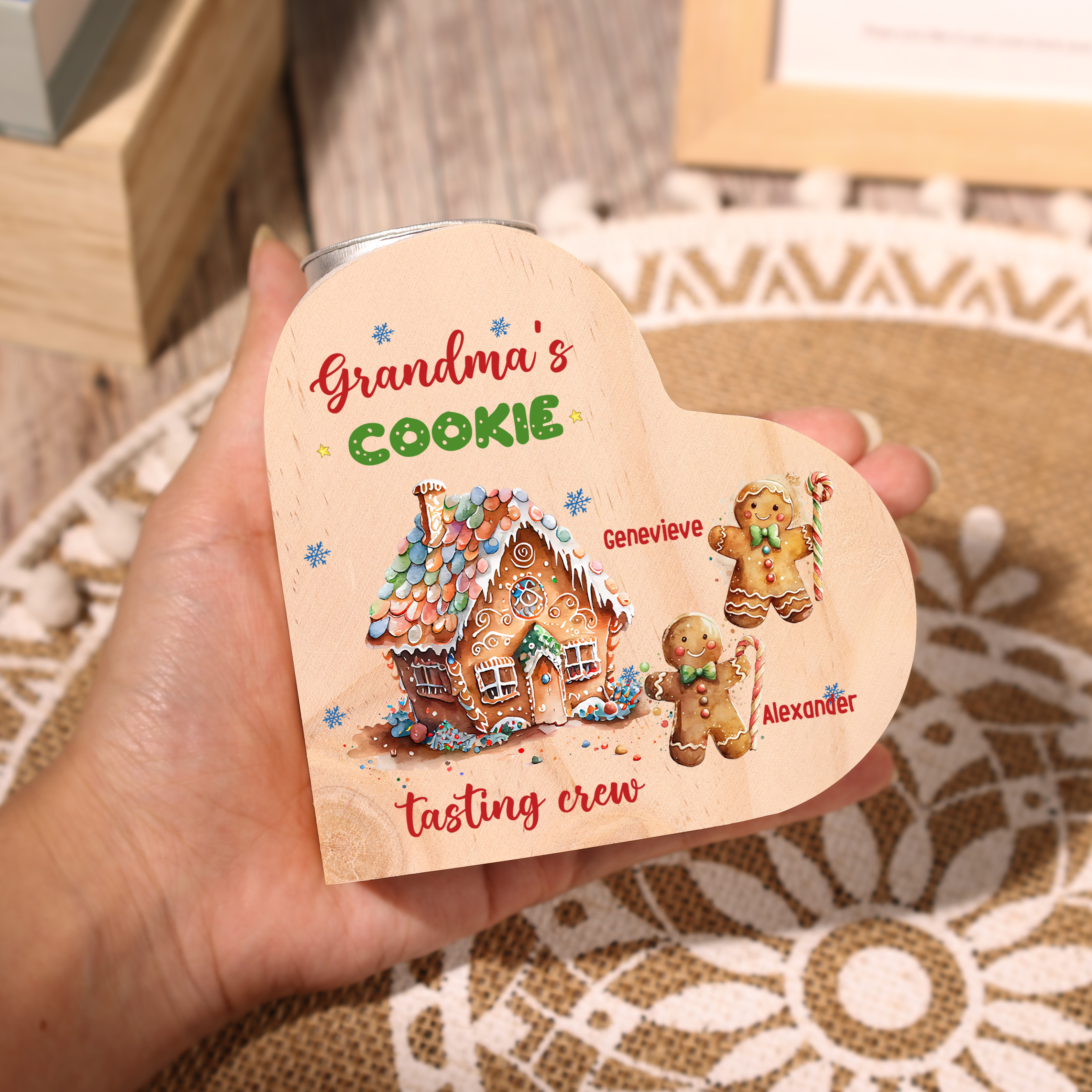 3 Names-Custom Christmas Wooden Candlestick-Personalized Names Cookie Heart Candle Holder Christmas Gift for Family