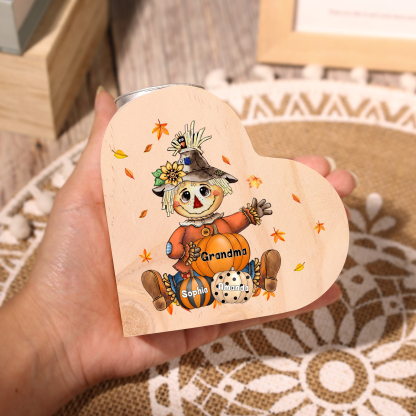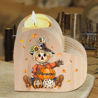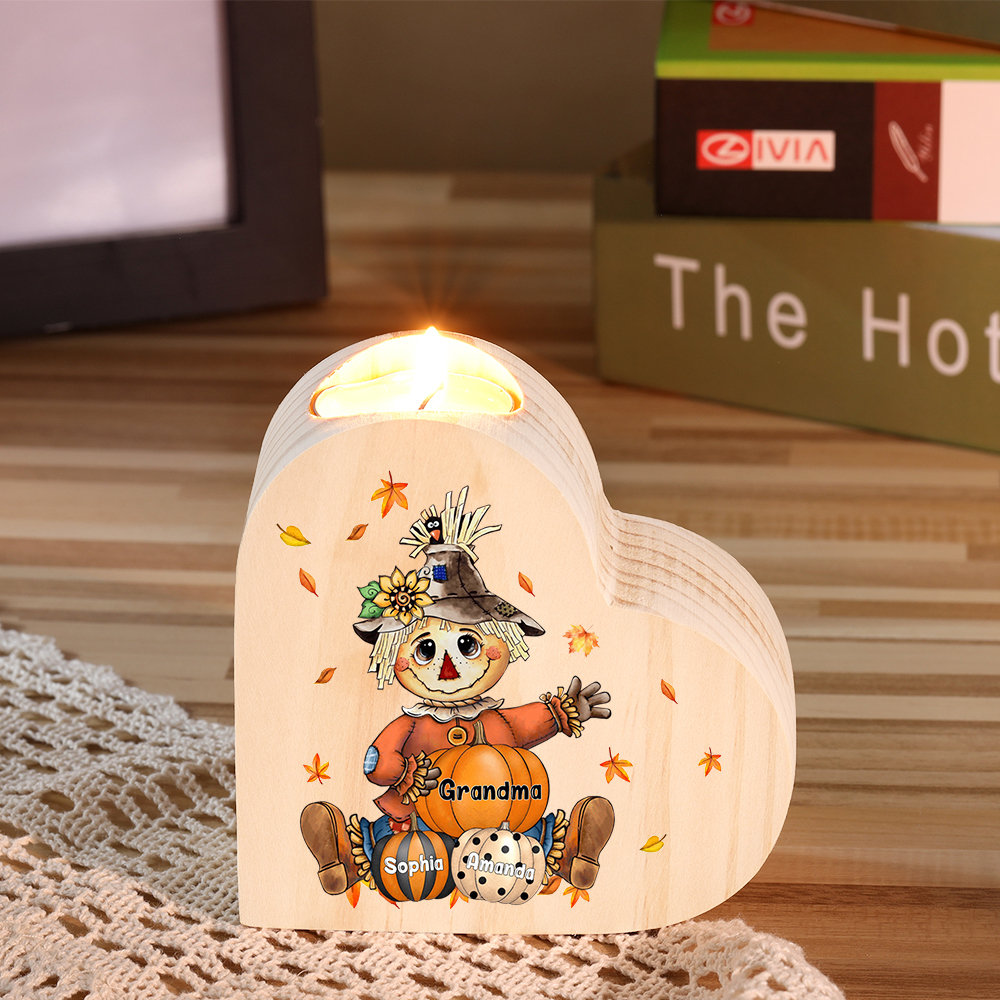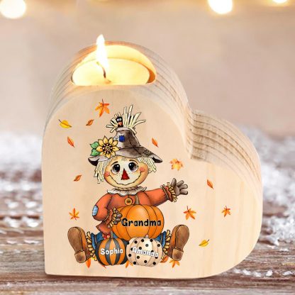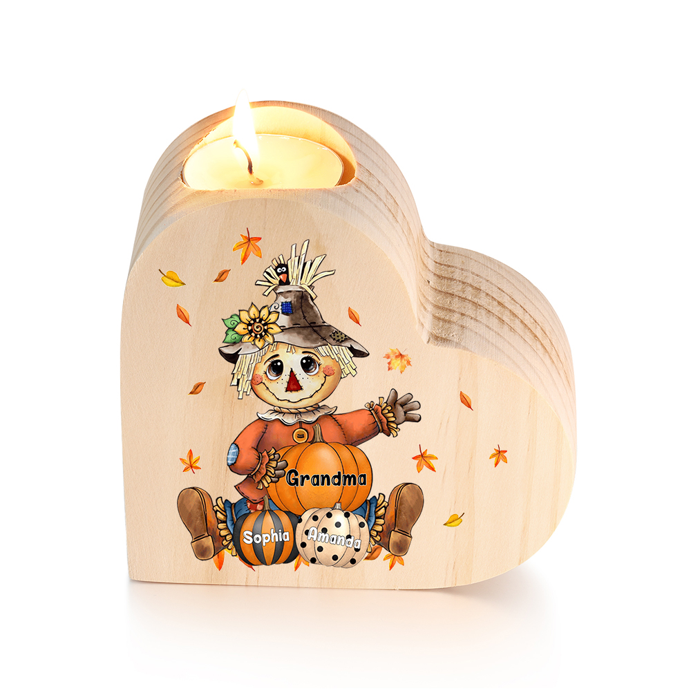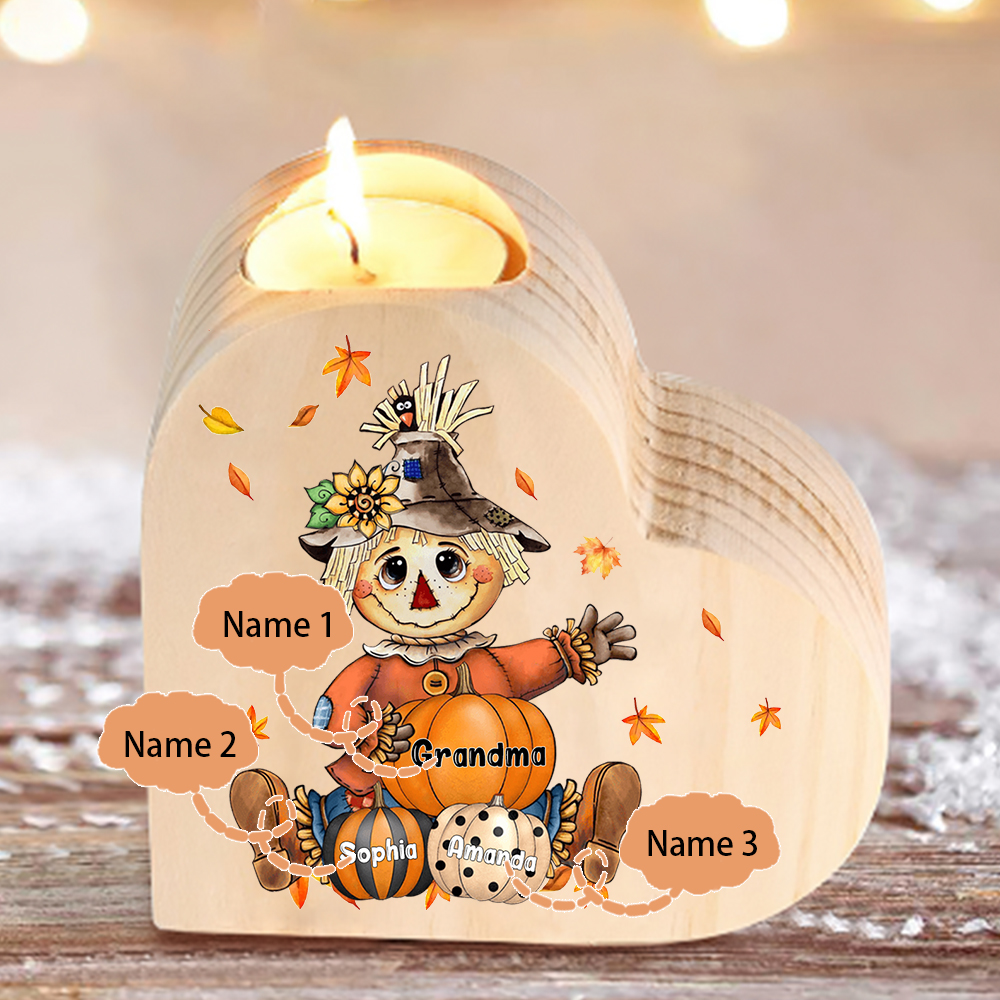 3 Names-Custom Halloween Wooden Candlestick-Personalized Names Pumpkin Heart Candle Holder Halloween Gift for Family