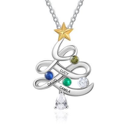 3 Names-Custom Women Pearl Link Necklace With Birthstones, Personalized 1-5 Names And Birthstones Necklace for Her