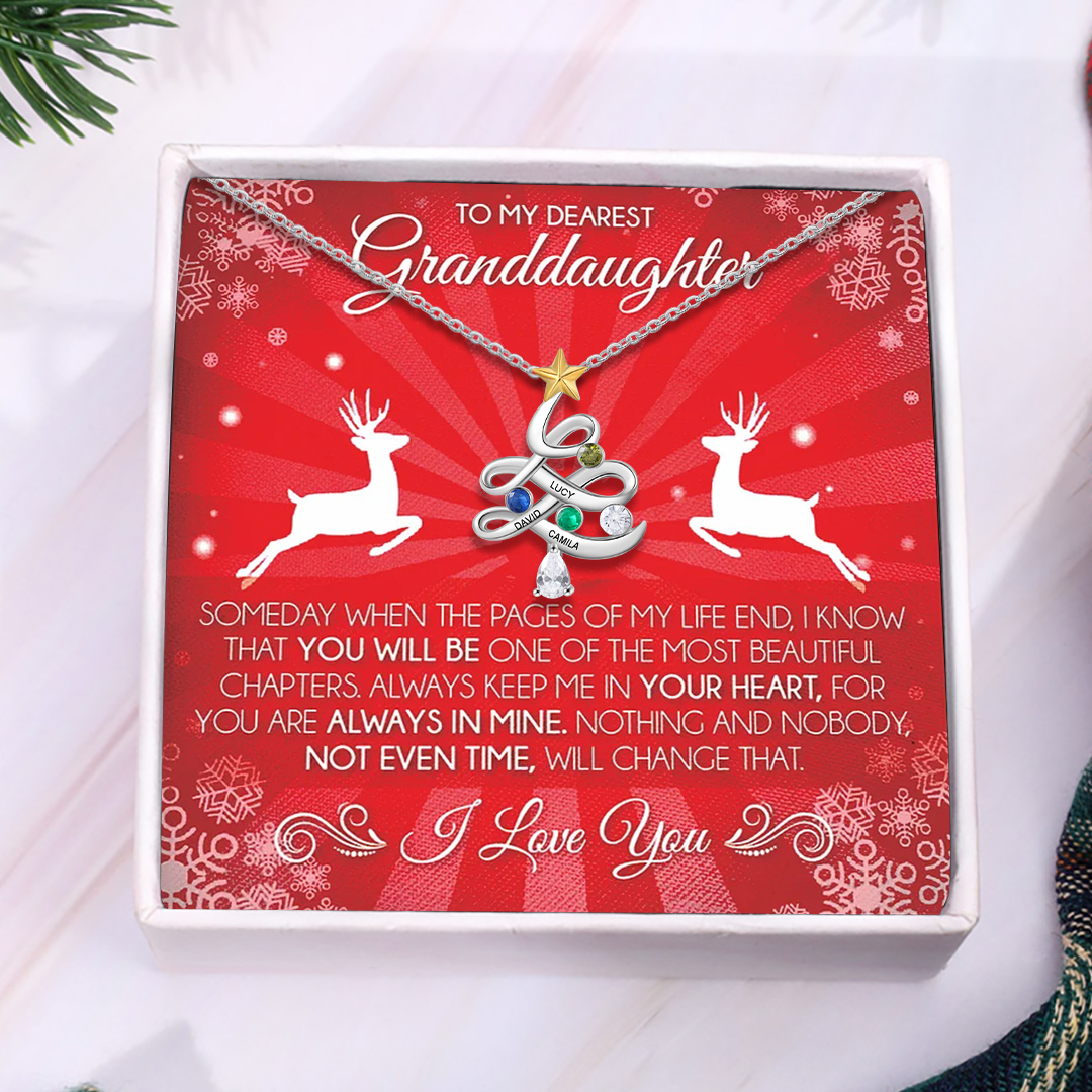 3 Names-Custom Women Pearl Link Necklace With Birthstones, Personalized 1-5 Names And Birthstones Necklace for Her