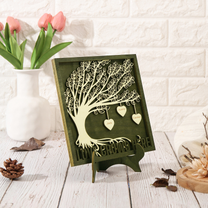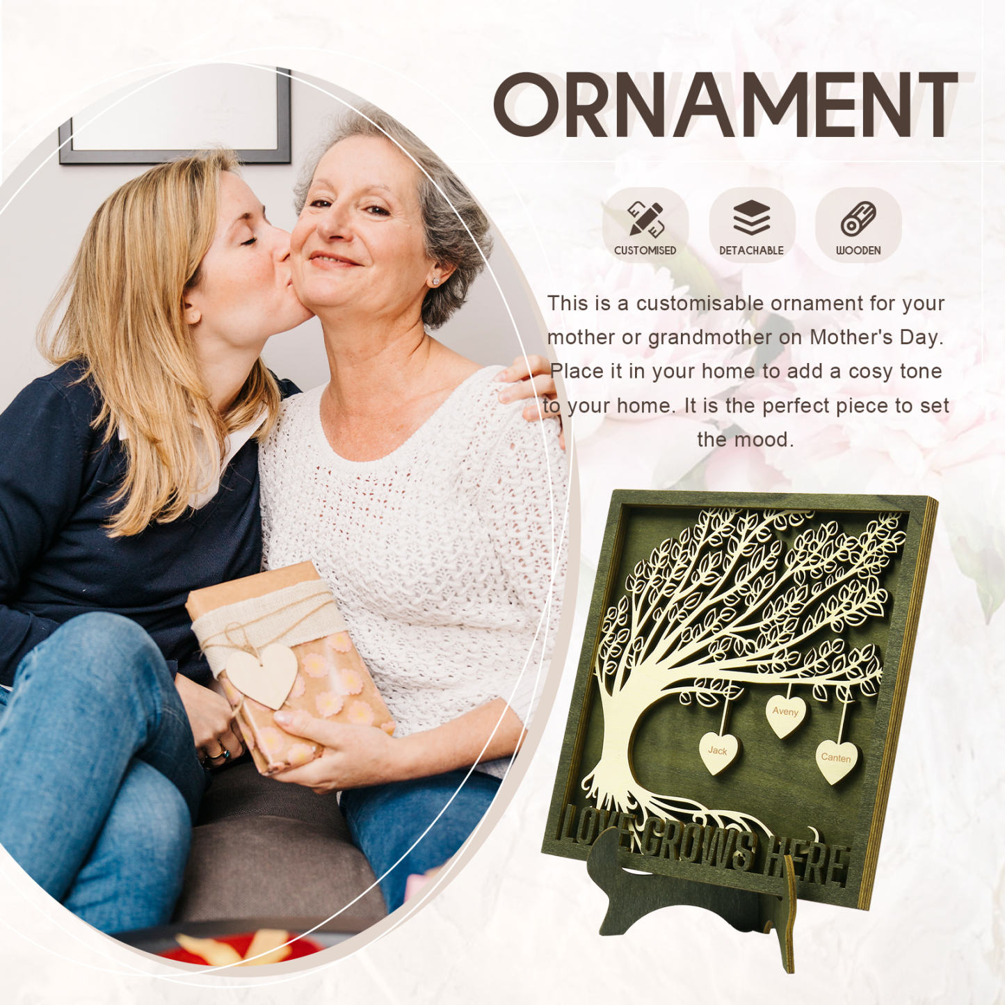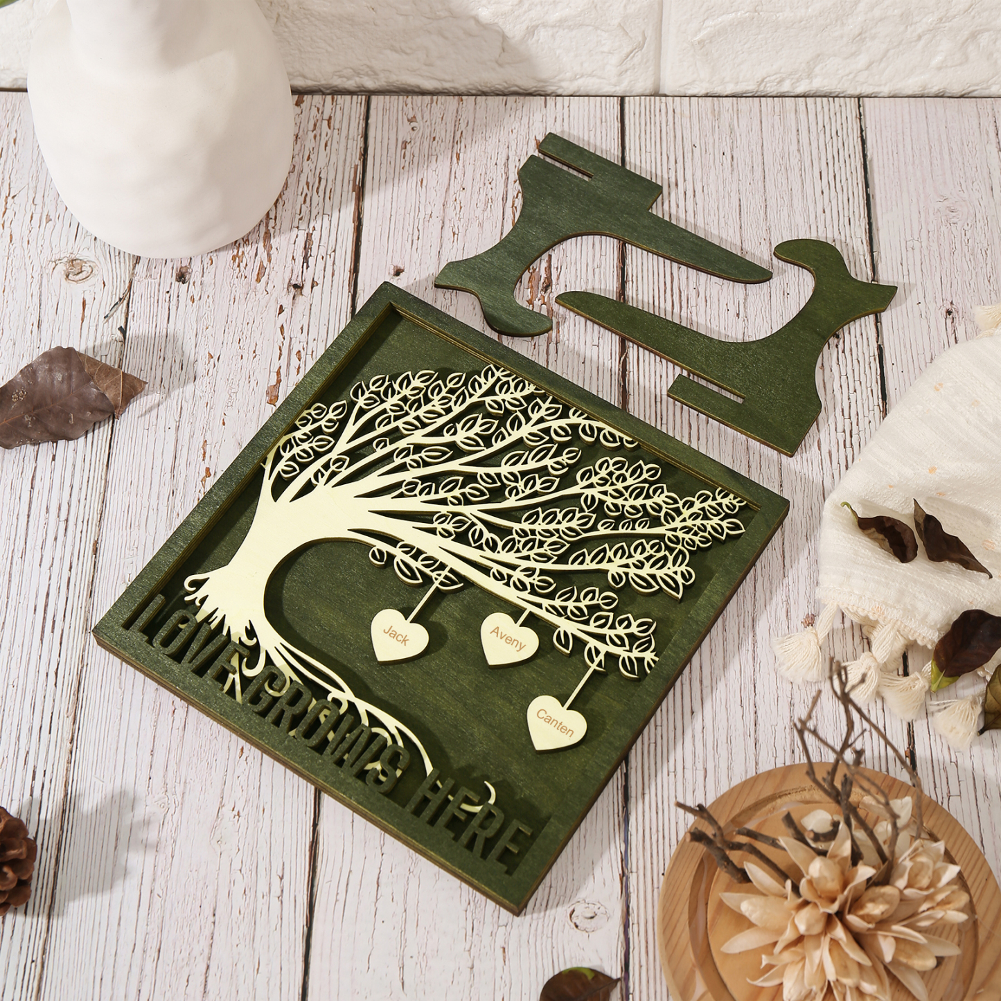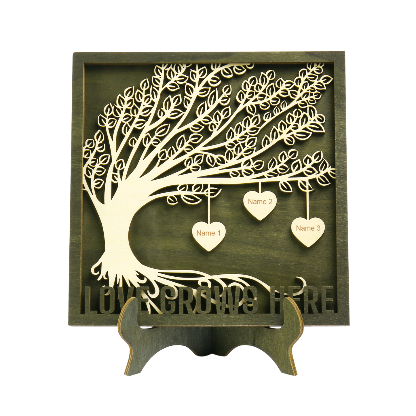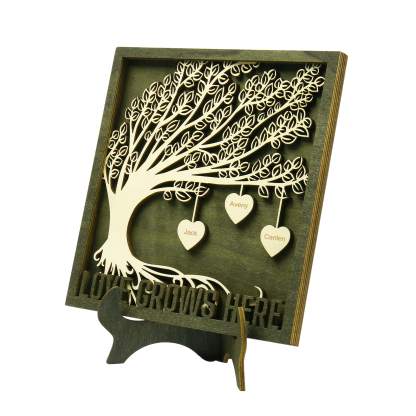 3 Names - Customized Tree Type Wooden Ornaments Decorations Text Love Grows Here