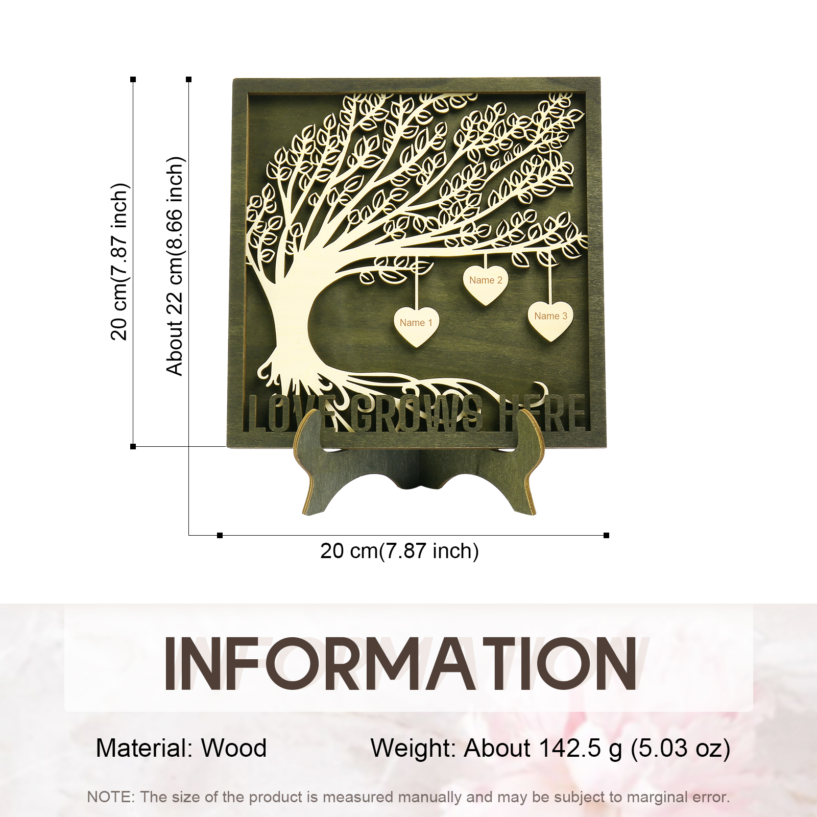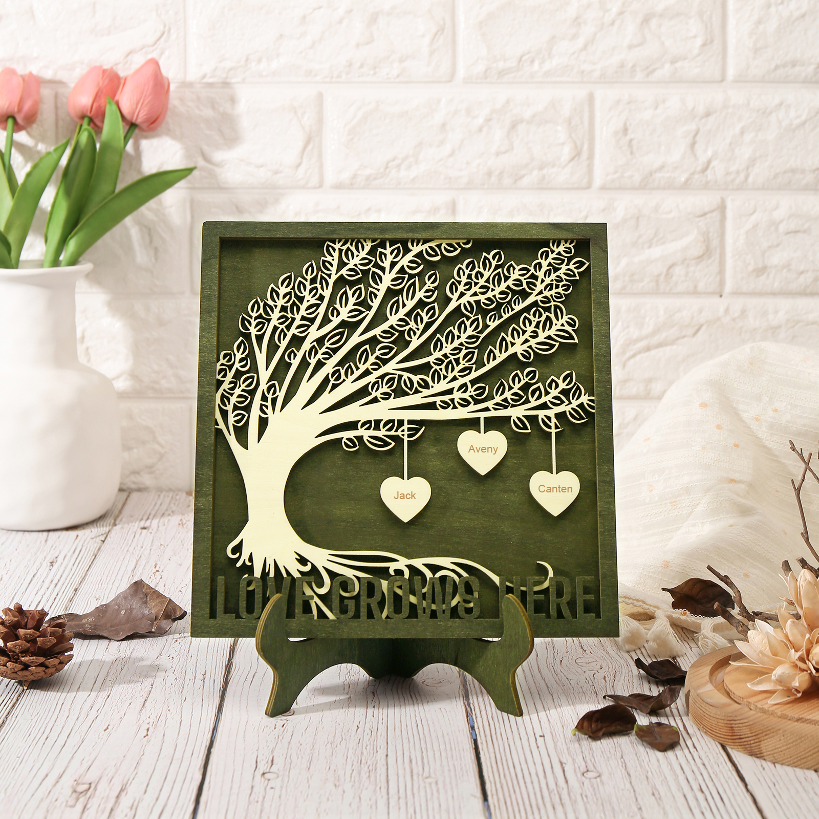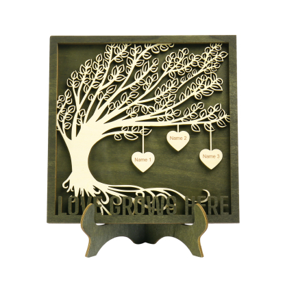 3 Names - Customized Framily Tree Type Wooden Ornaments Decorations Text Love Grows Here