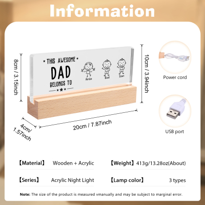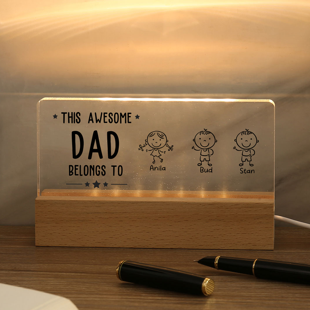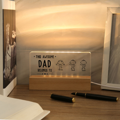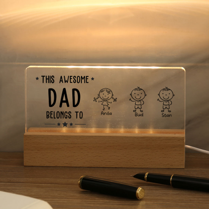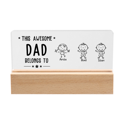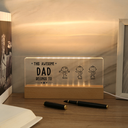 3 Names & Doll Gender - Personalized Lamp -This Awesome Dad Belongs To - Father's Day Gift for Dad