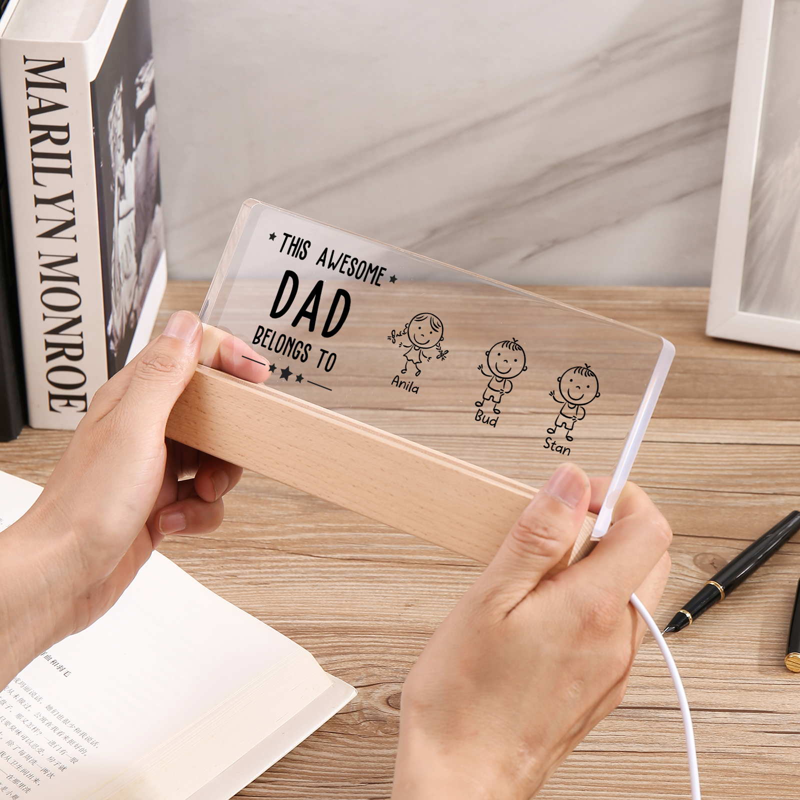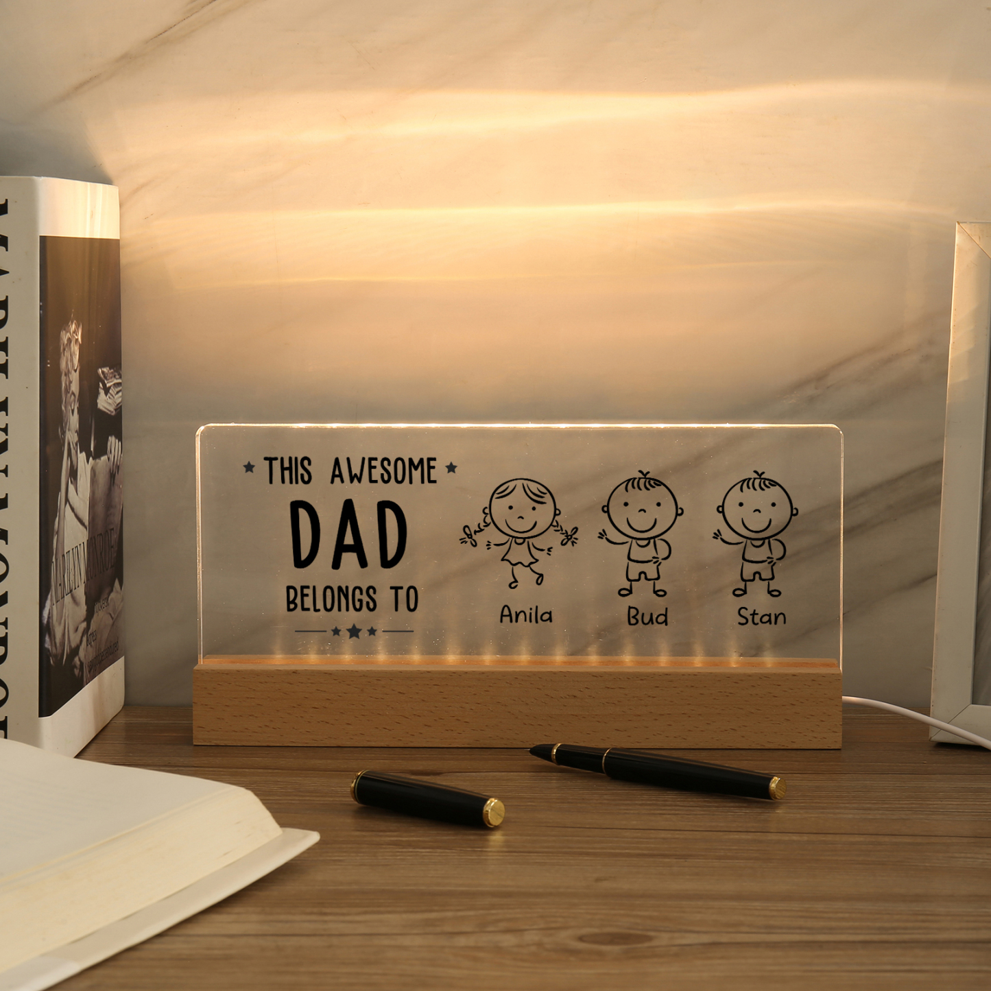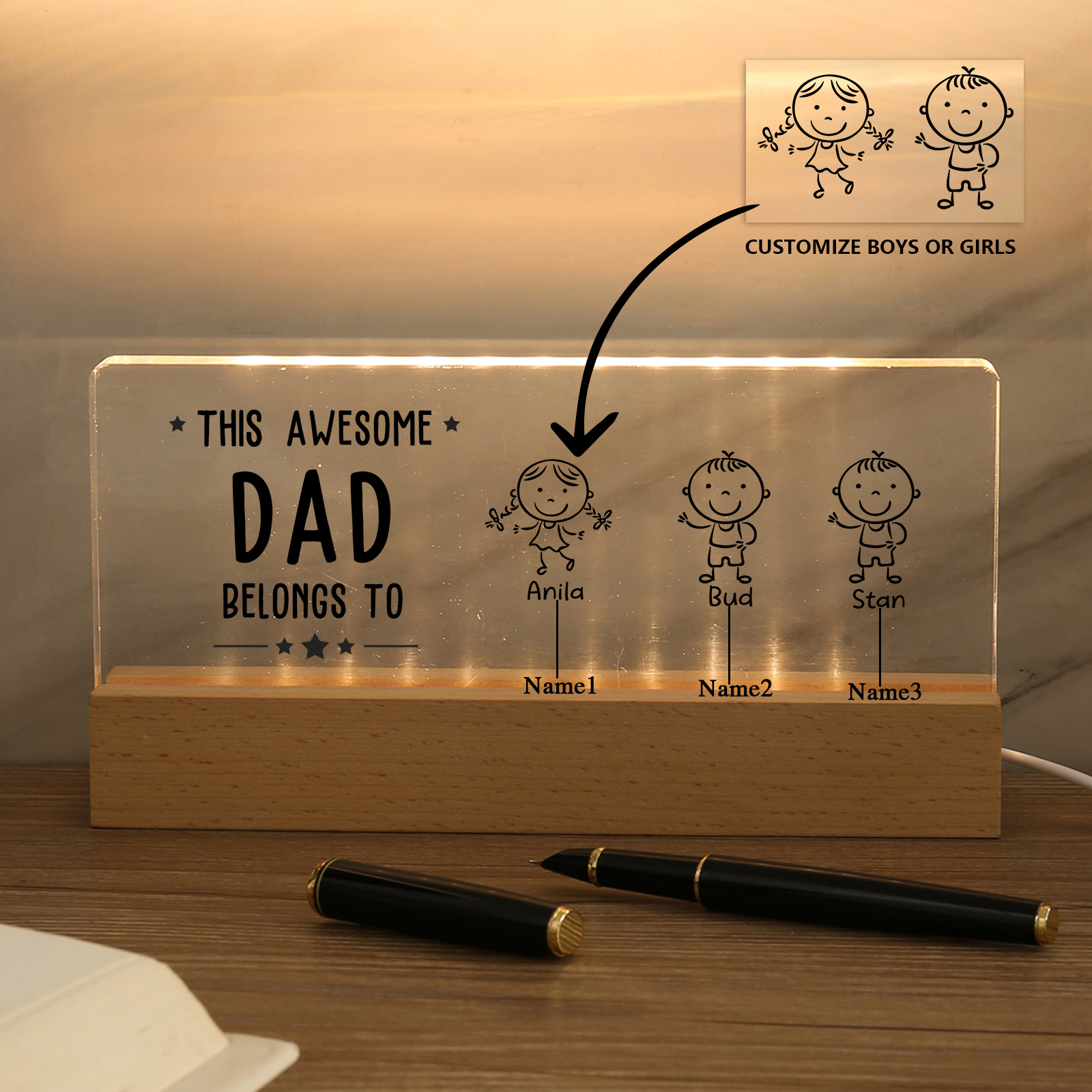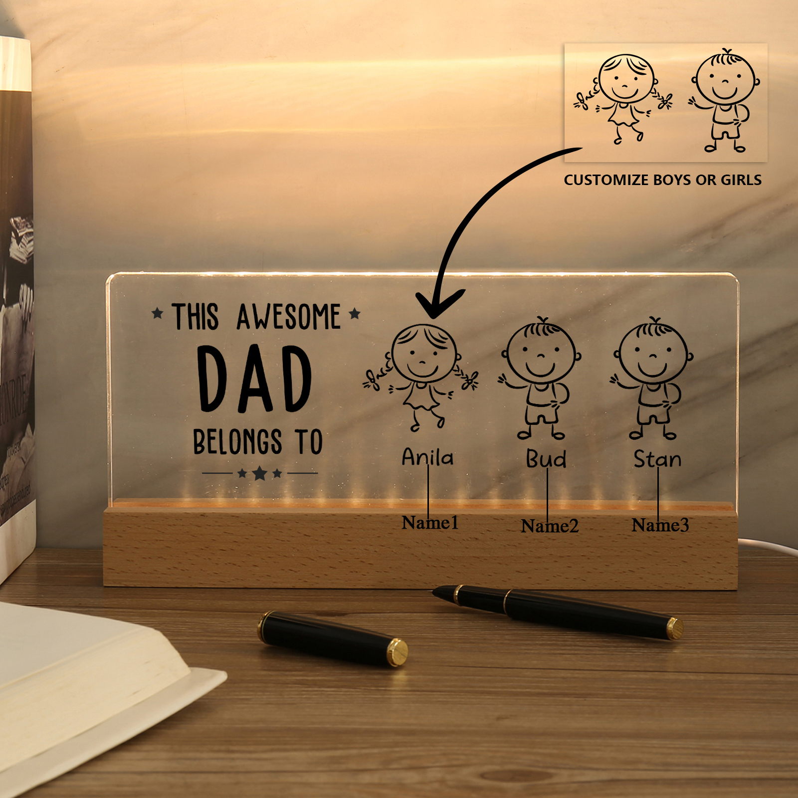 💡Customize this doll desk lamp with Dad's name! 🌟 Light up Dad's world with a unique gift. ❤️ Featuring Dad's name and an impressive doll design, this stylish desk lamp will add a modern touch to his space. Brighten his day with personalized warmth and style. Order now to brighten his day! 🥰