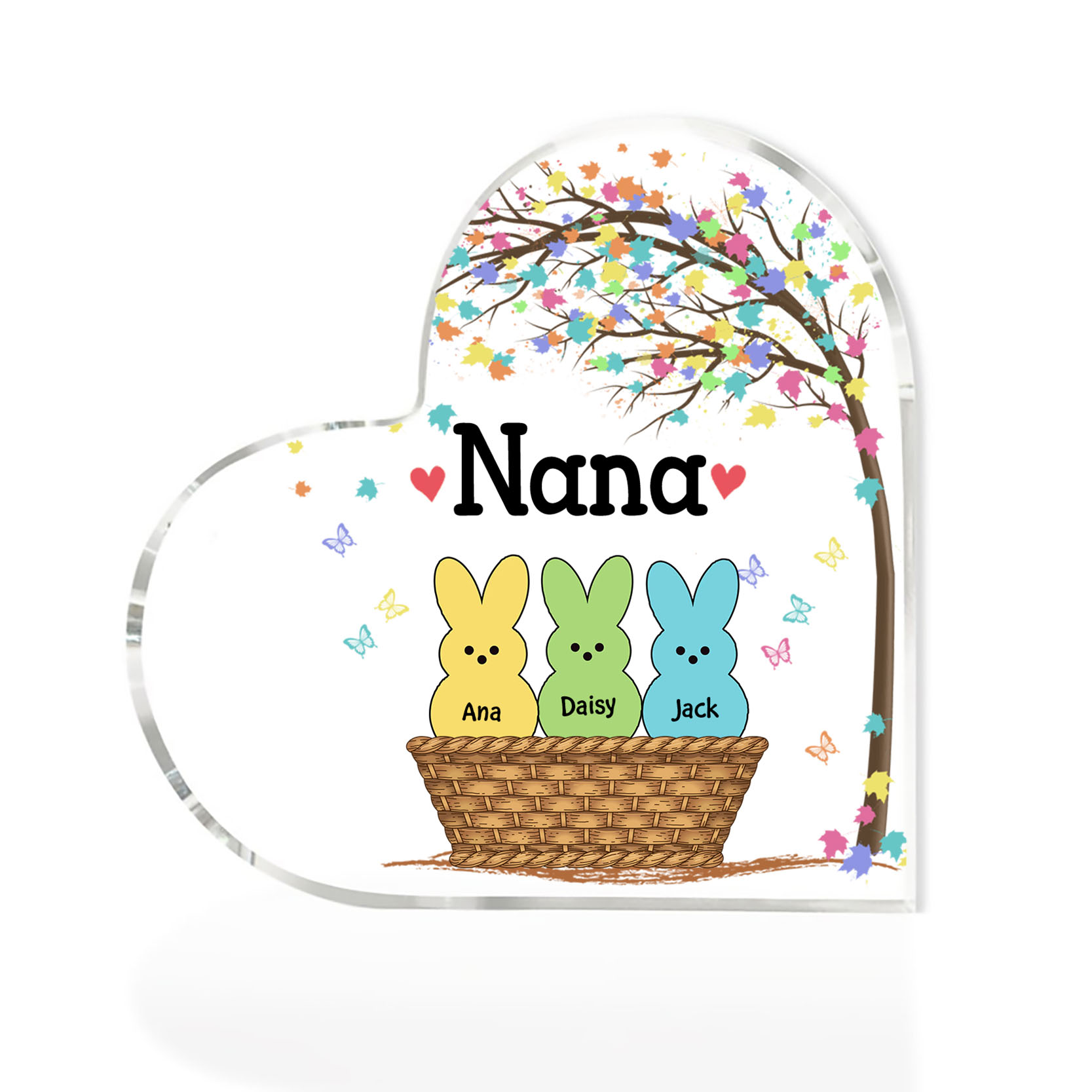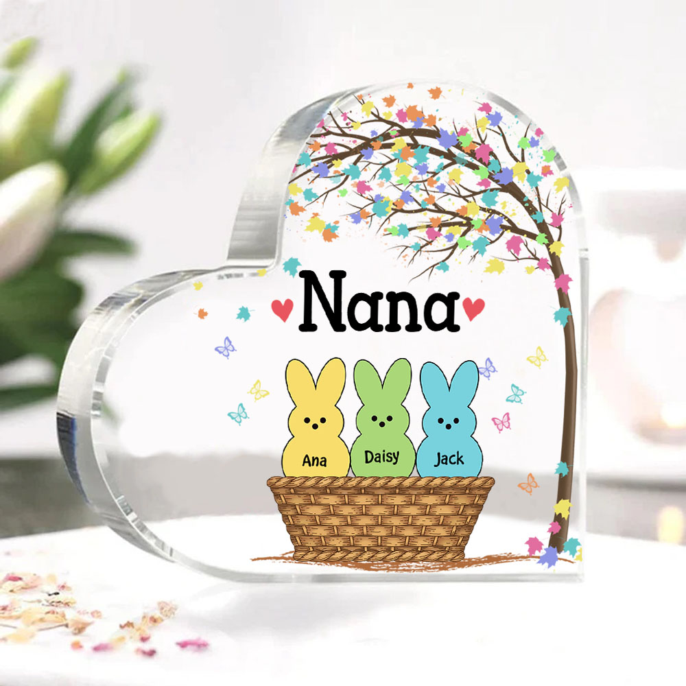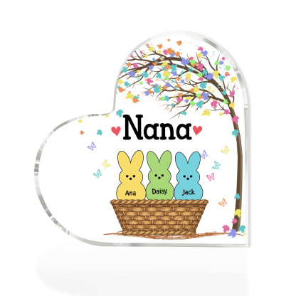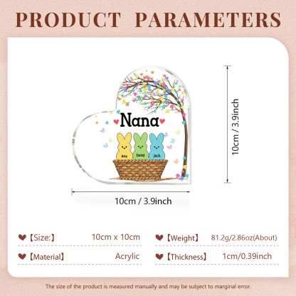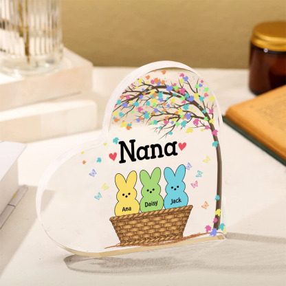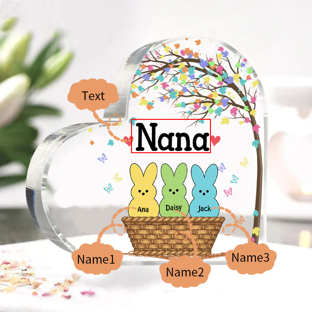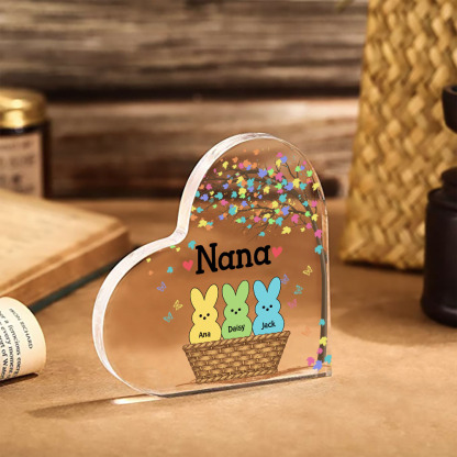 3 Names-Personalized Acrylic Heart Keepsake Custom Names Bunny Acrylic plaque Ornaments Gifts for Mum/Nan/Nana