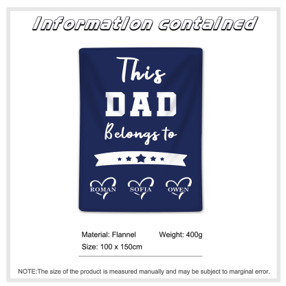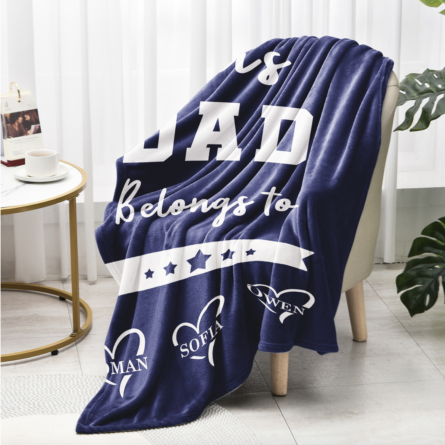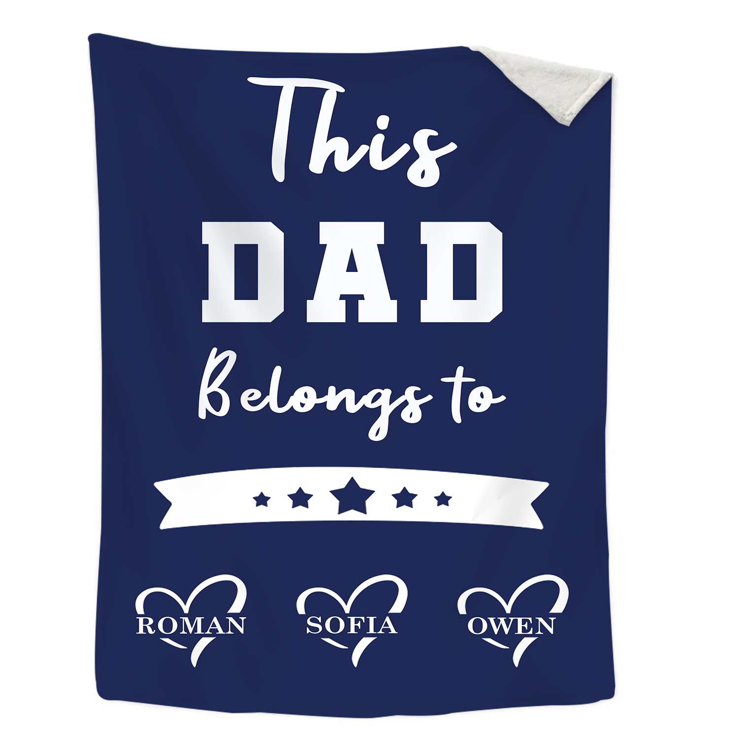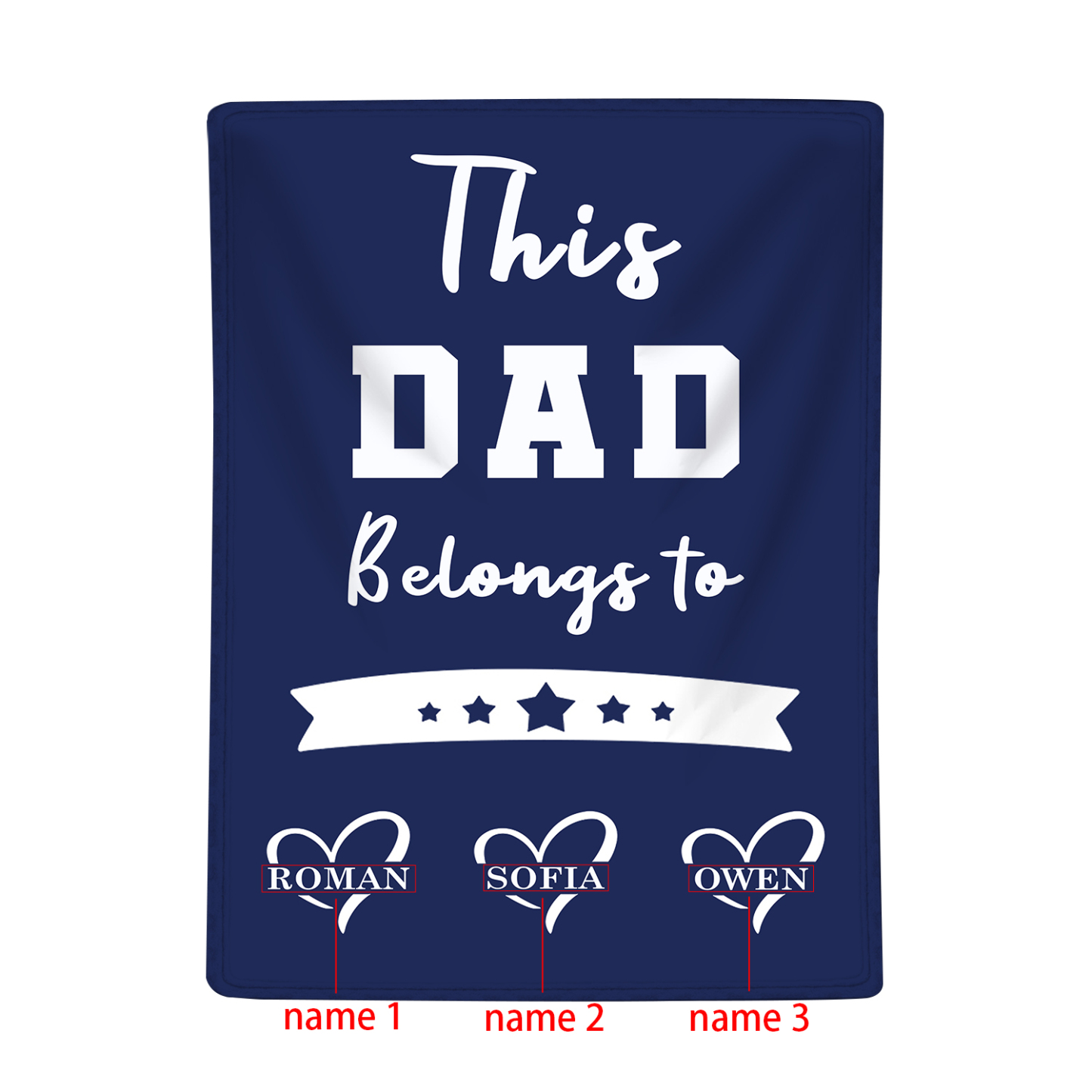 3 Names-Personalized Blanket "This Dad belongs to" Customized Name as a Father's Day Gift for Dad
