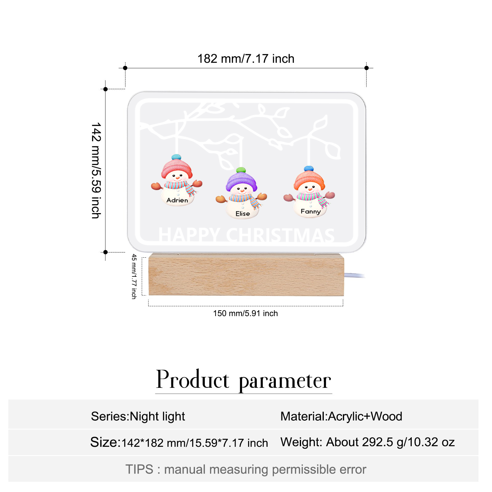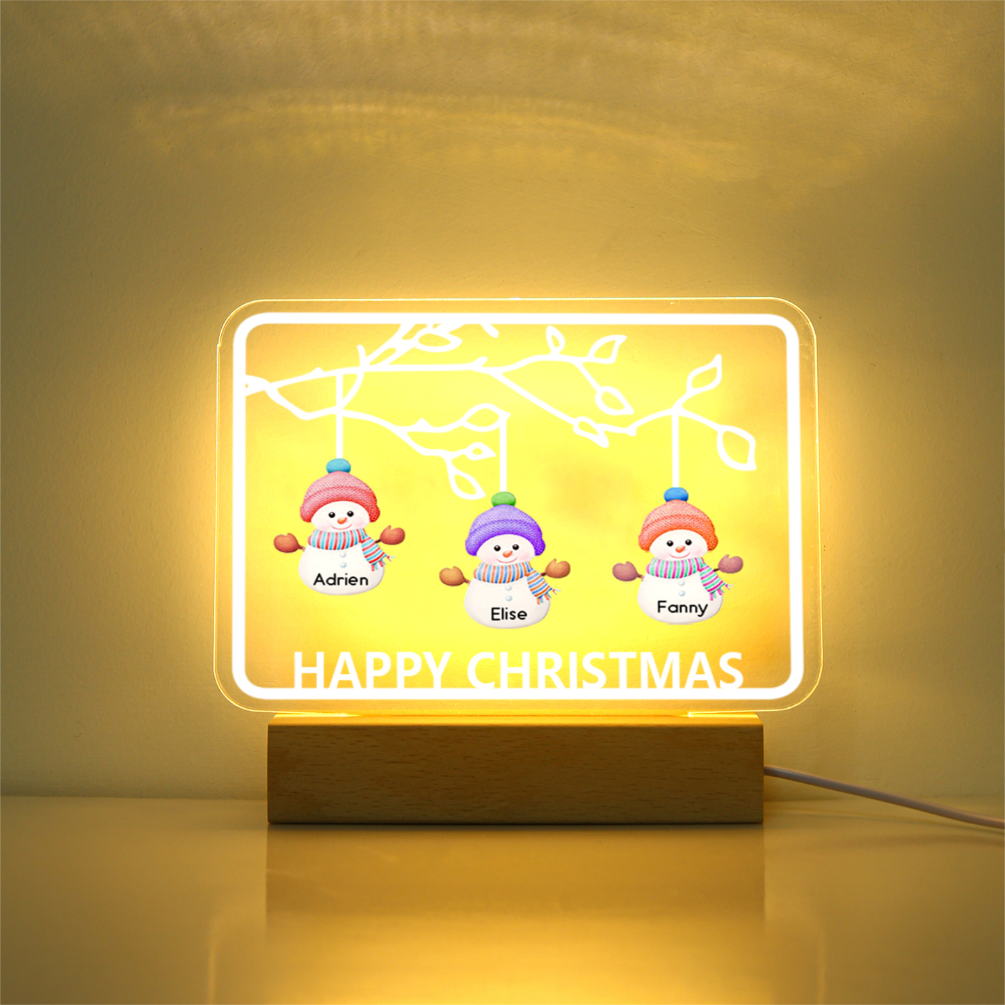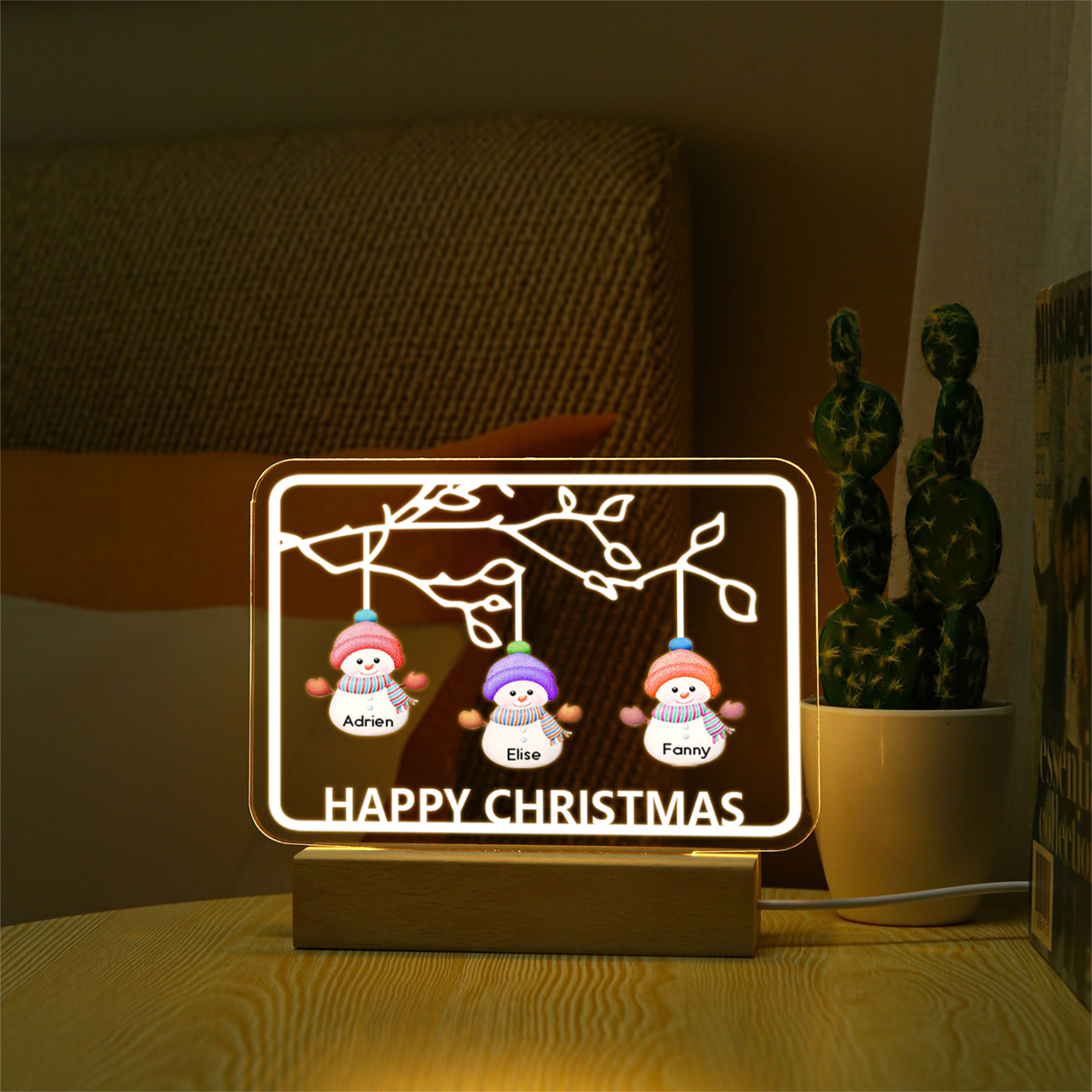 🎄Crafted with a blend of premium acrylic and a sturdy wooden base, this night light emanates warmth and charm. Add a touch of personalization and festive cheer to your home decor with this enchanting Christmas Tree Night Light.