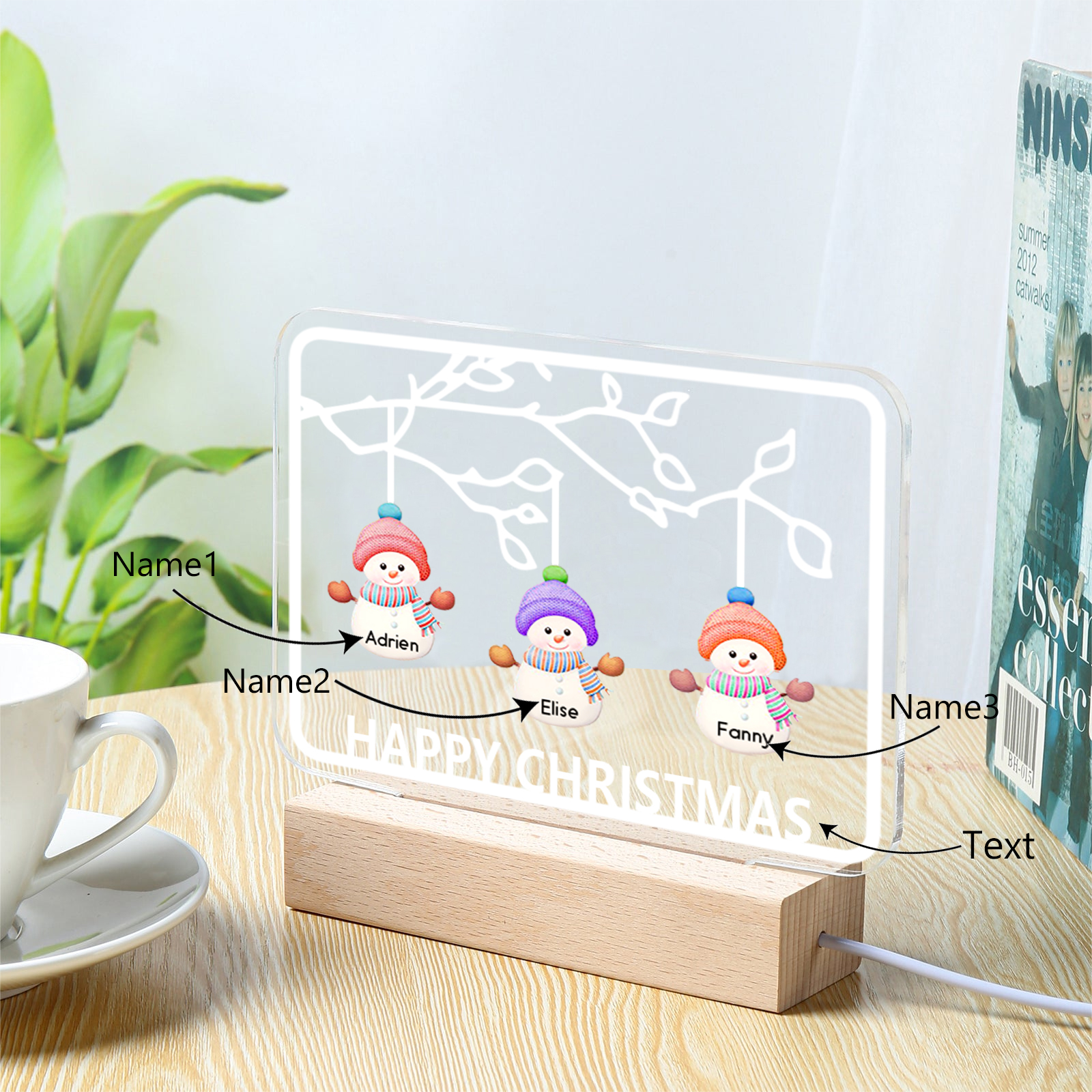 3 Names-Personalized Christmas Family Night Light with Family Member Names, Custom 3 Names Night Light with LED Lighting Bedroom Decoration