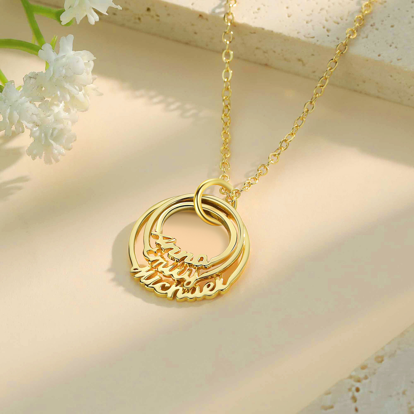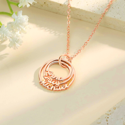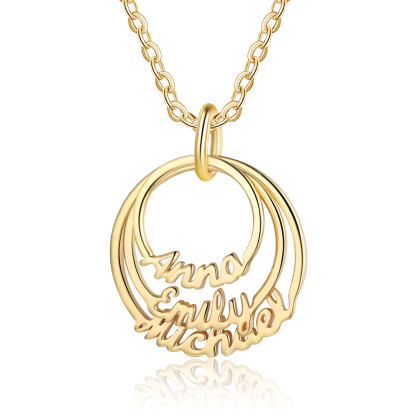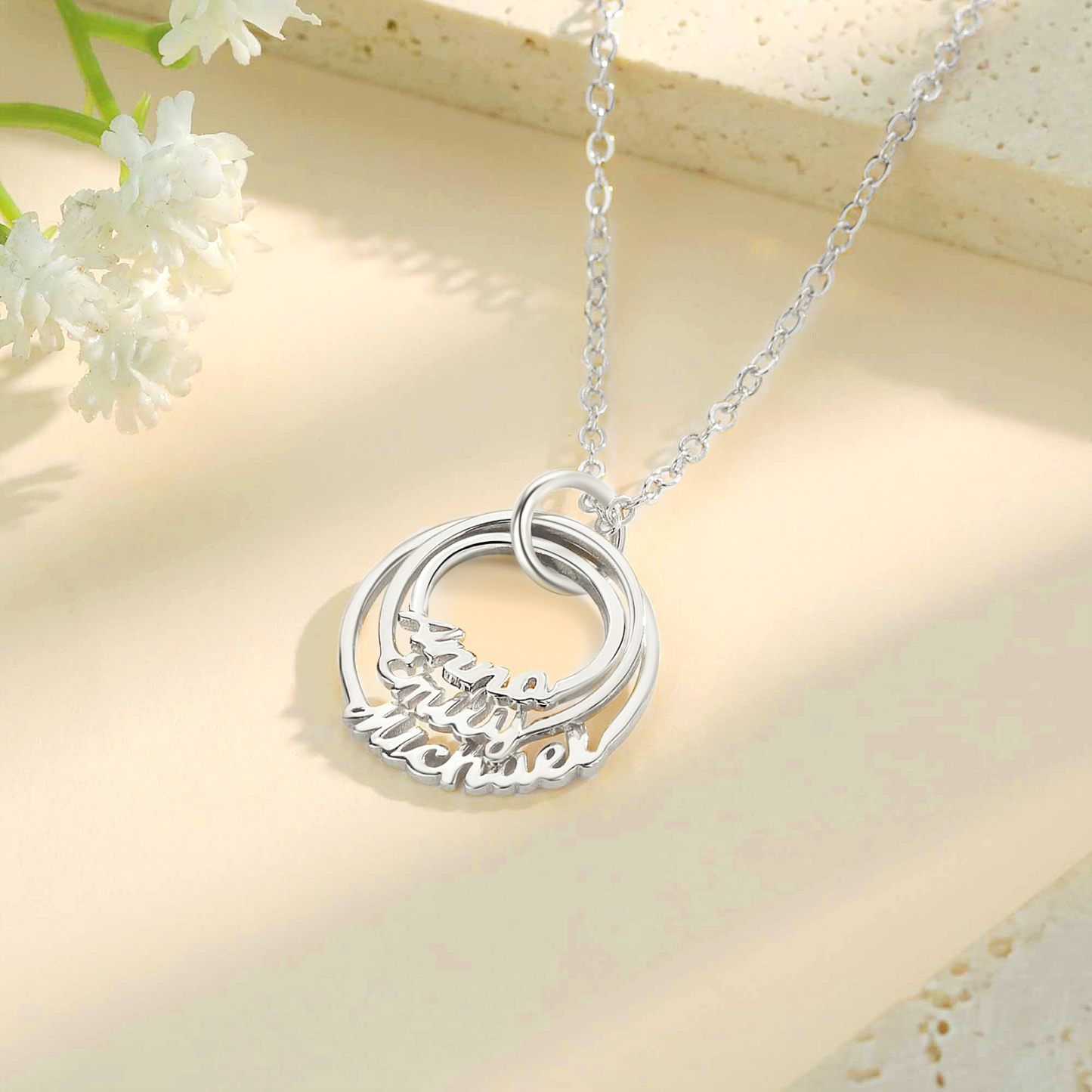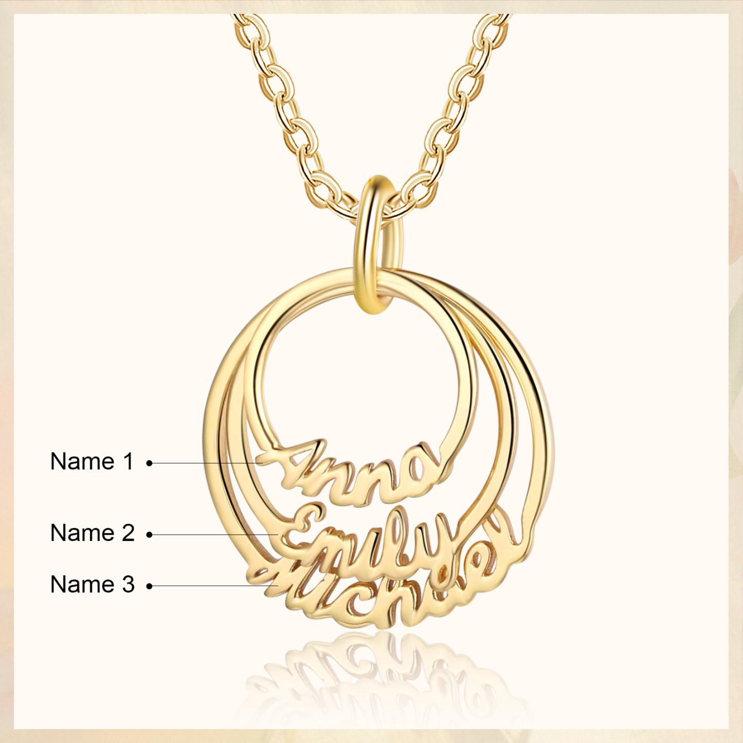 3 Names-Personalized Circle Necklace With 3 Names Pendant Engraved Names Gift For Woman