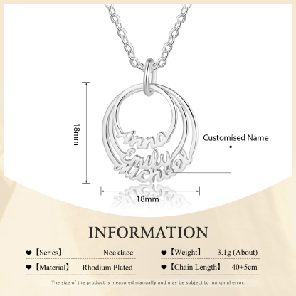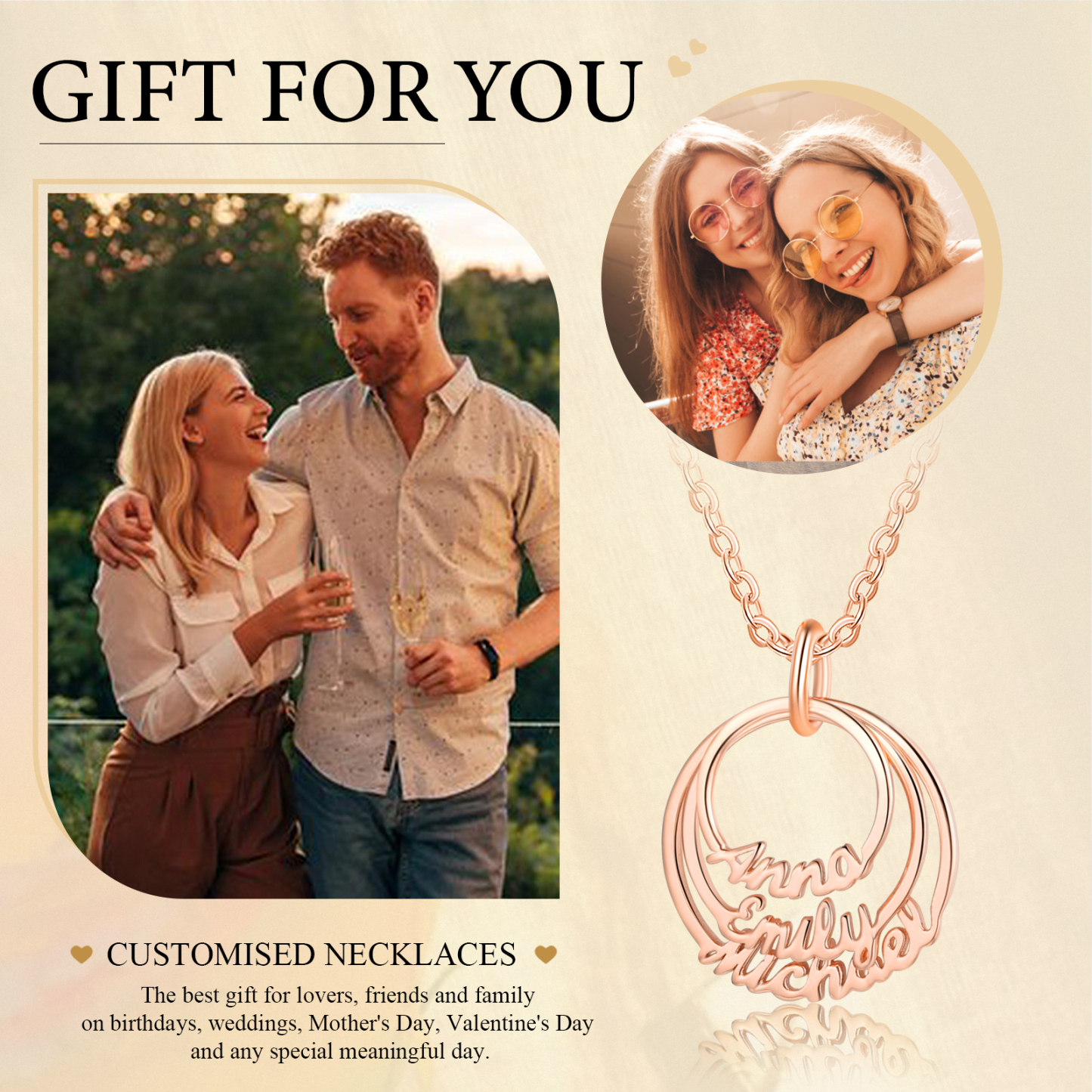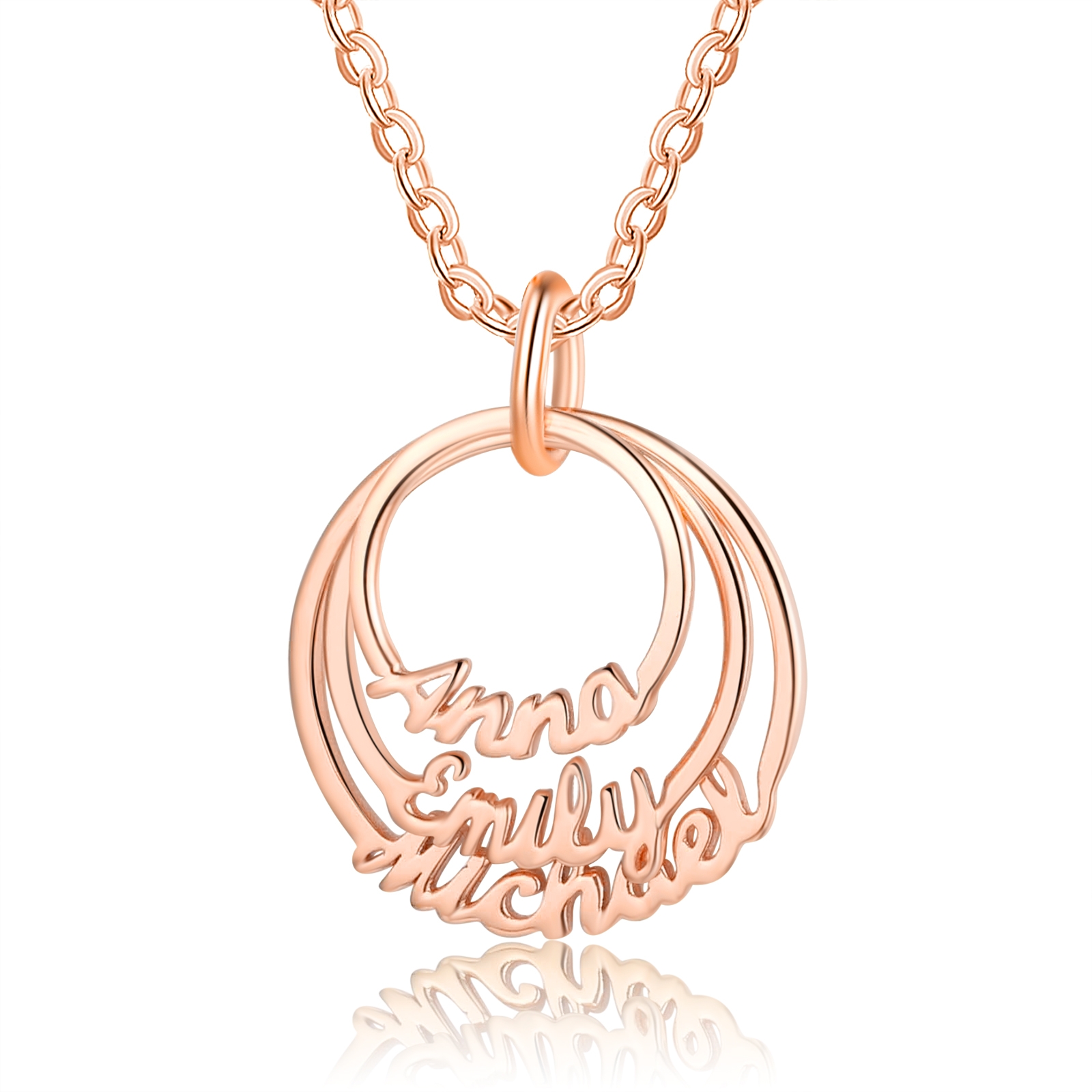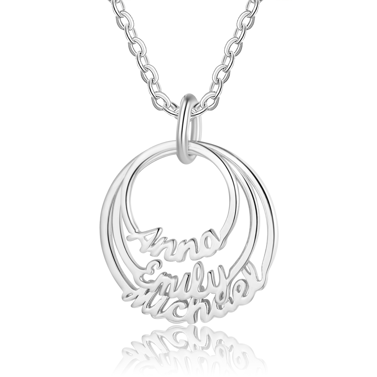 3 Names-Personalized Circle Necklace With 3 Names Pendant Engraved Names Gift For Woman