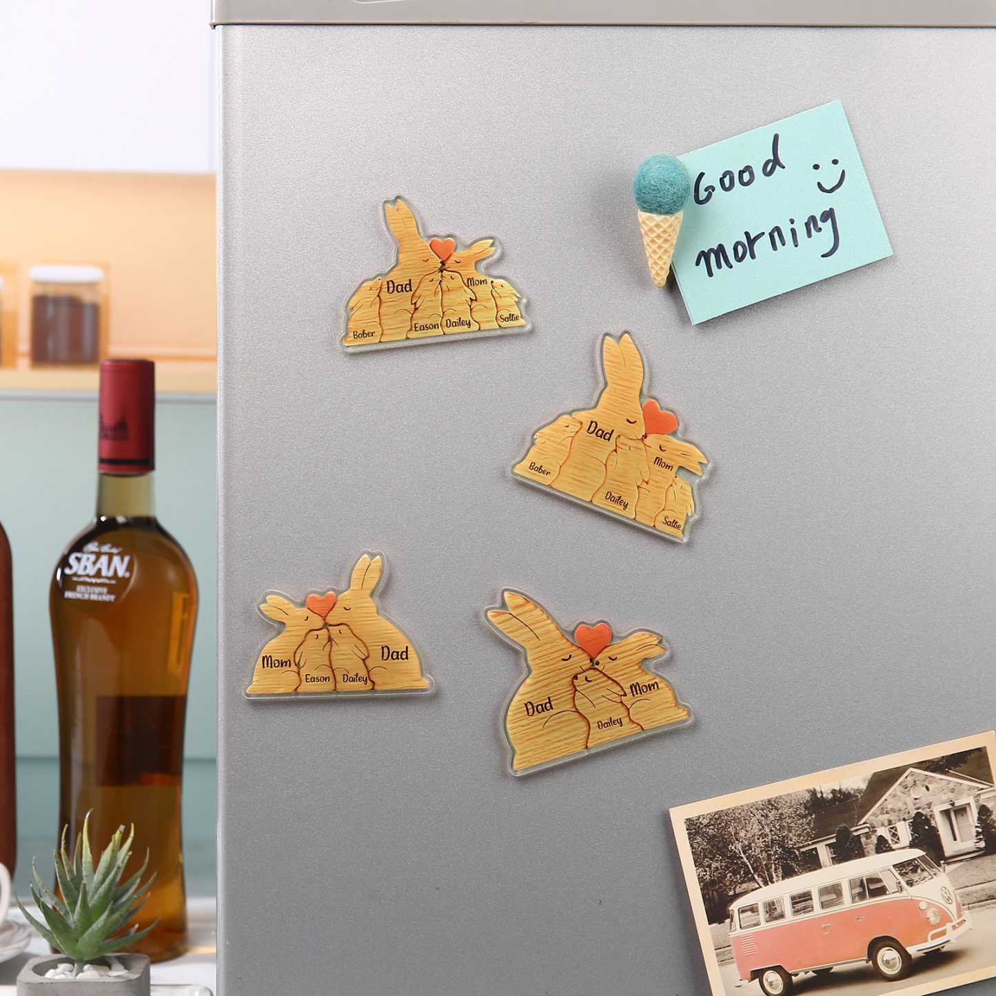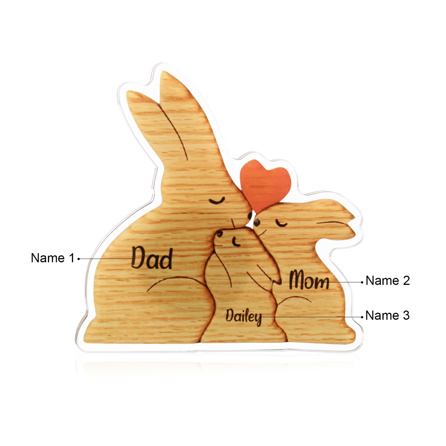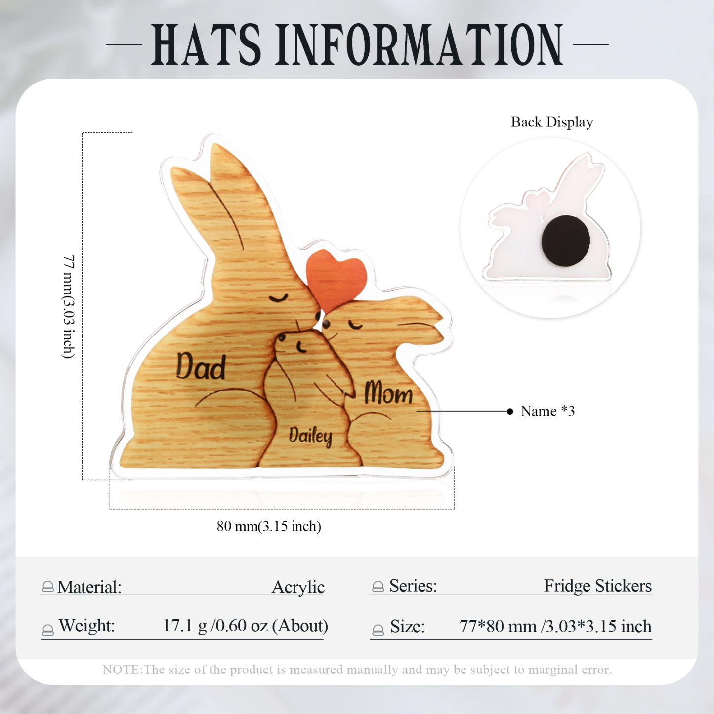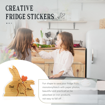 3 Names Personalized Family Acrylic Fridge Stickers-Custom 3 Names Rabbit Hug Refrigerator Magnet Gifts For Family-Special Home Decoration