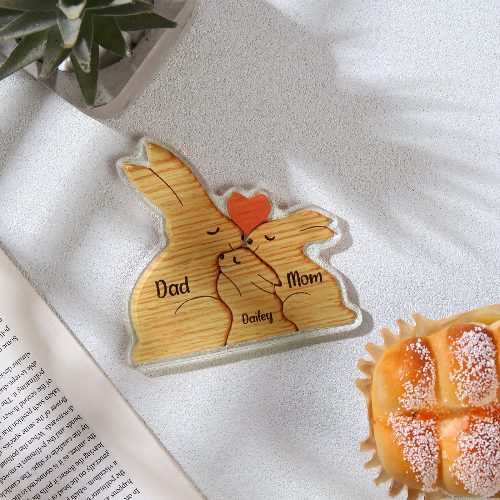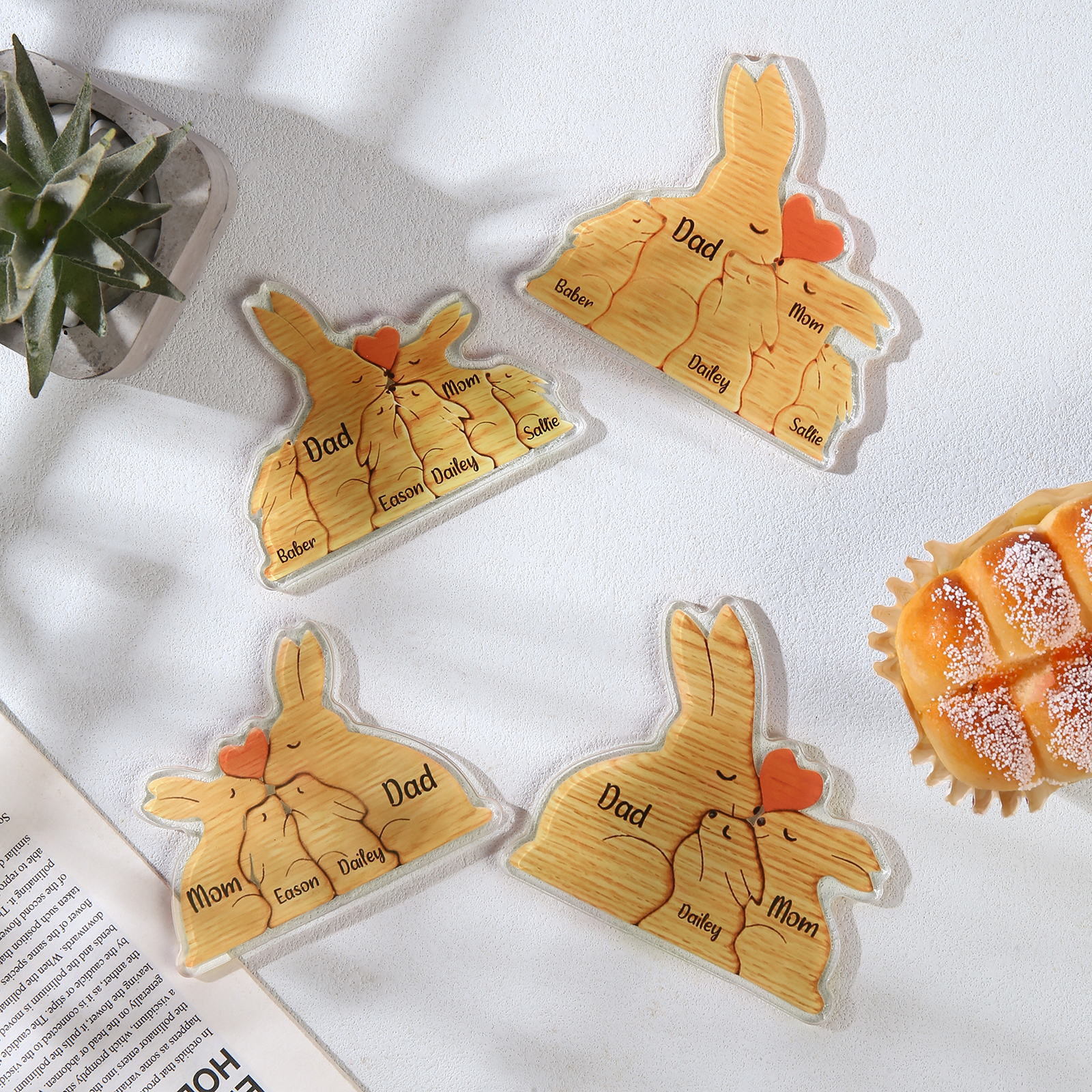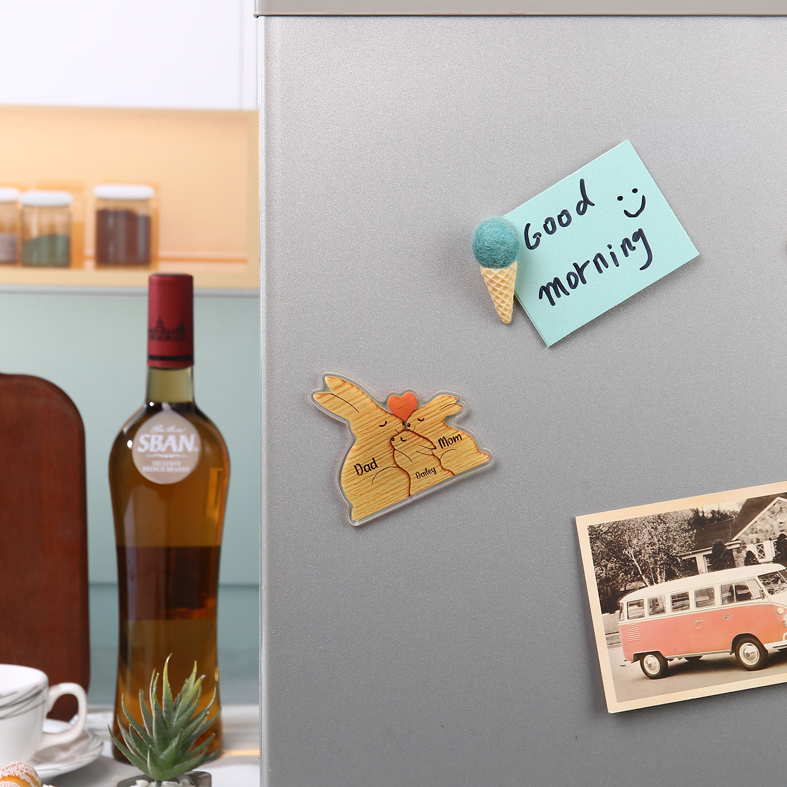 3 Names Personalized Family Acrylic Fridge Stickers-Custom 3 Names Rabbit Hug Refrigerator Magnet Gifts For Family-Special Home Decoration