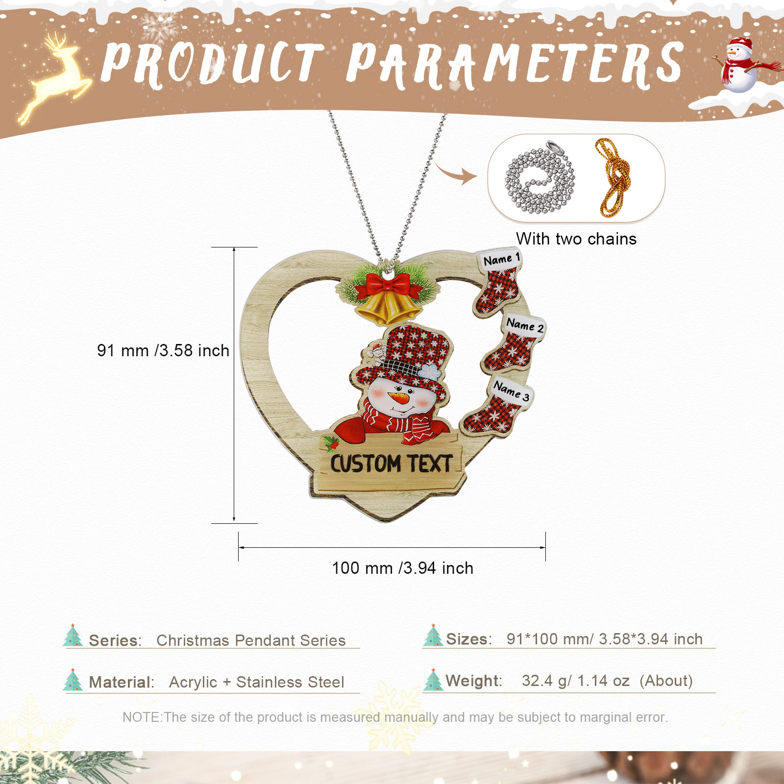 🎁Made of acrylic material, 2-8 names can be customized, The names of each family member are written on the Christmas Shocks, and the personalized text can be written under the snow man. This is a great Christmas gift for the family.
