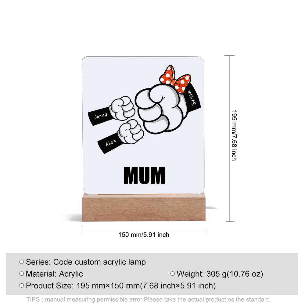 3 Names-Personalized Family Fist Bump Acrylic Night Light, Custom Text Lamp Gift For Family