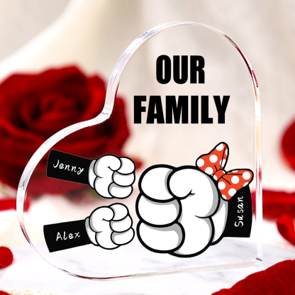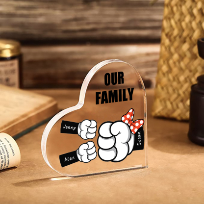 3 Names-Personalized Family Fist Bump Acrylic Ornament-Custom Text Acrylic Family Heart Keepsake Desktop Ornament For Family