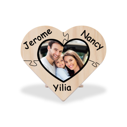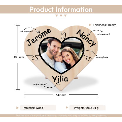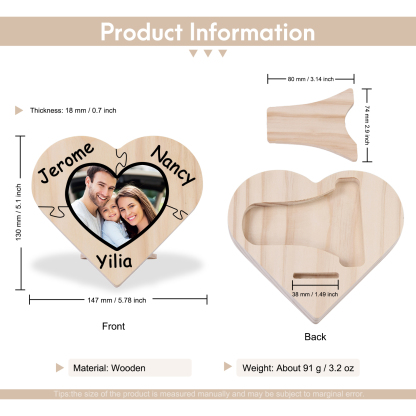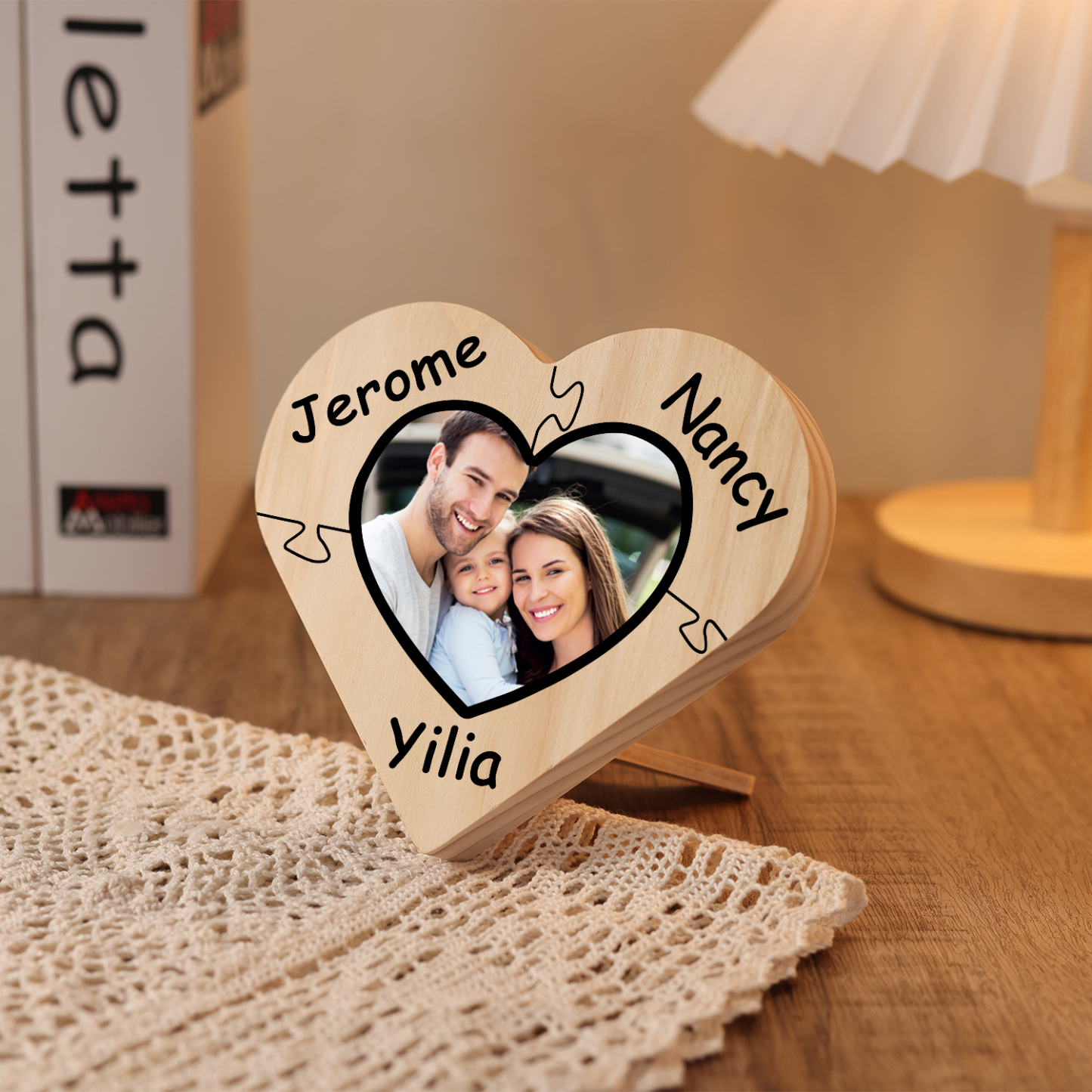 3 Names-Personalized Family Heart Wooden Ornament Gift-Customized Gift Ornament Desktop Decoration Picture Frame For Family