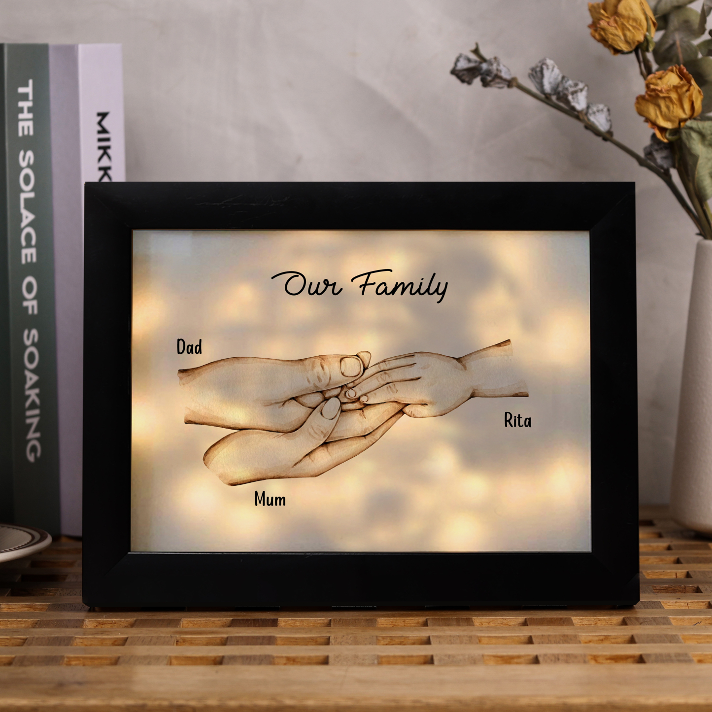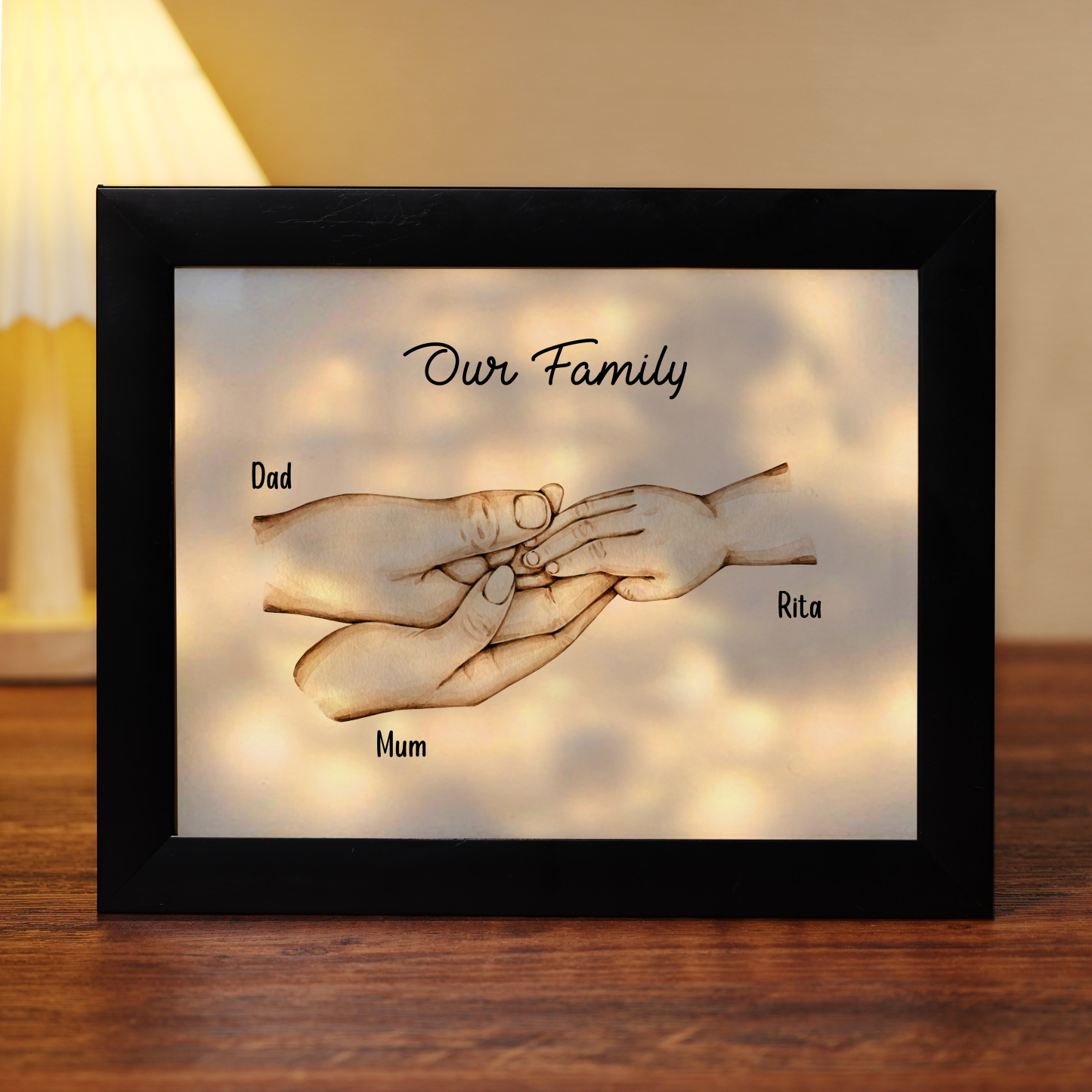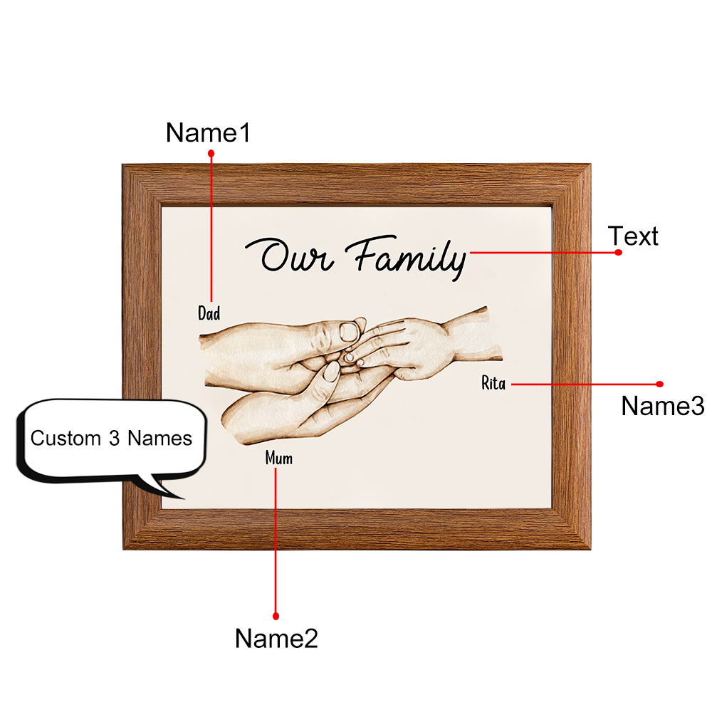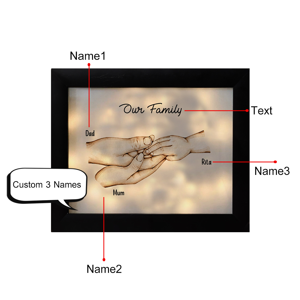 3 Names-Personalized Family Hold Hands Frame Custom 3 Names And Text LED Night Light