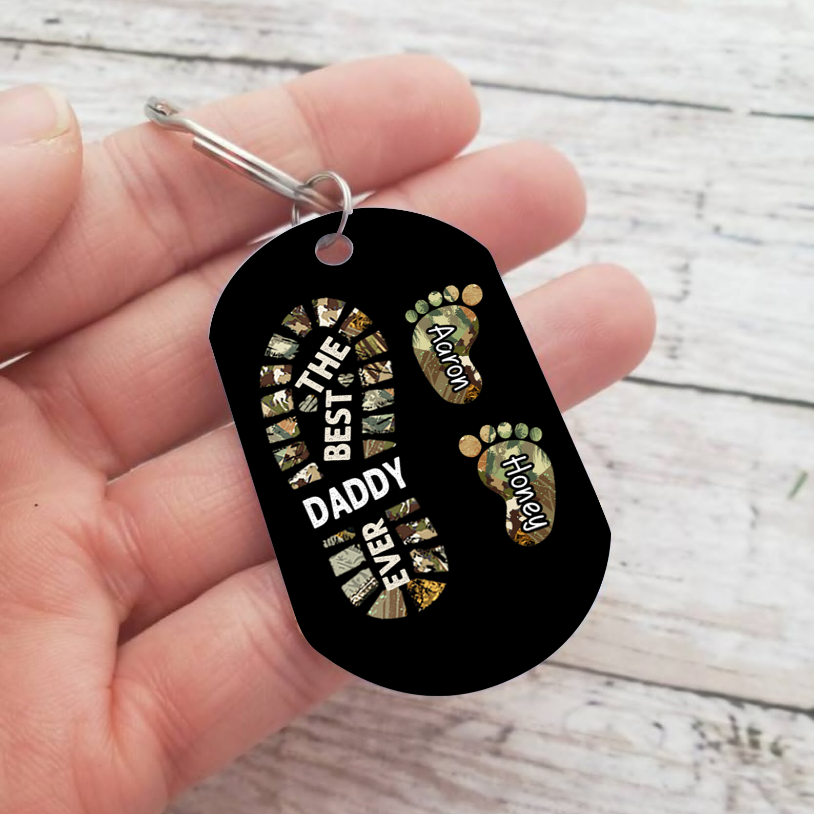 Our Stainless Steel is protected with a tarnish resistance to help it last for years without tarnishing. High-polished finish, hypoallergenic, won't rust, durable, and comfortable to wear. You can customize 2-6 names, and customize a keychain exclusively for grandpa and father