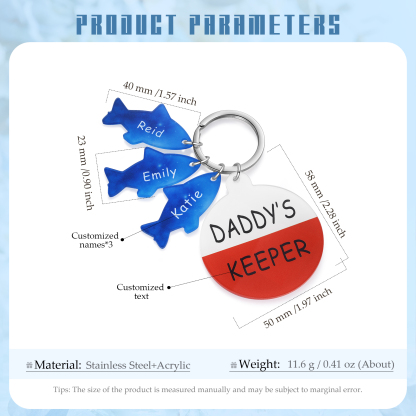 3 Names - Personalized Fish Keychain with Custom Text and Name Father's Day Gift for Dad