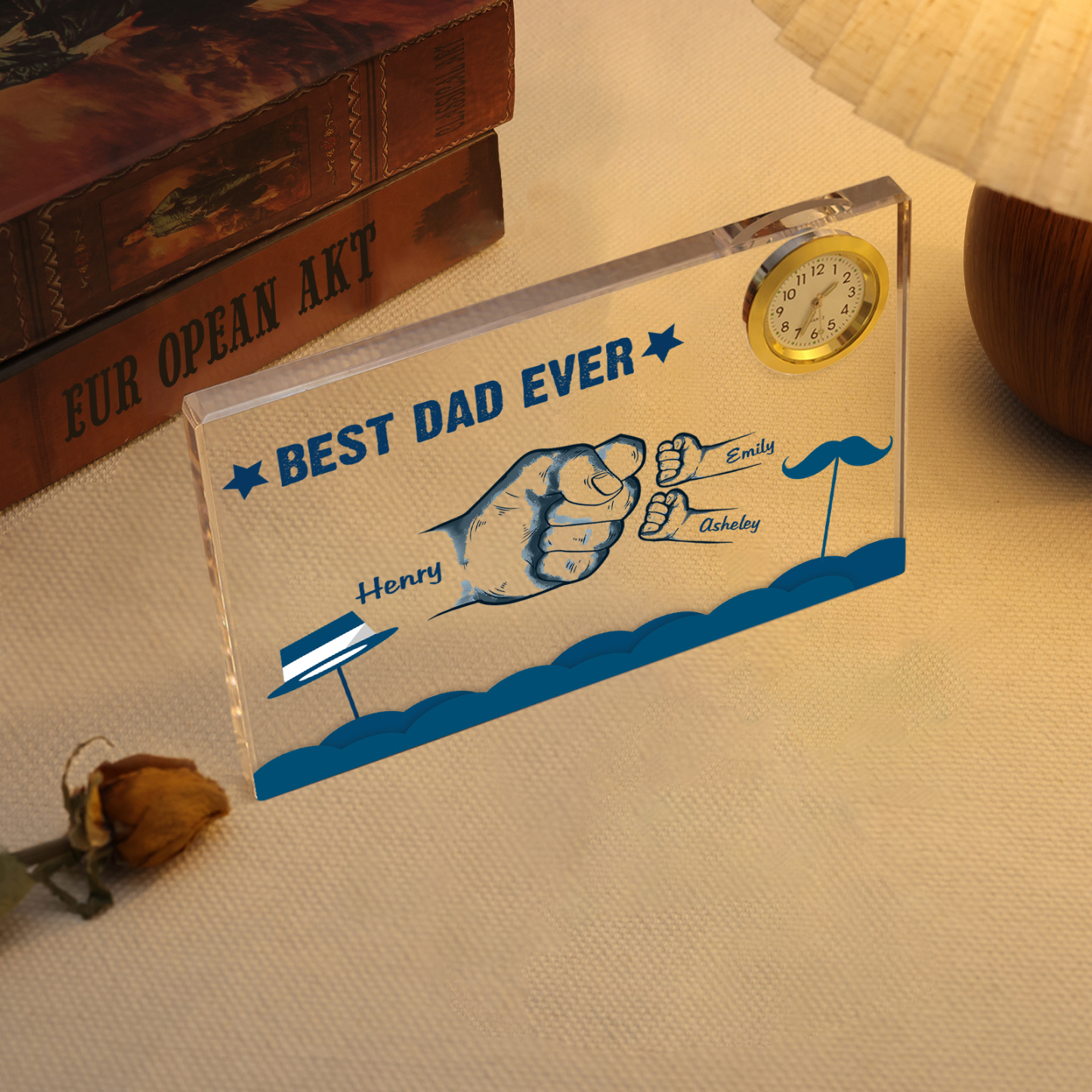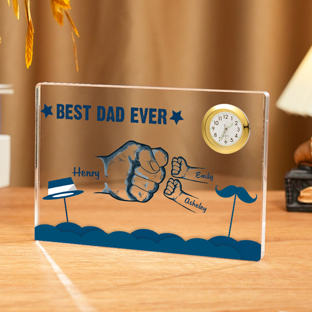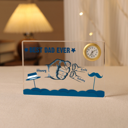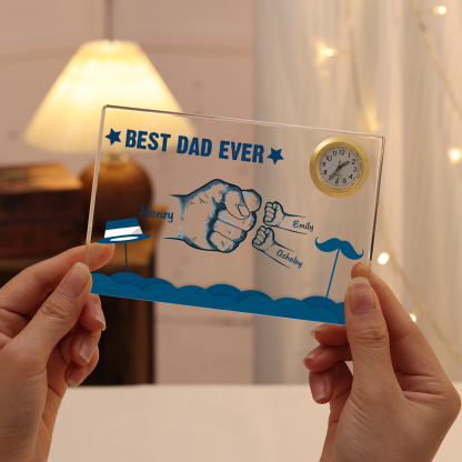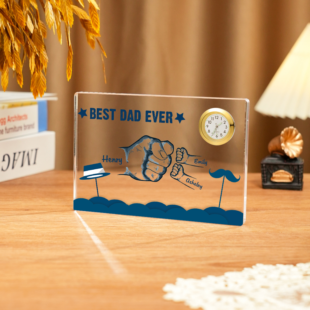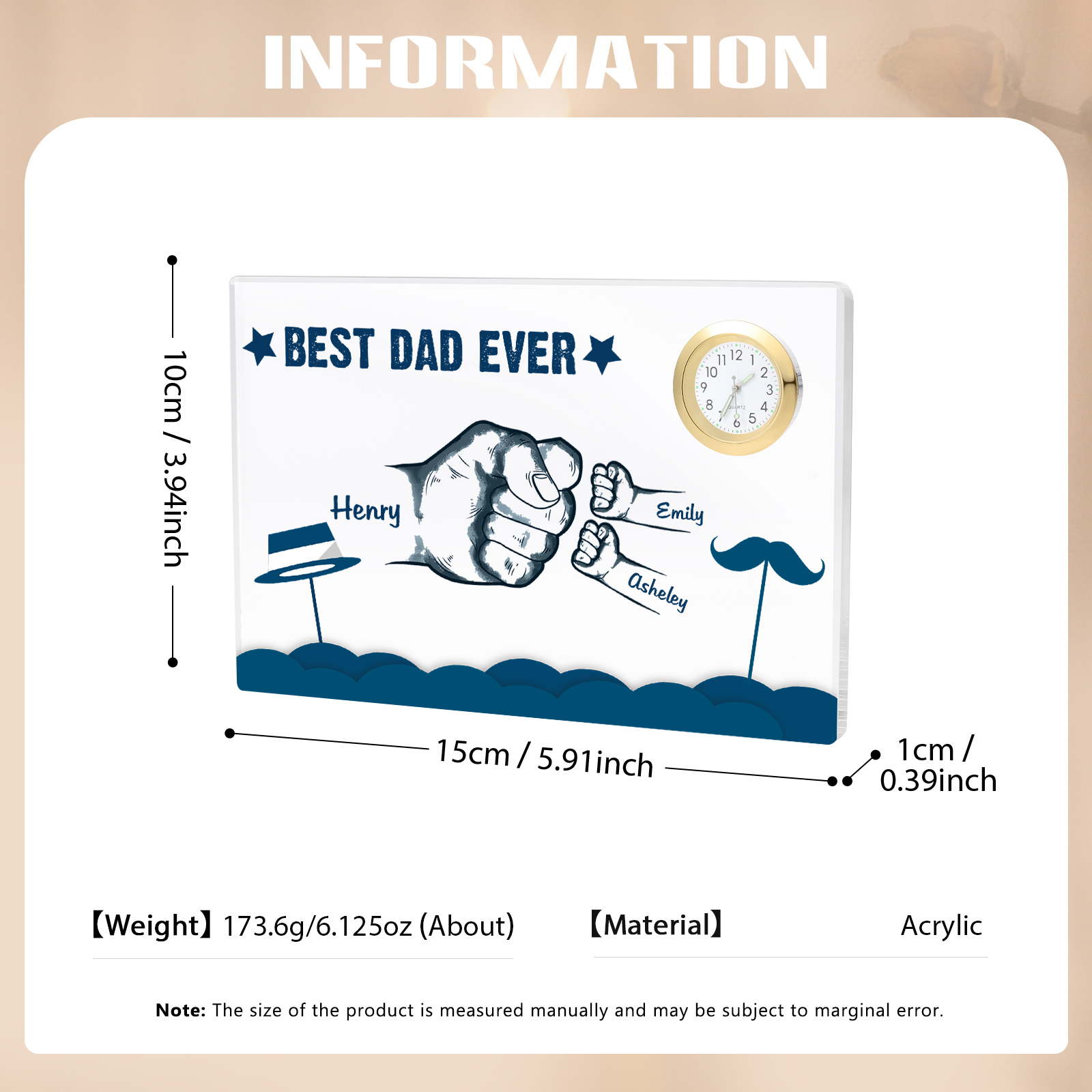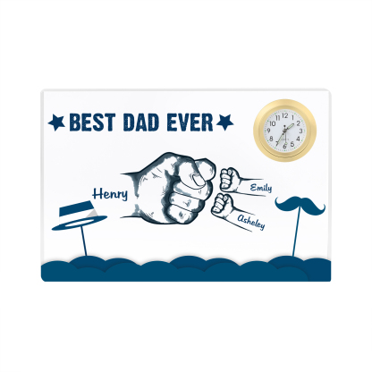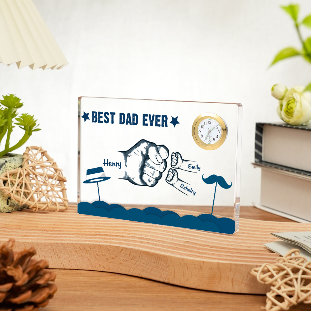 3 Names - Personalized Fist Bump Custom Name Acrylic Clock Ornament Father's Day Gift for Dad