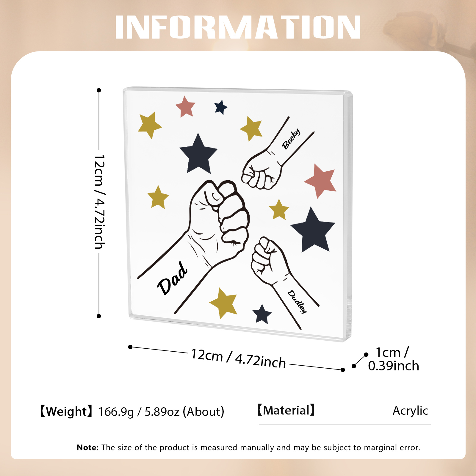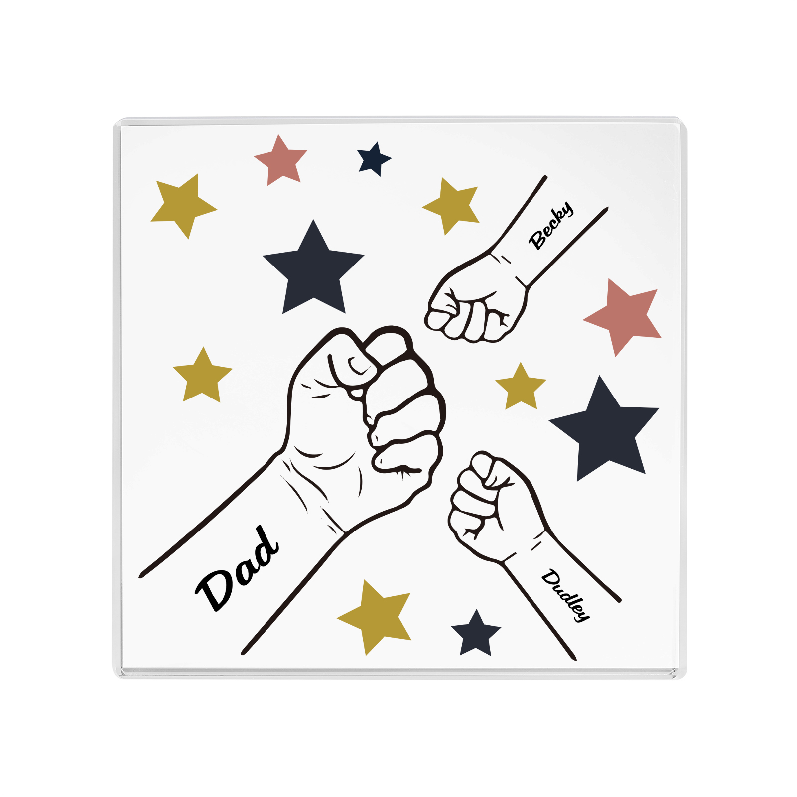3 Names - Personalized Fist Bump Family Acrylic Keepsake Customized Name Acrylic Home Decor Gift for Dad