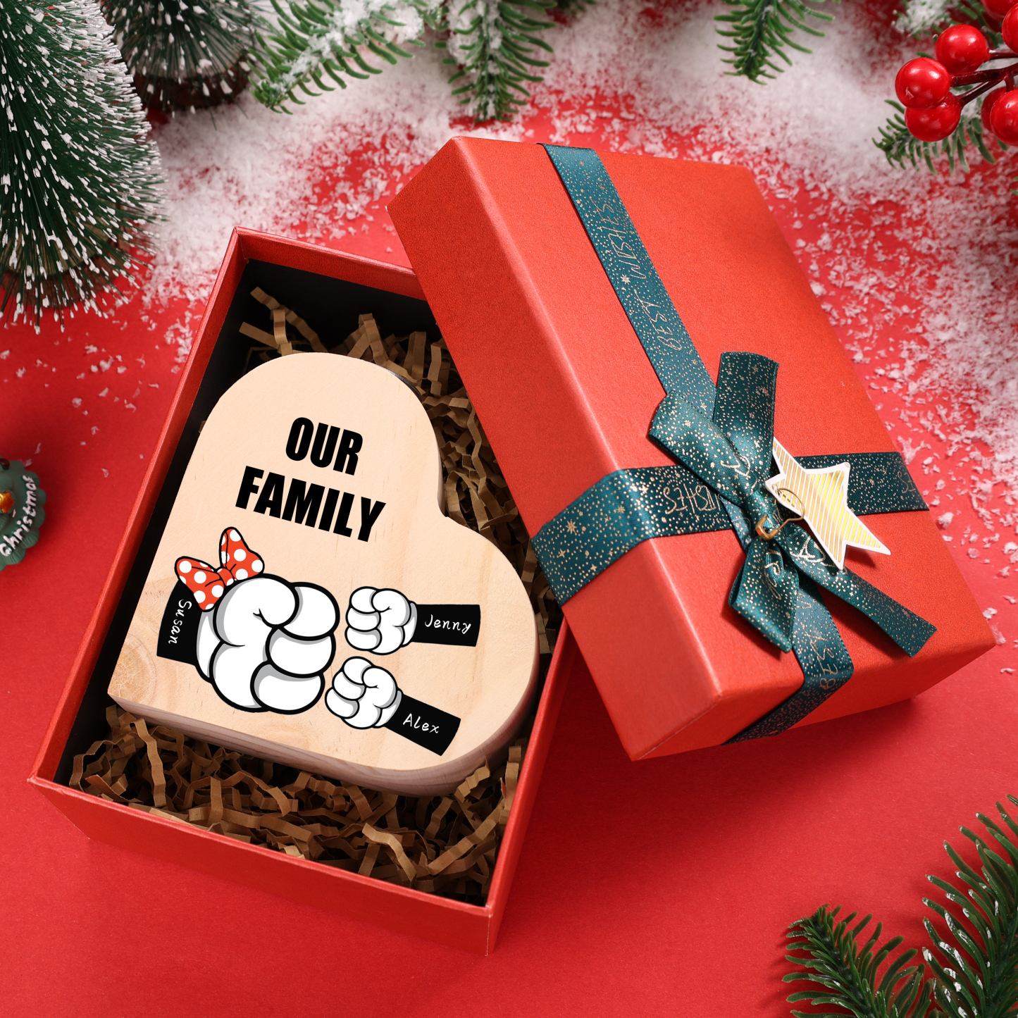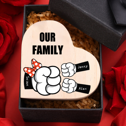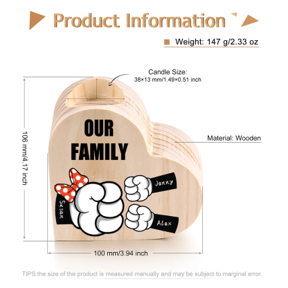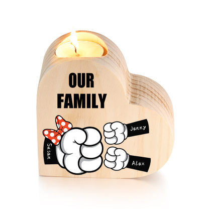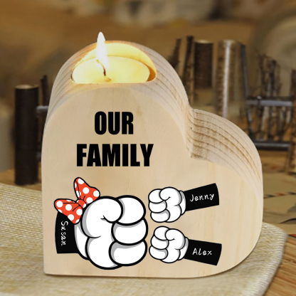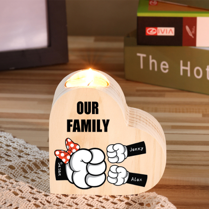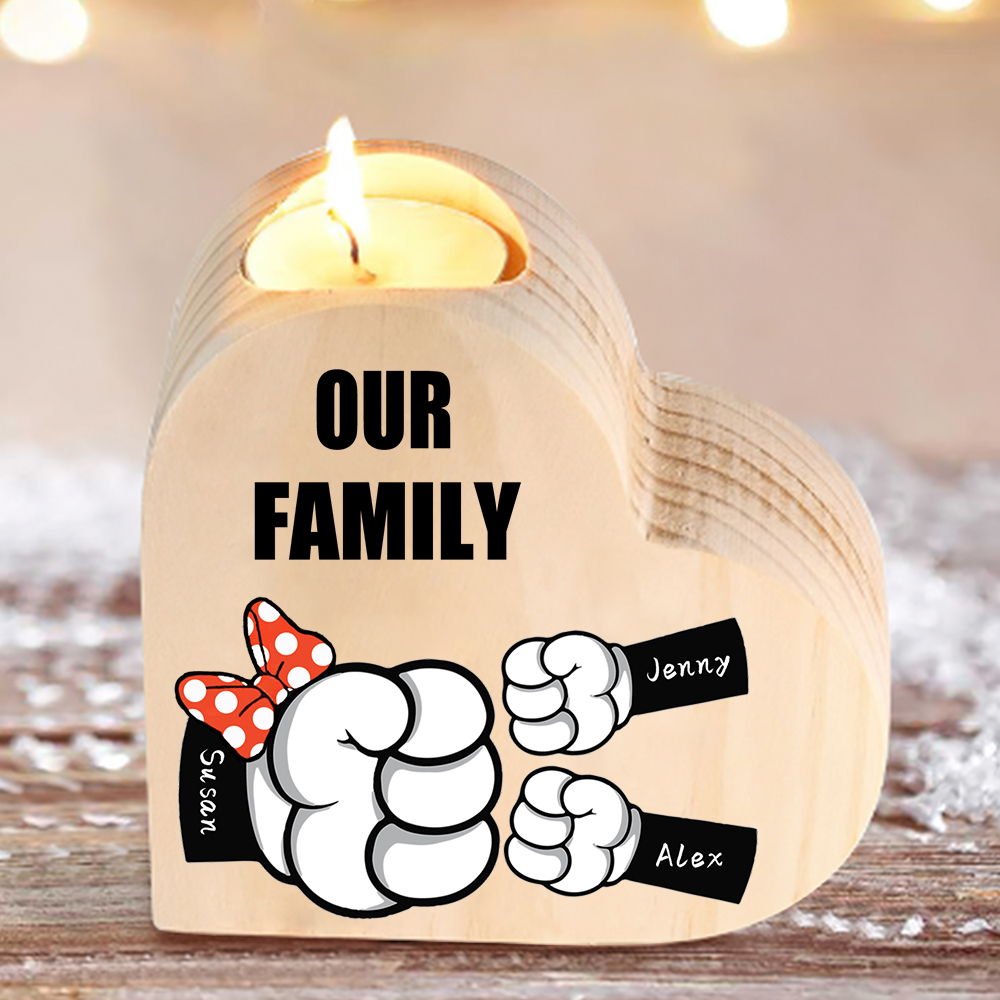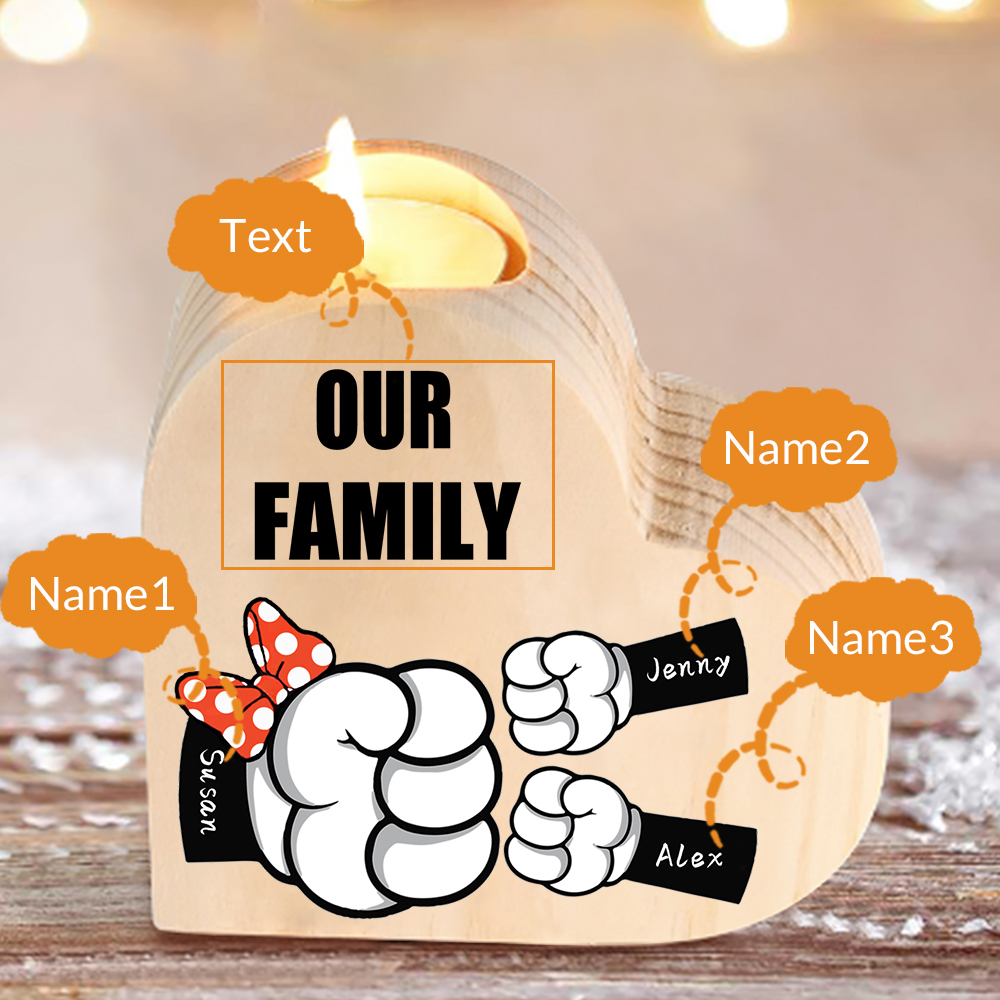3 Names-Personalized Fist Bump Heart-Shape Candlestick Custom Text Mother's Day Gift Wooden Custom Candle Holder For Mum