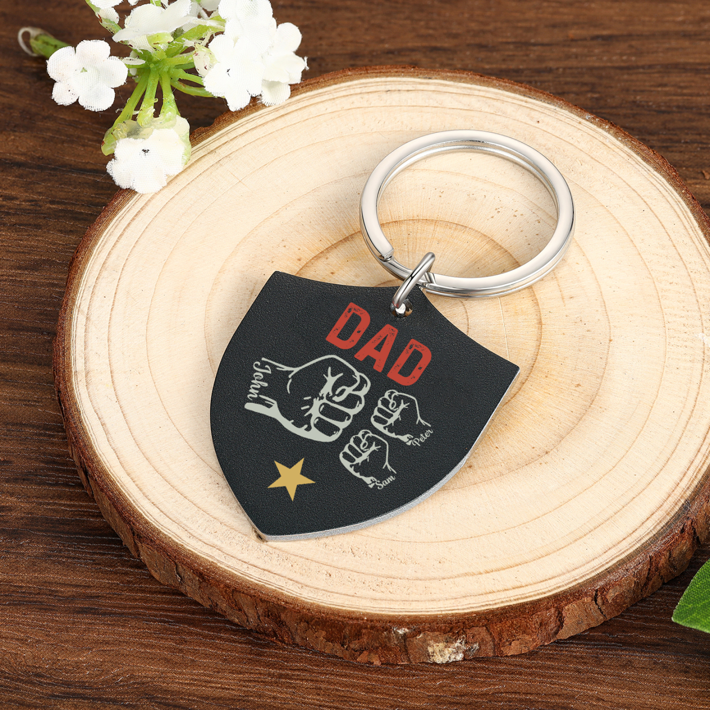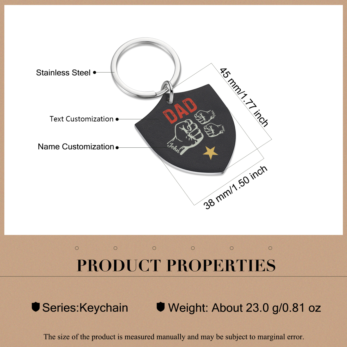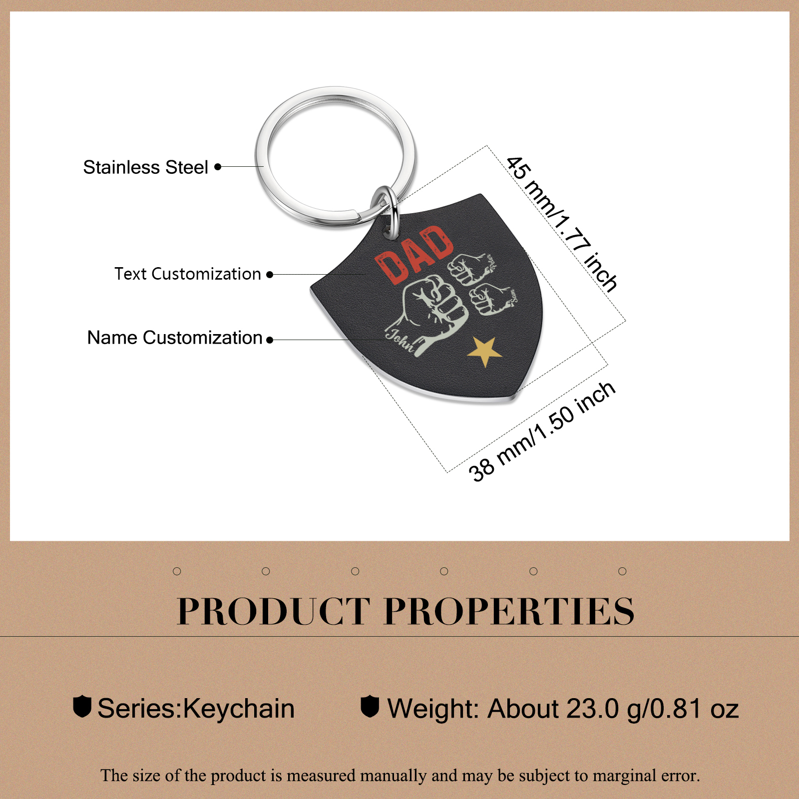 3 Names - Personalized Fist Bump Keychain Engraved Kids Names and text Keychain Gifts for Dad/Grandpa