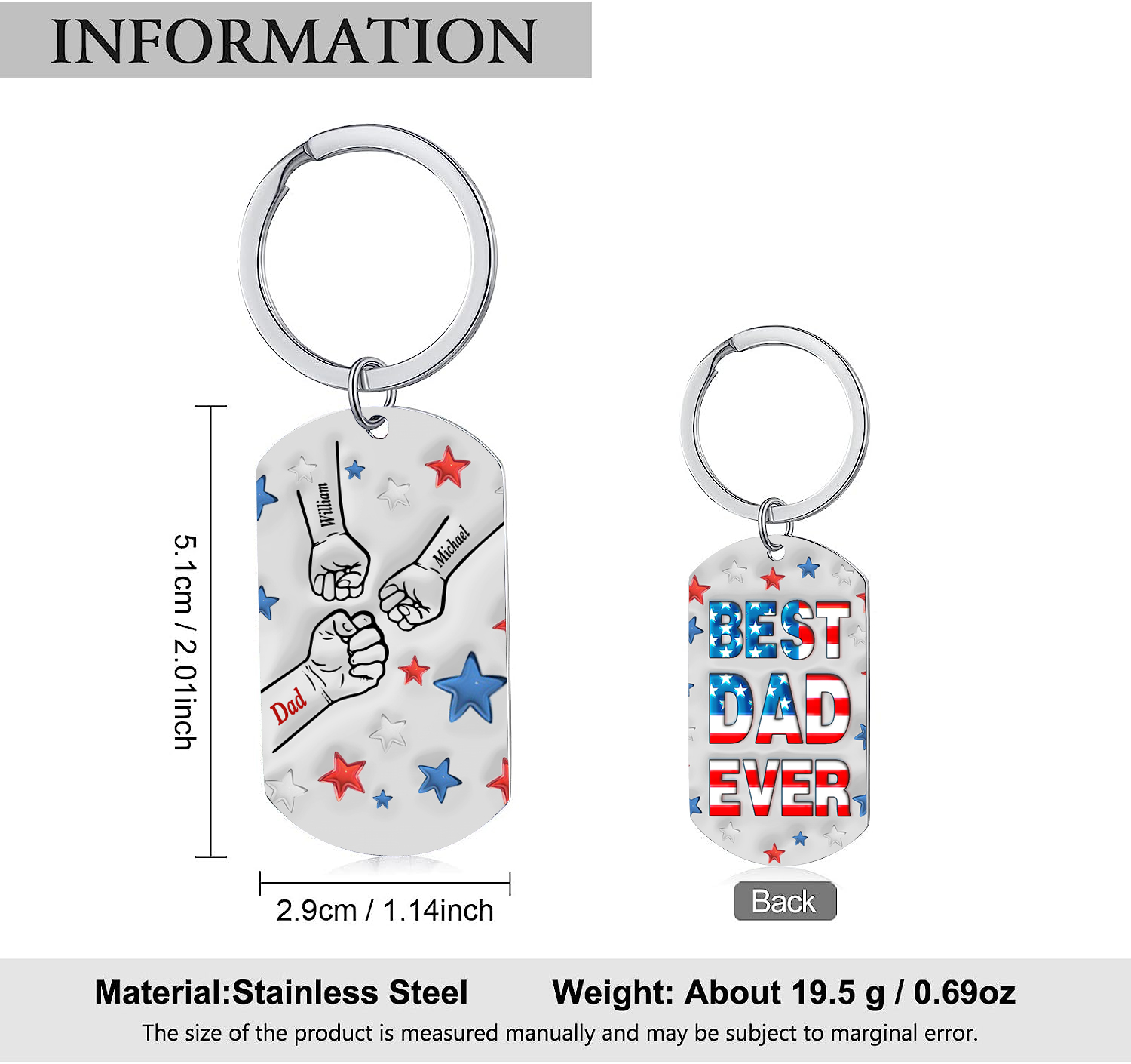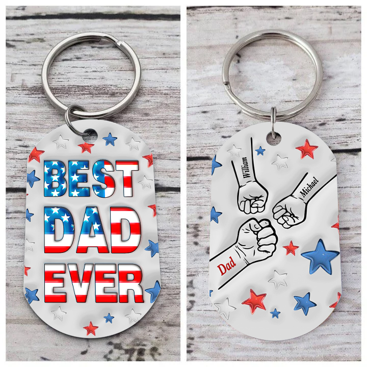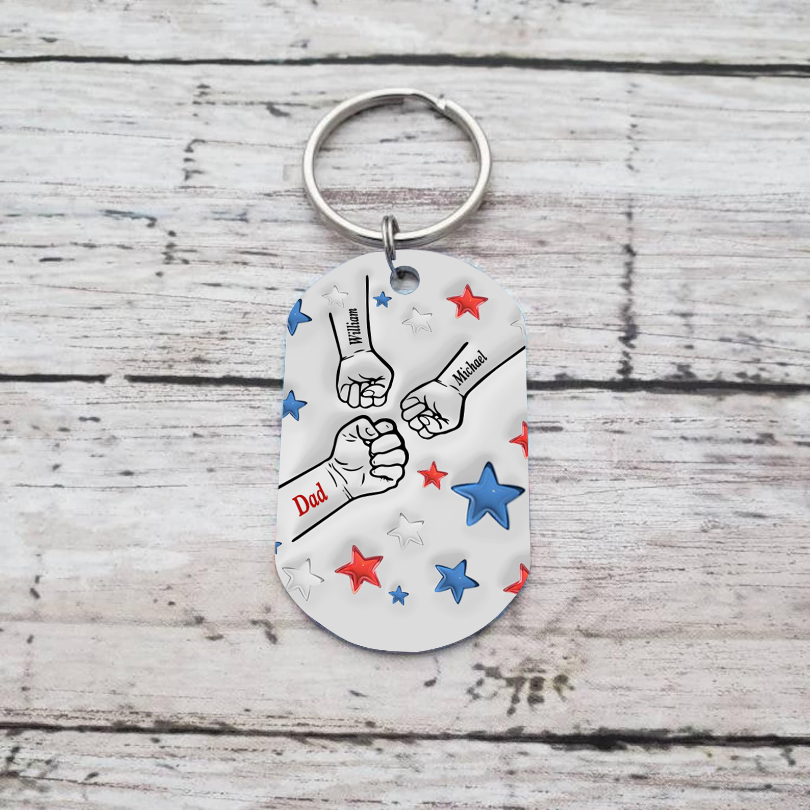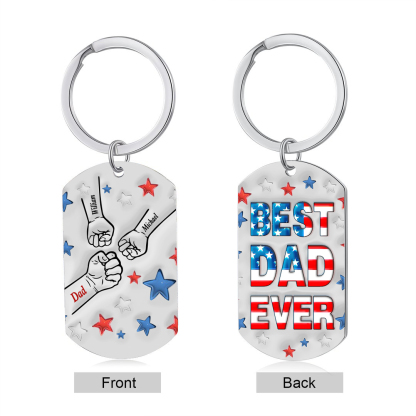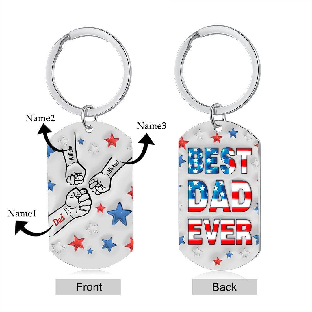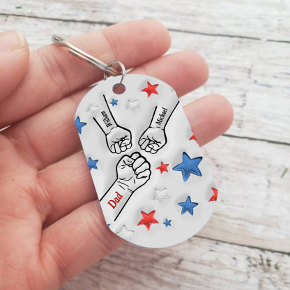 3 Names - Personalized Fist Bump Keychain Engraved Name Keychain Gift for Dad