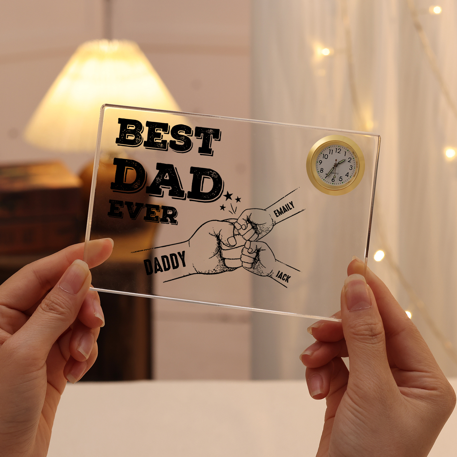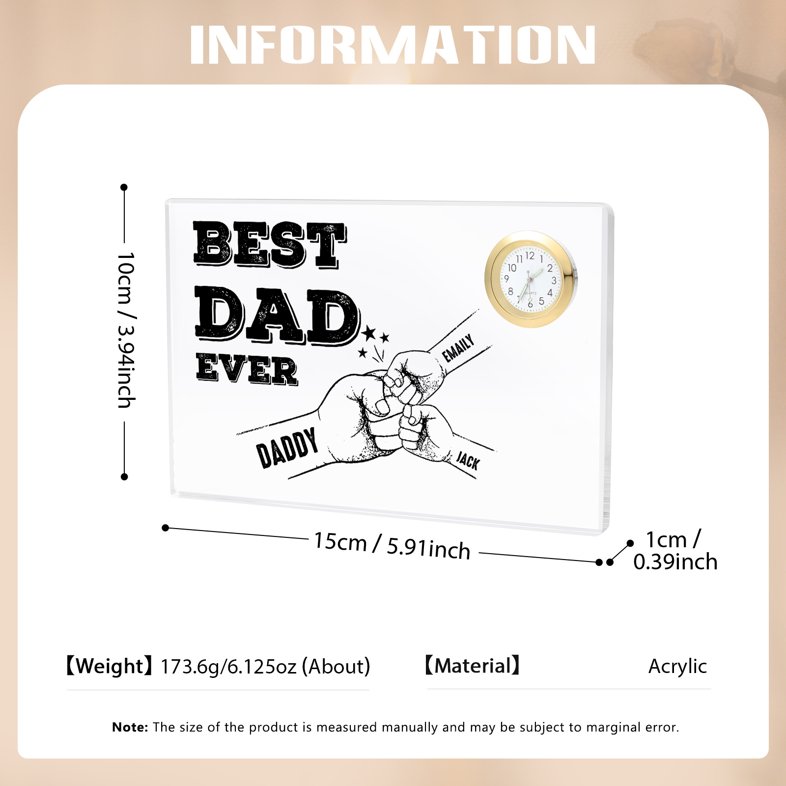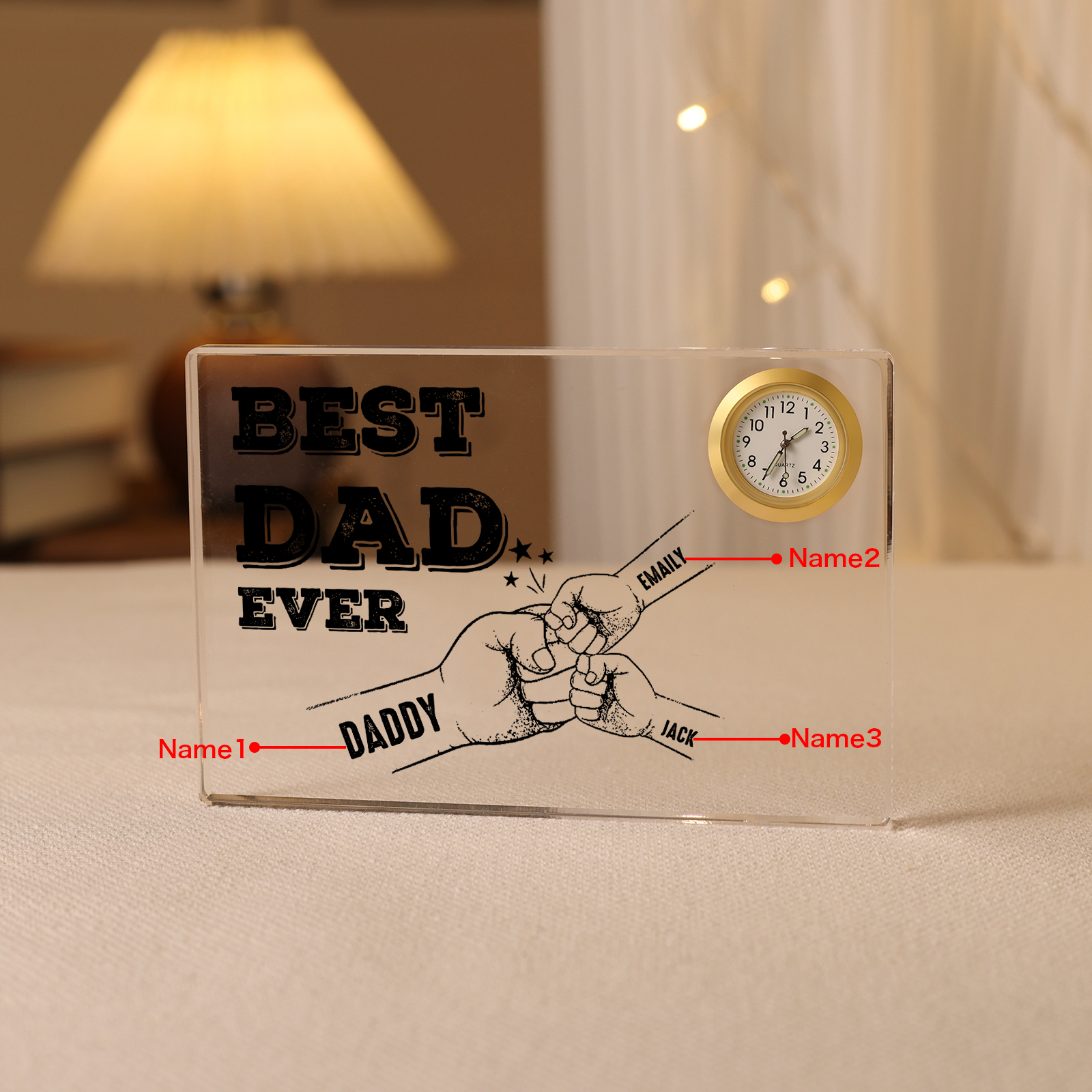 3 Names - Personalized Fist Bump Pattern Custom Name Acrylic Rectangular Clock Ornament Father's Day Gift