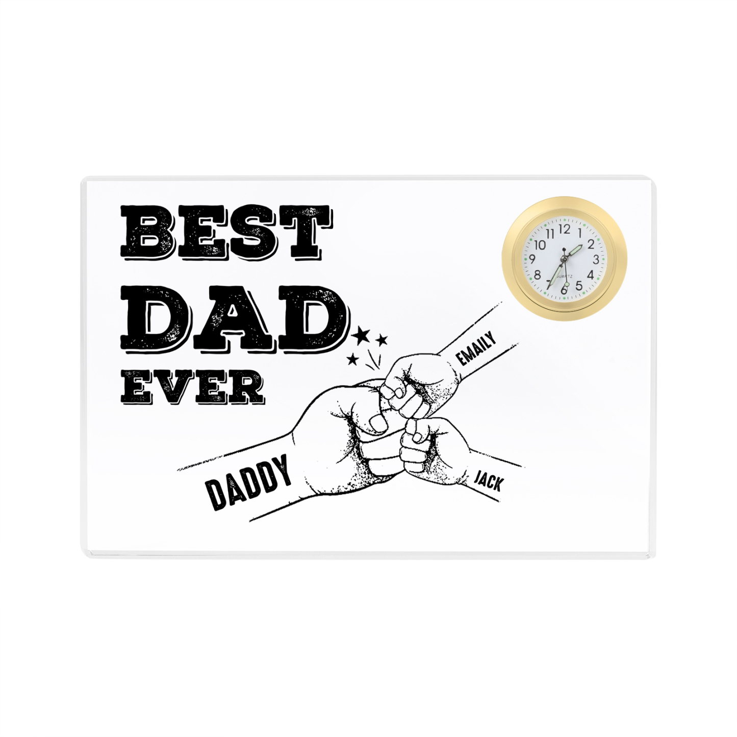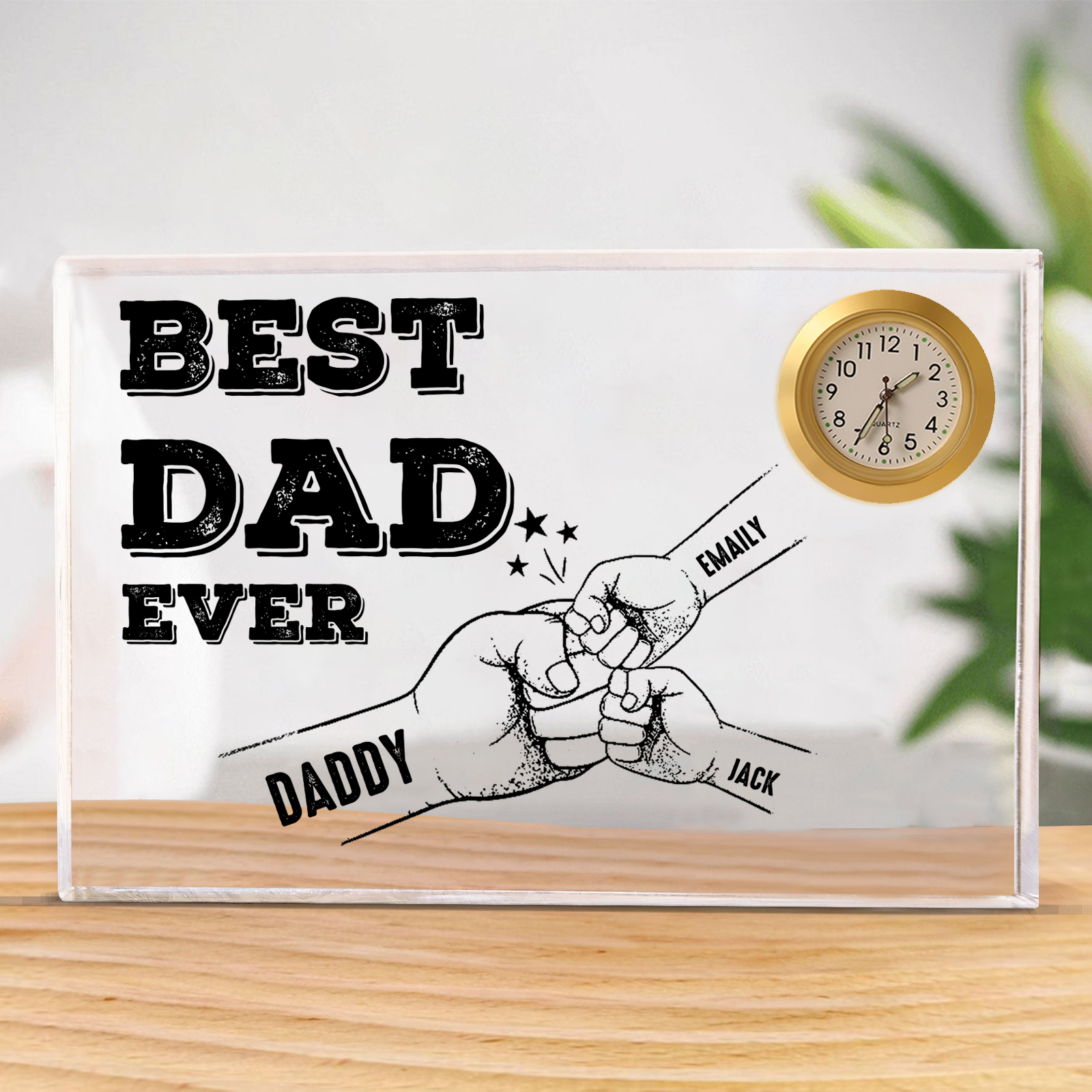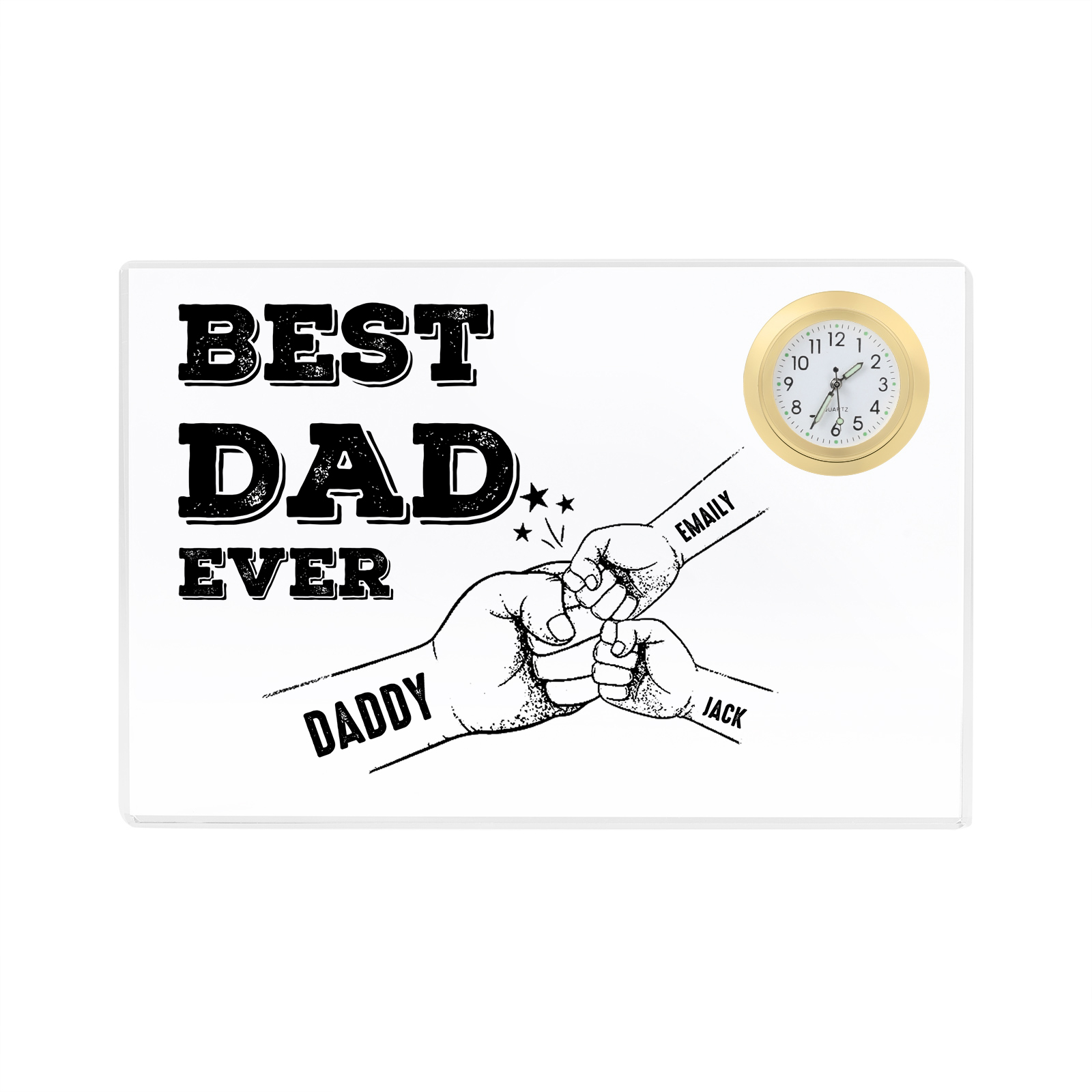 3 Names - Personalized Fist Bump Pattern Custom Name Acrylic Rectangular Clock Ornament Father's Day Gift