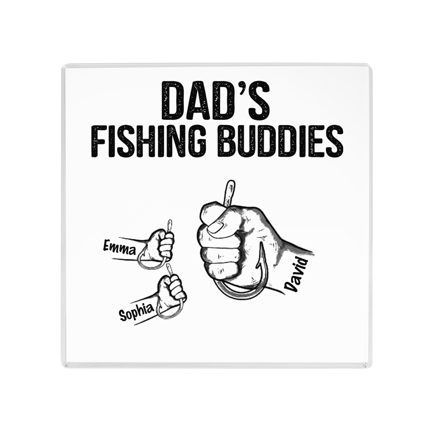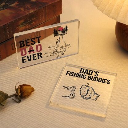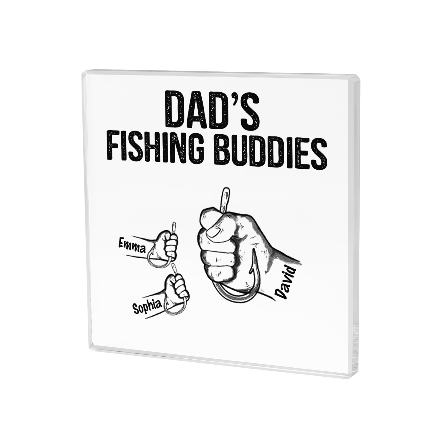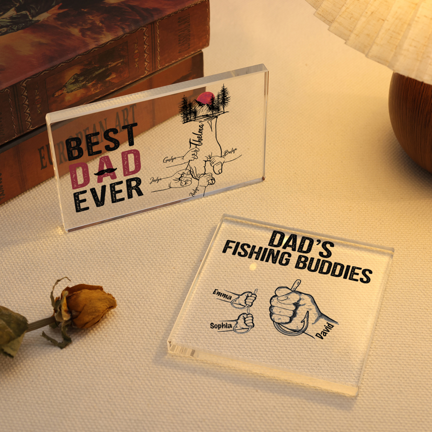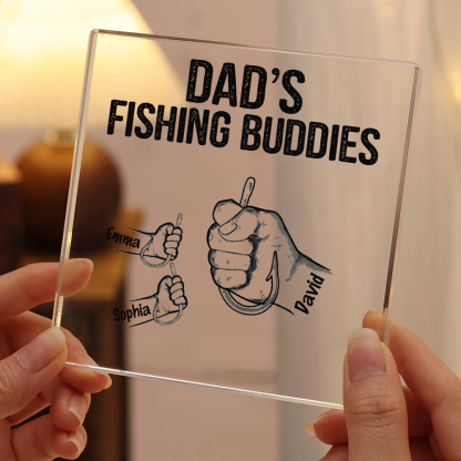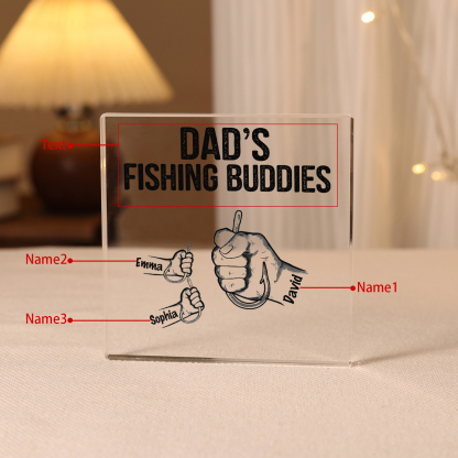 3 Names - Personalized Fishhook Fist Bump Pattern Family Acrylic Keepsake Customized Name Acrylic Home Decor Gift for Dad