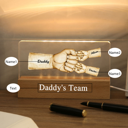 3 Names - Personalized Fist Bump Pattern Table Lamp Customized Text Father's Day Gift for Dad
