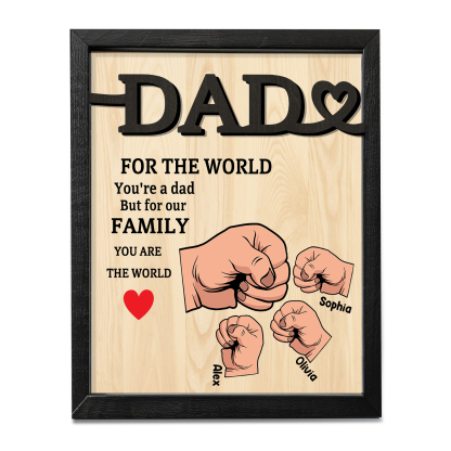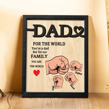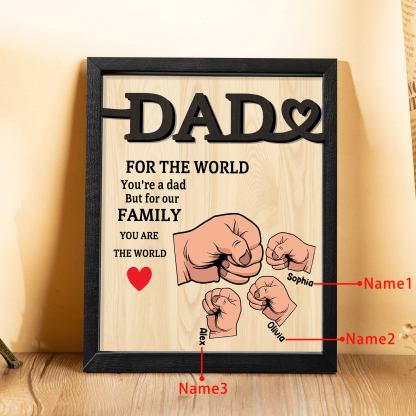 3 Names - Personalized Fist Bump Style Home Frame Wooden Decor Father's Day Gift for Dad
