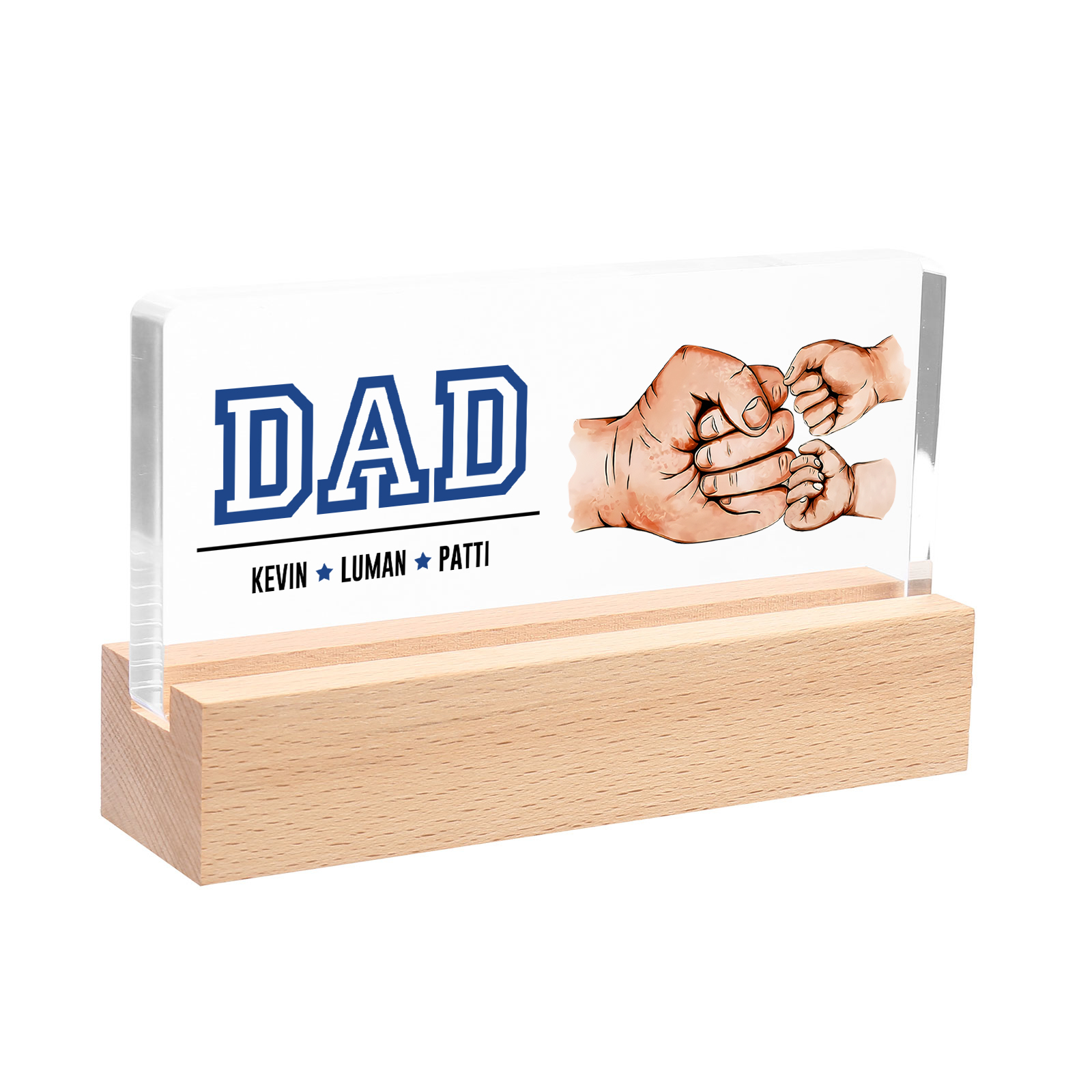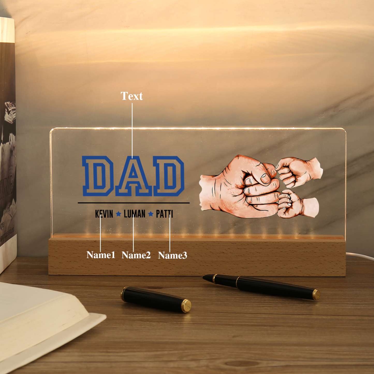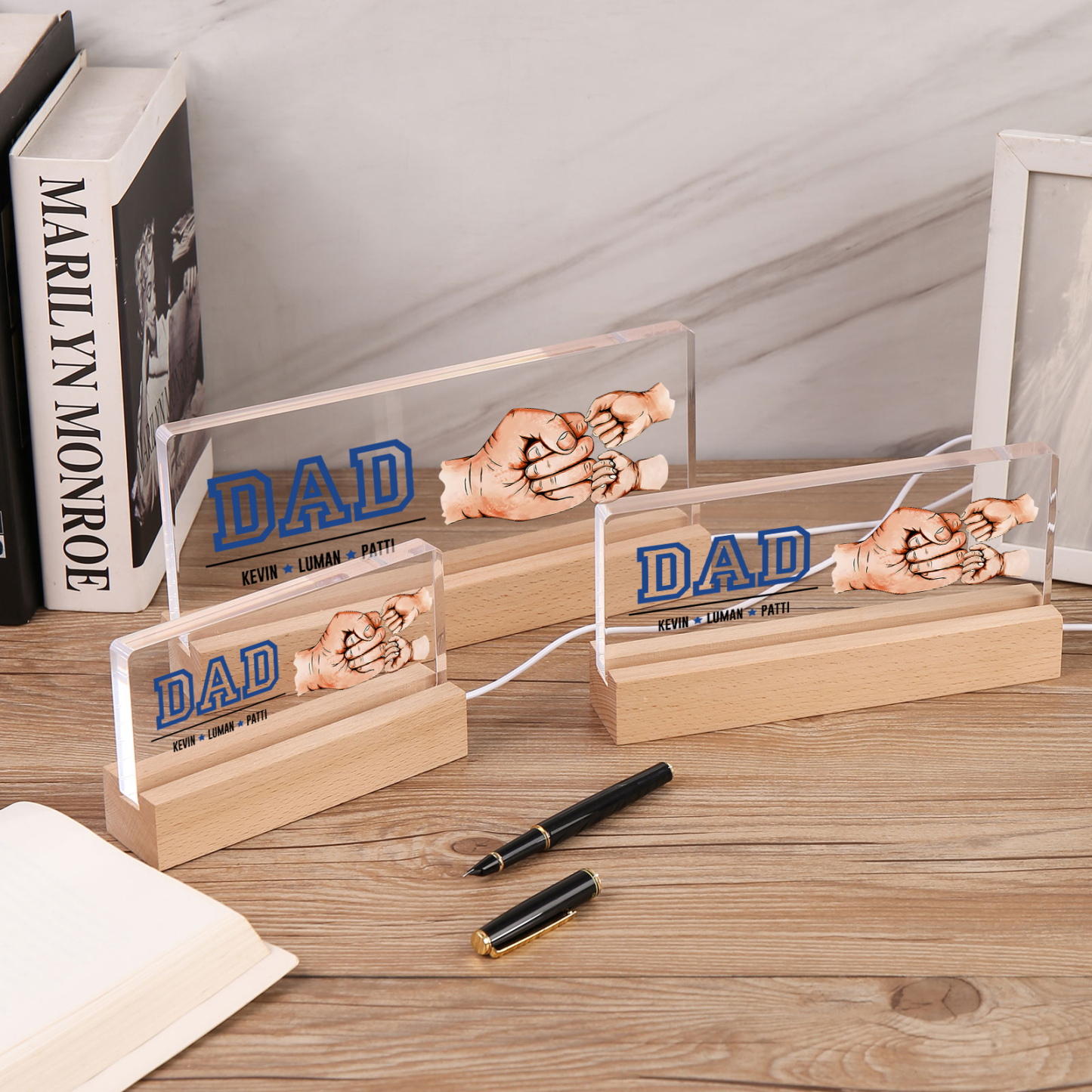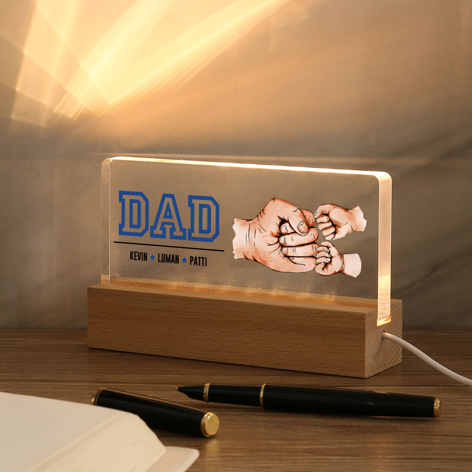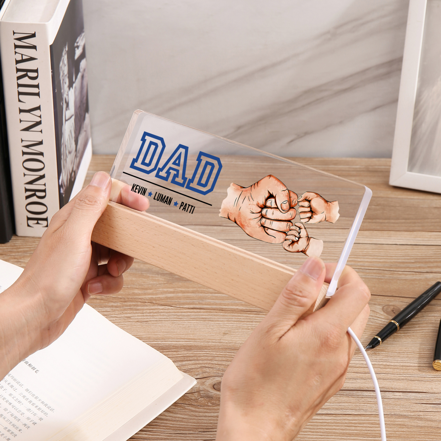3 Names - Personalized Fist Bump Table Lamp - Dad's Dream Team - Father's Day Gift for Dad