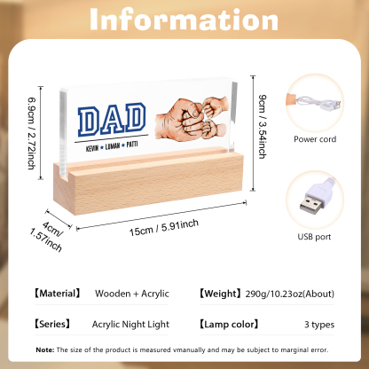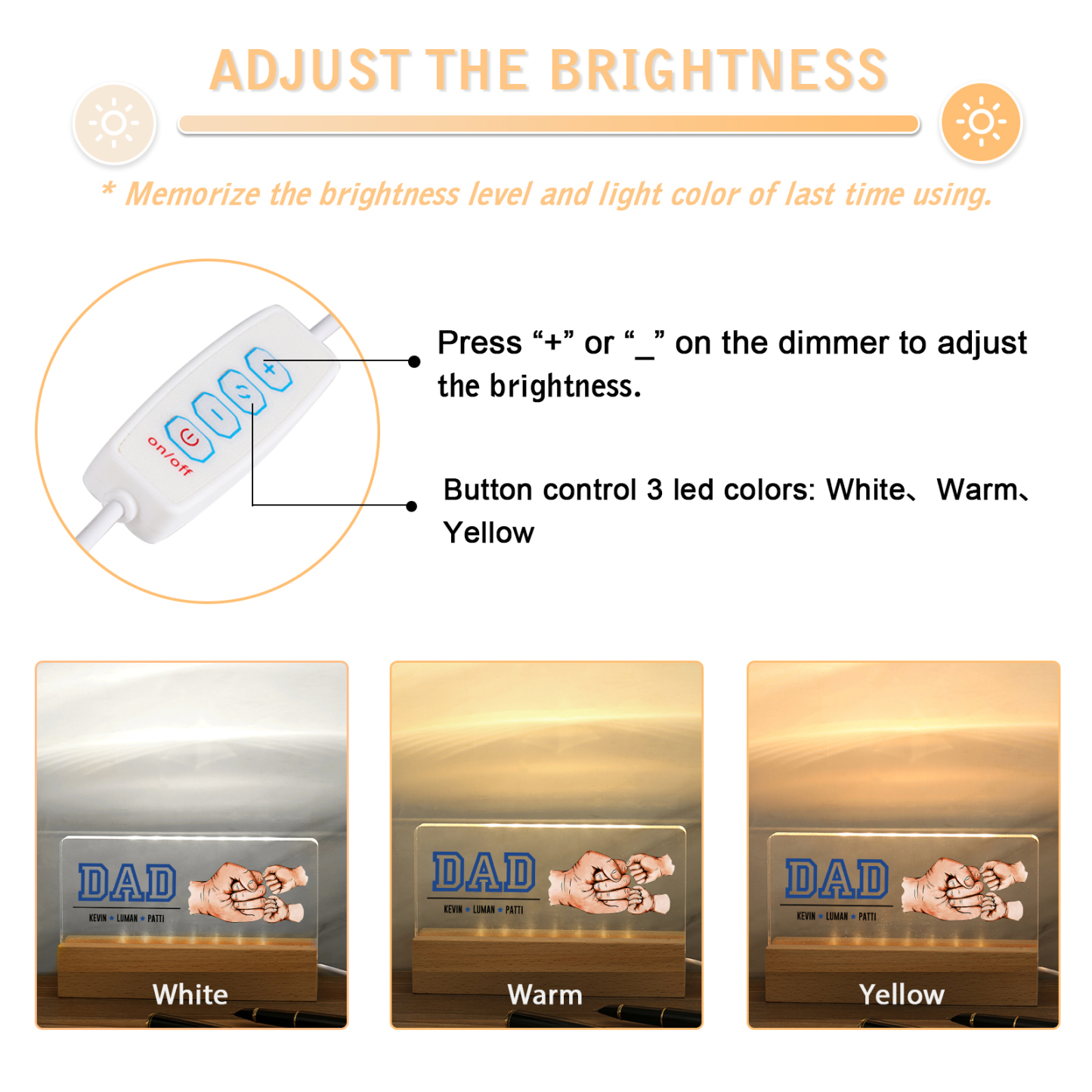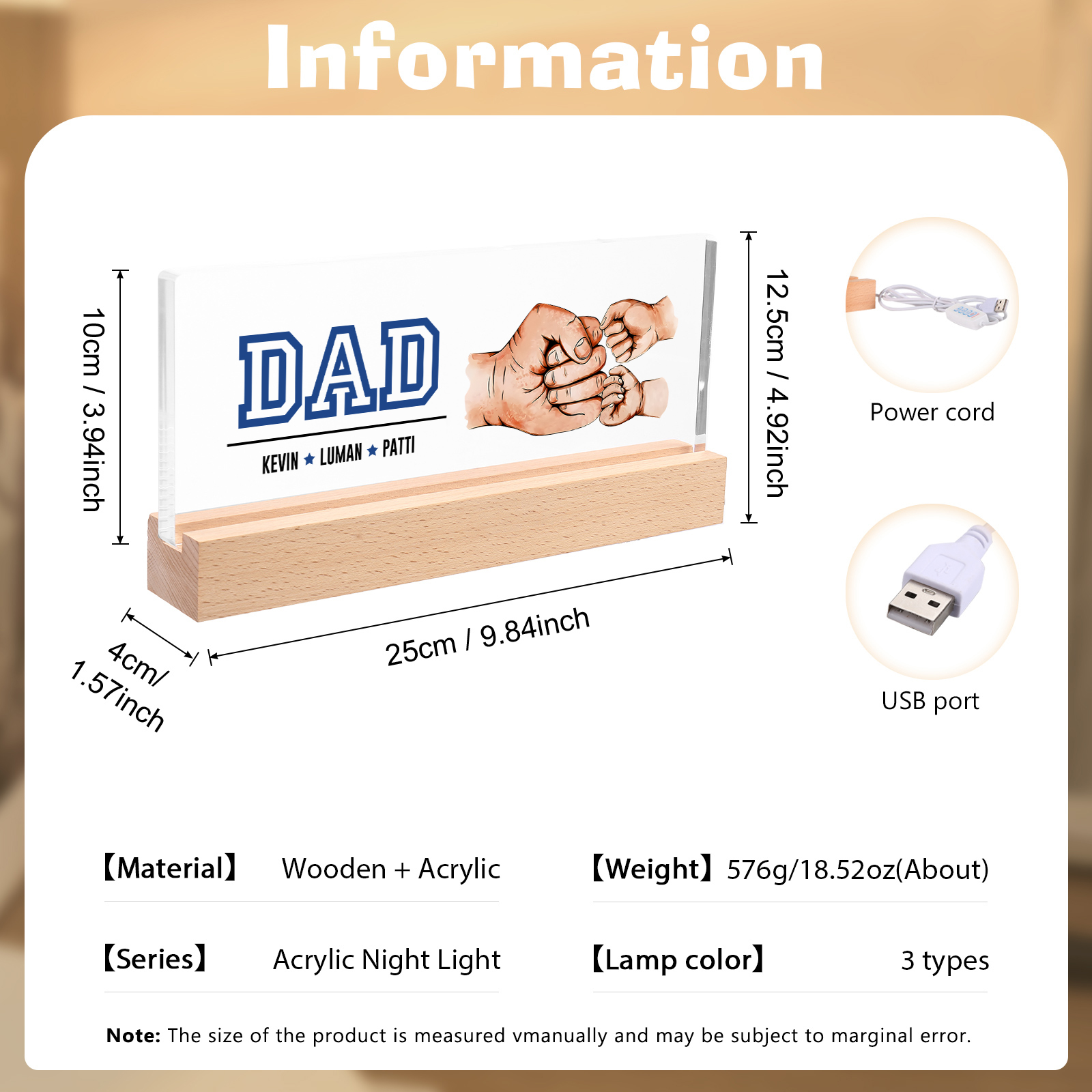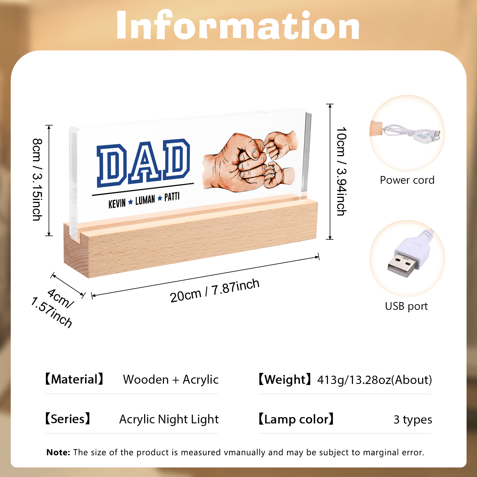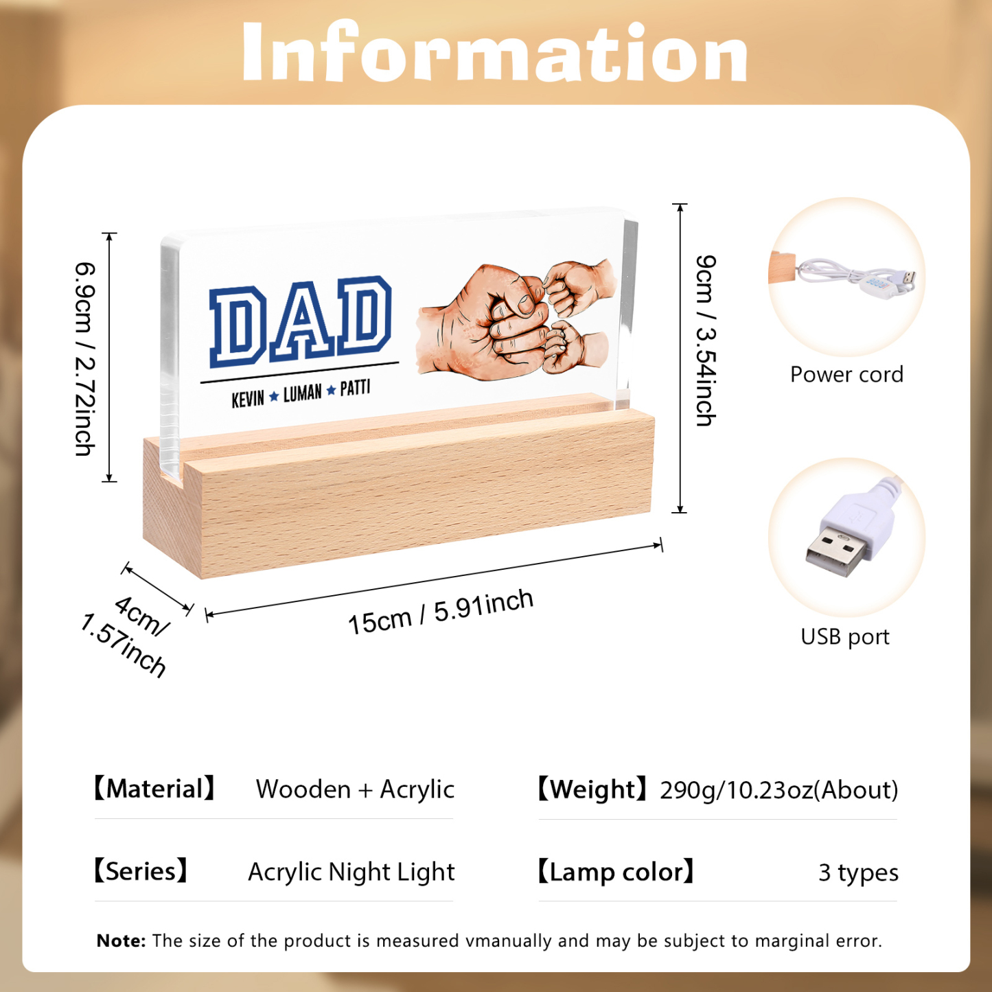 3 Names - Personalized Fist Bump Table Lamp - Dad's Dream Team - Father's Day Gift for Dad
