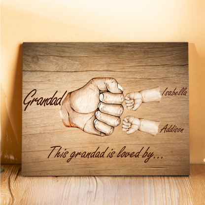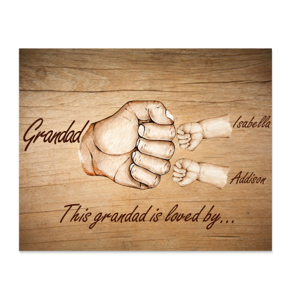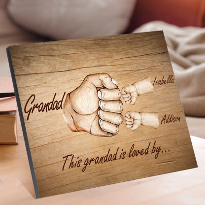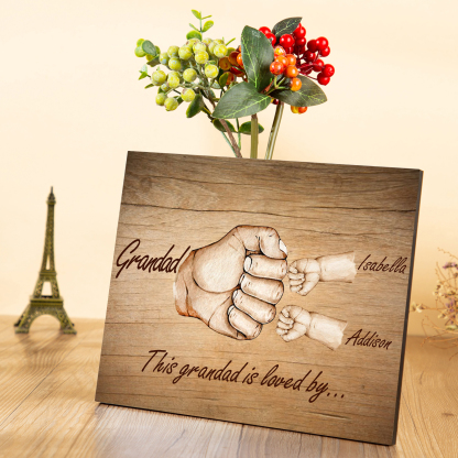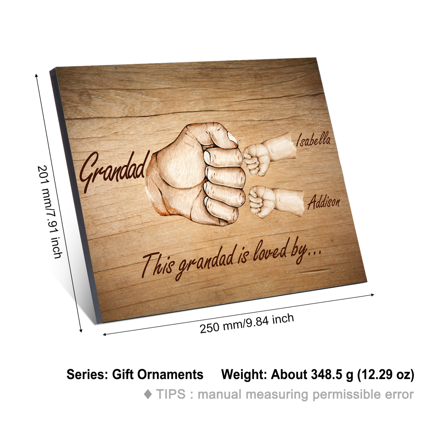 3 Names-Personalized Grandad Family Fist Bump Frame Wooden Ornament Custom Text Plaque Home Decoration for Grandfather