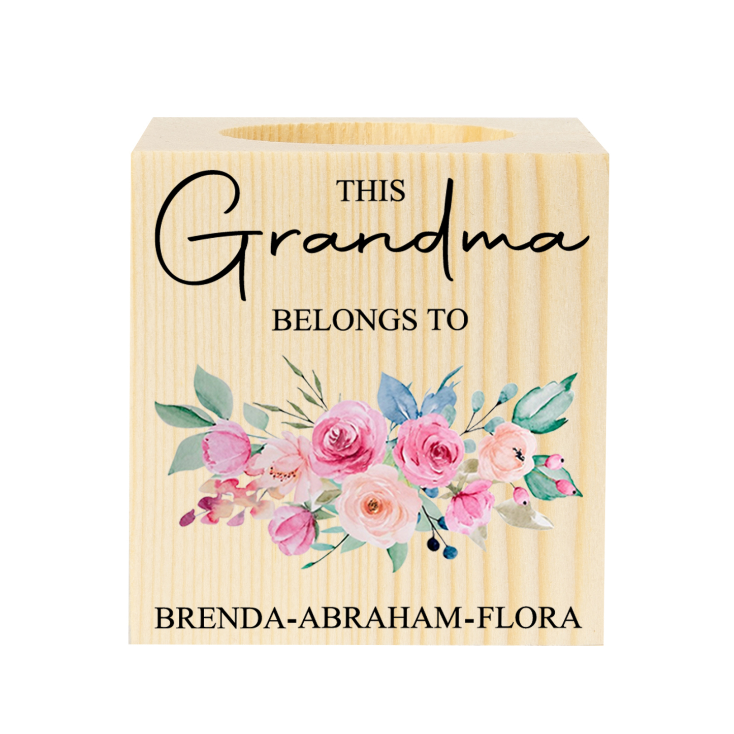 3 Names-Personalized Grandma Flower Candle Holder, Custom Name Family Candlestick for Nana-Special Parents Gift
