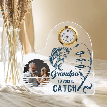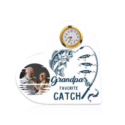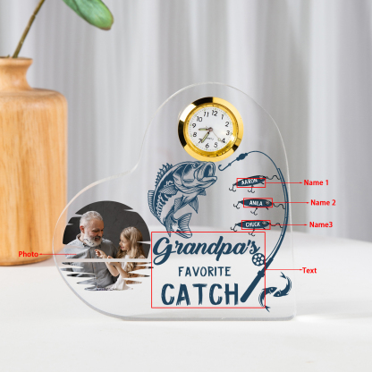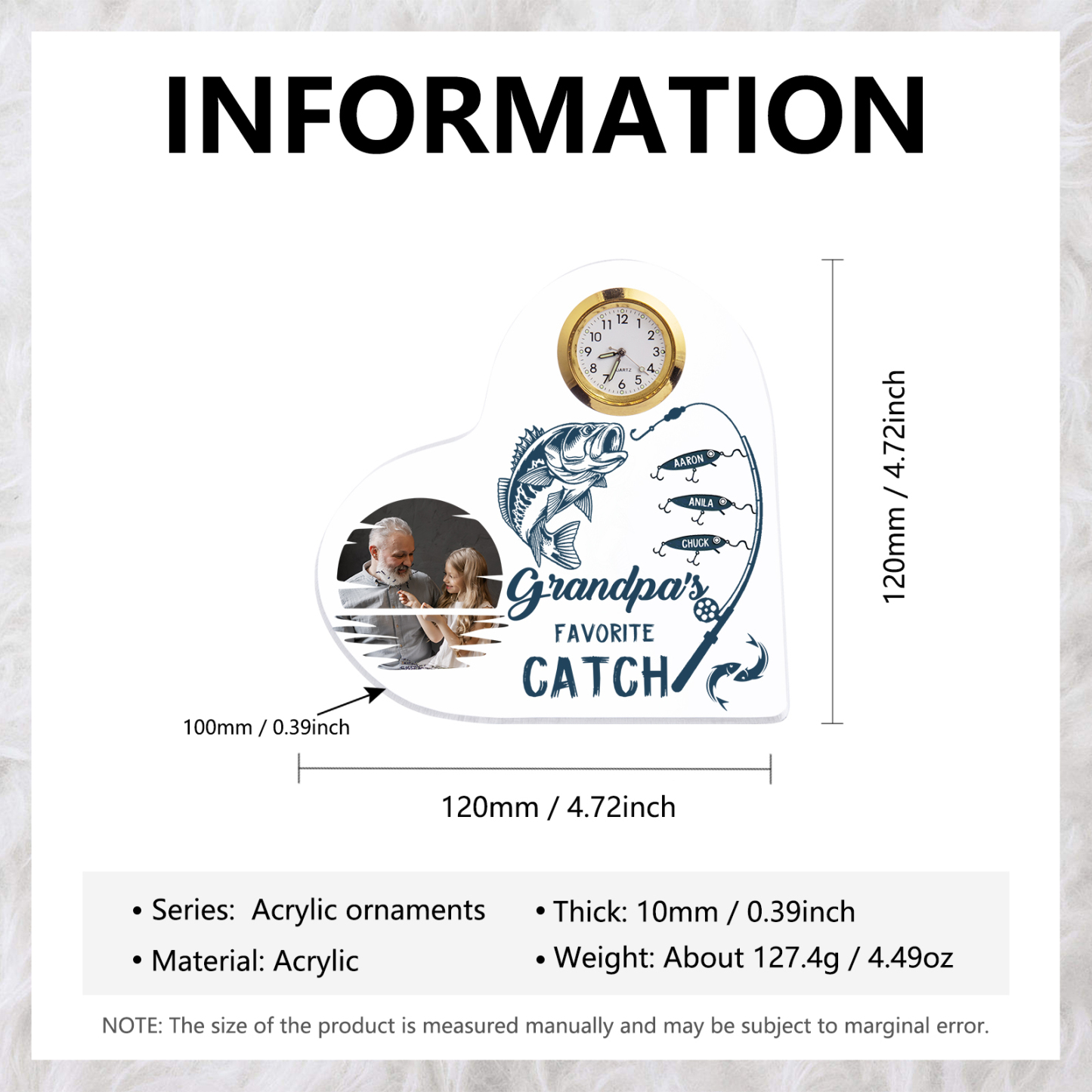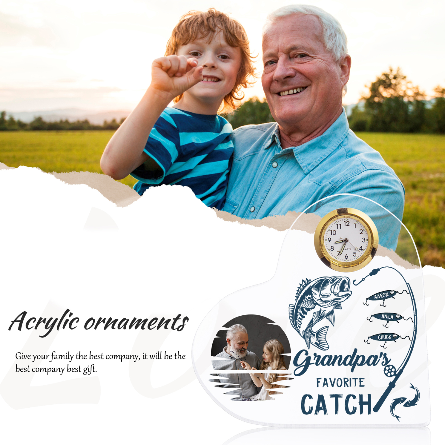 3 Names-Personalized Grandpa Name Acrylic Clock Ornament-Custom Acrylic Fishing Heart Keepsake Desktop for Family
