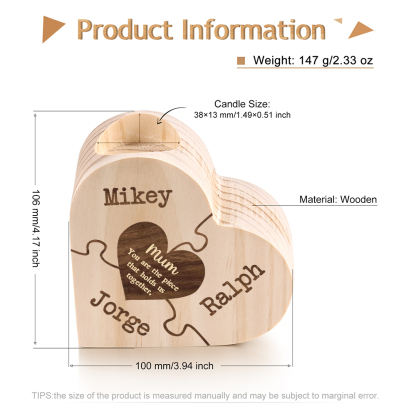 3 Names-Personalized Heart-Shape Candlestick Mother's Day Gift Wooden Custom Candle Holder For Mum