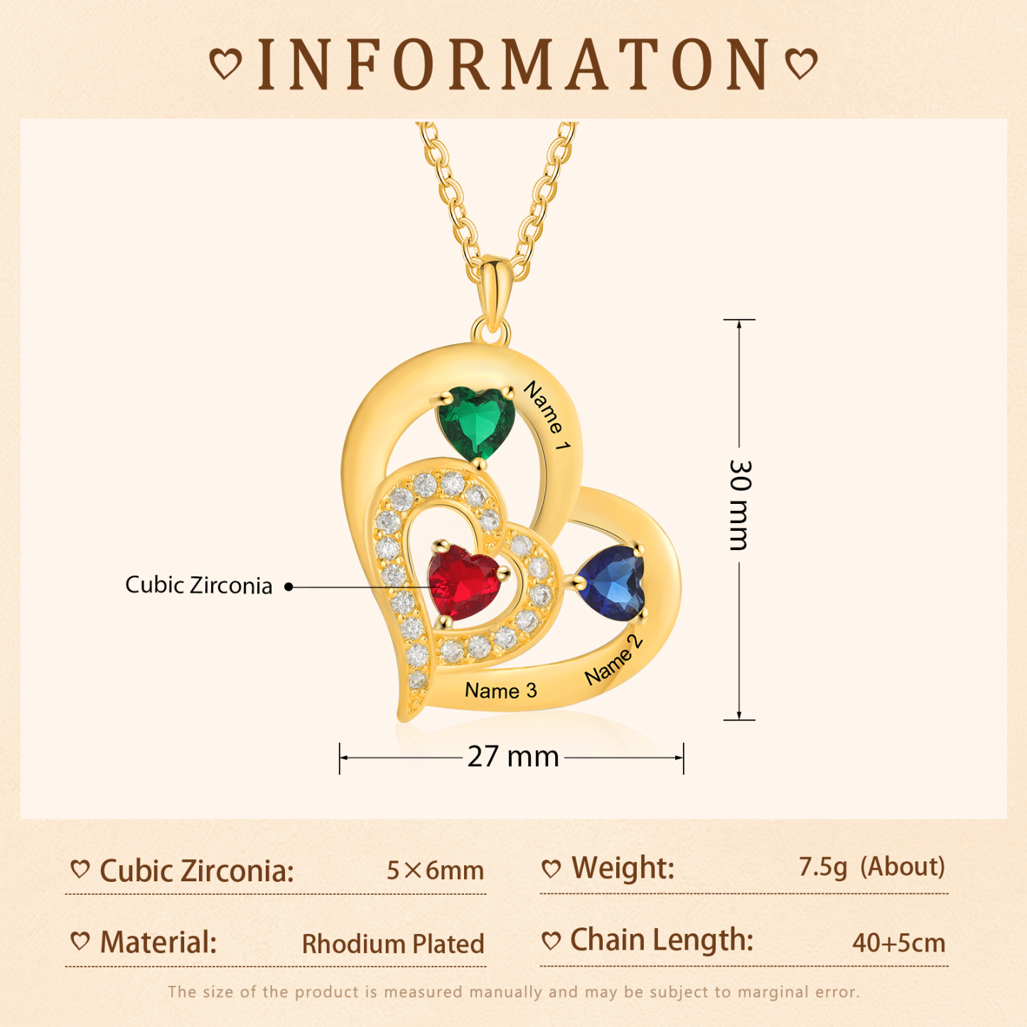 3 Names-Personalized Hearts Necklace Custom Birthstone Necklace Gifts for Her