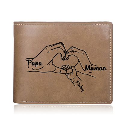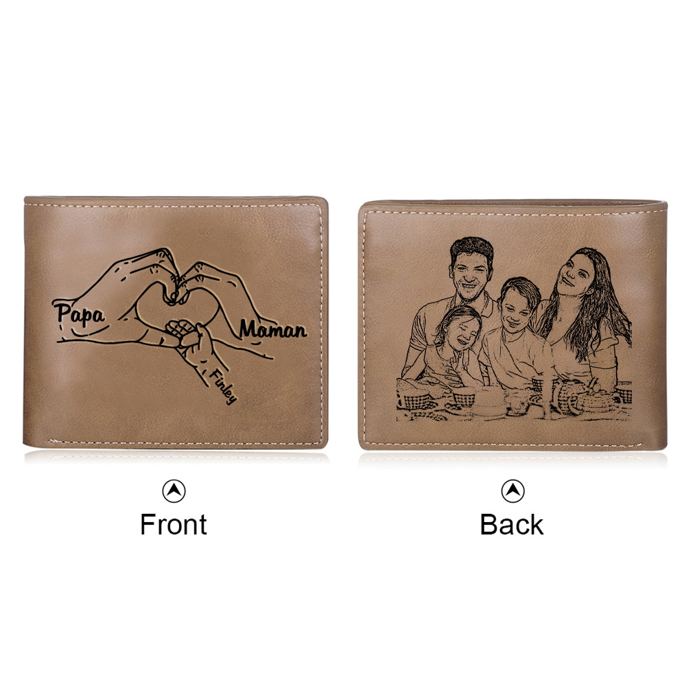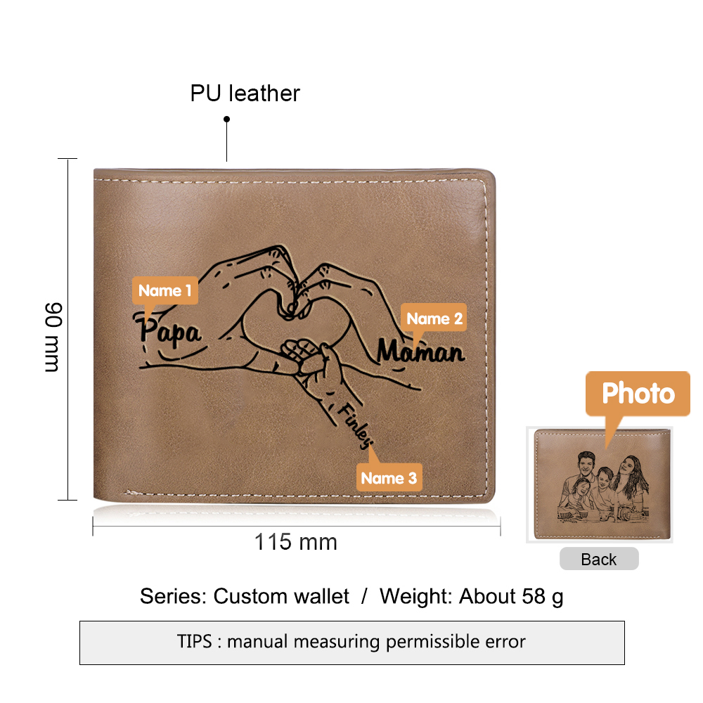 3 Names-Personalized Leather Mens Wallet Engraved 3 Names And Photo Fist Bump Folding Wallet Set With Gift Card Gift Box Father's Day Gifts