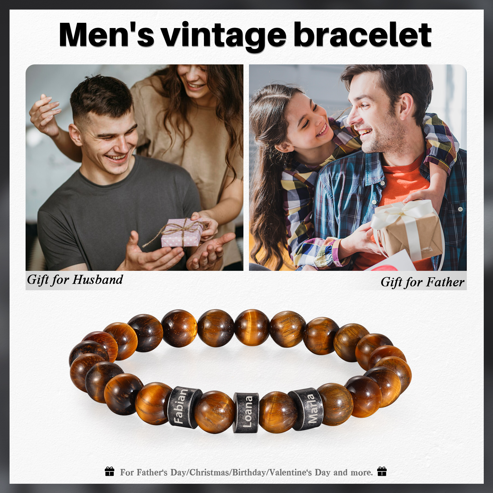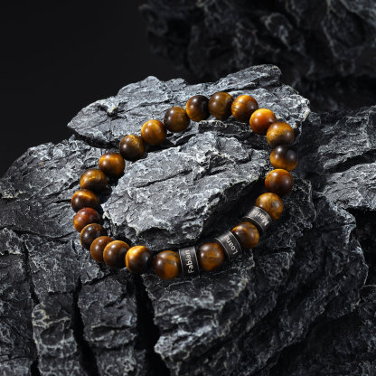 3 Names-Personalized Men Tiger's Eye A Goods Bracelet Engraved With Names, Custom Special Men Names Bracelet