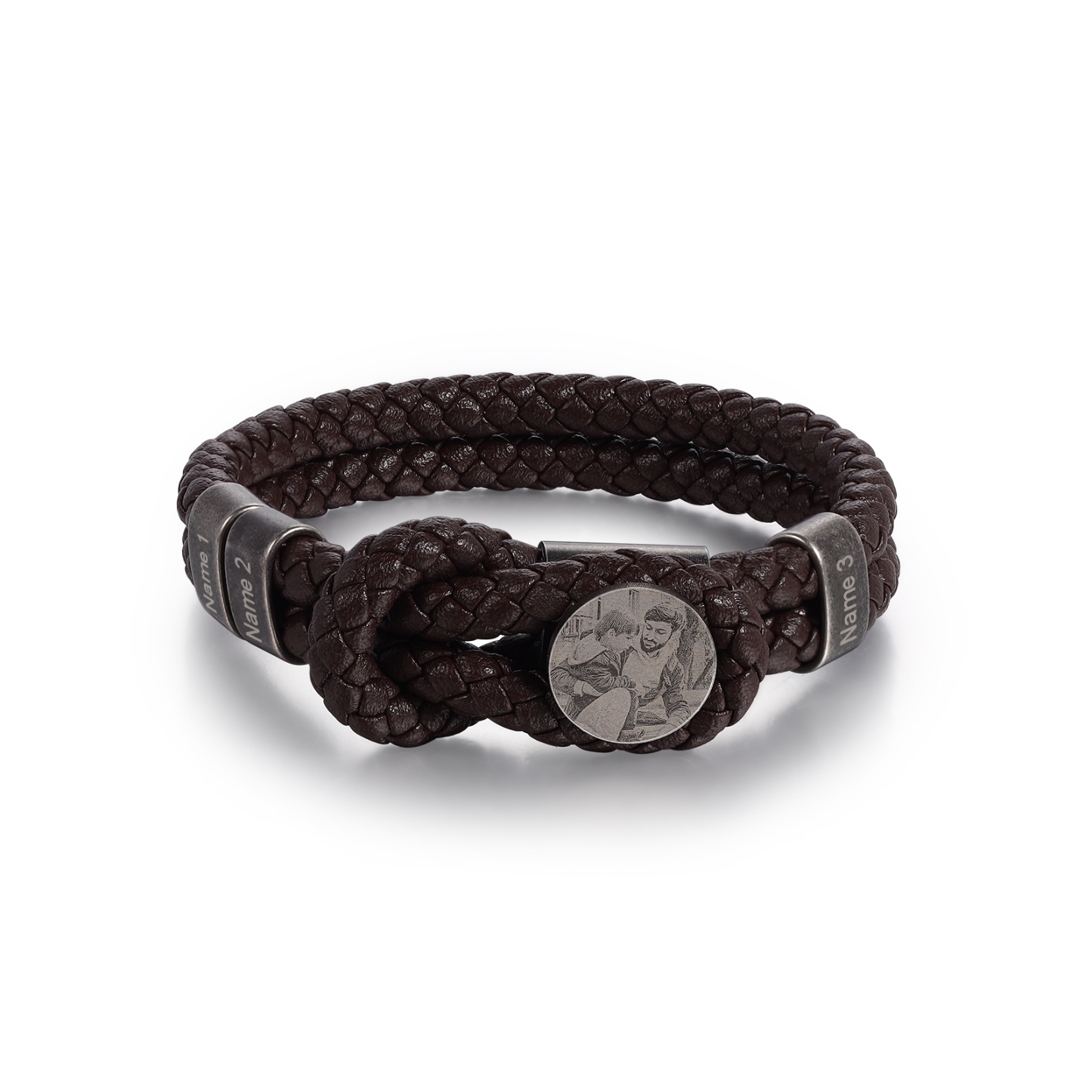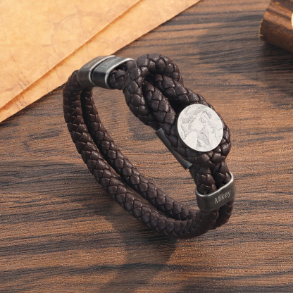 3 Names-Personalized Mens Photo Bracelet Engraved with Names, Custom Special Men's Braided Name Bracelet