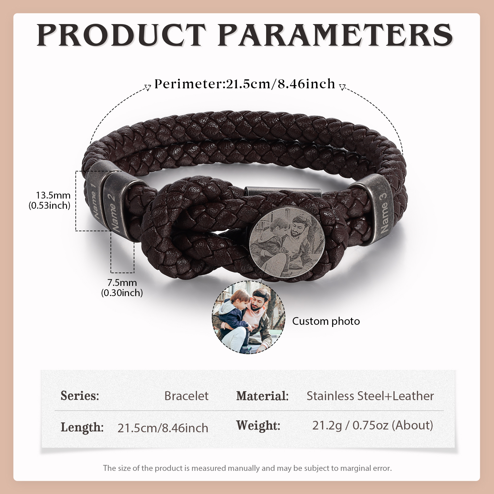 What sets our product apart is its customization option. The bracelet can be personalized with 1 photo and 2-5 names, allowing you to make a truly one-of-a-kind piece. Whether it's a cherished family photo or the names of loved ones, this unique feature lets you keep meaningful memories close at hand.