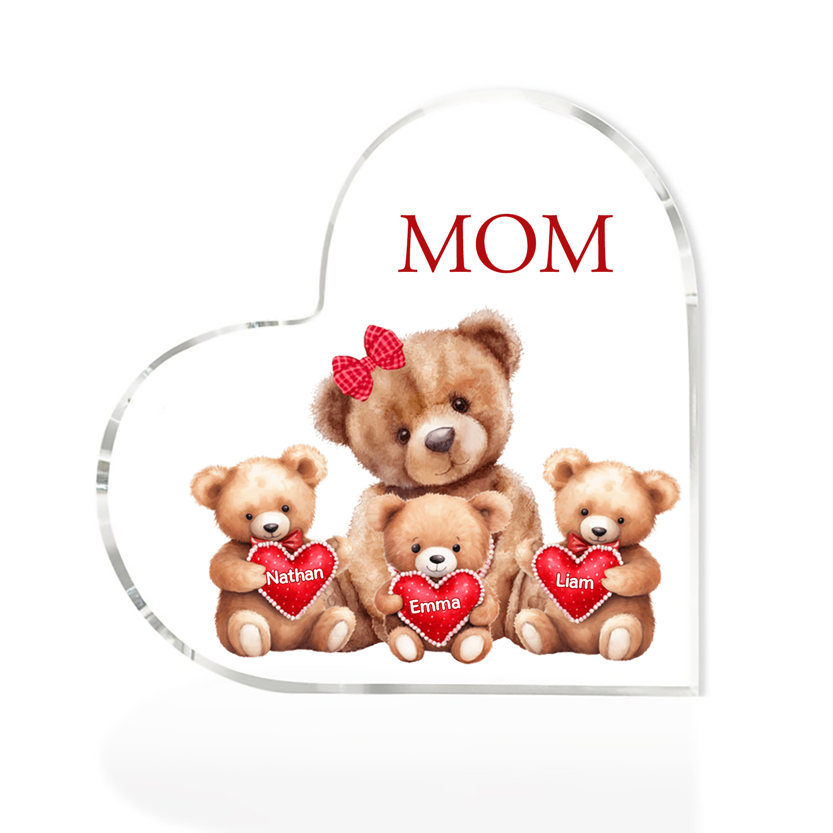 3 Names-Personalized Mom Acrylic Heart Keepsake Custom Text Love Teddy Bear Ornaments Gifts Set With Gift Box for Grandma/Mother