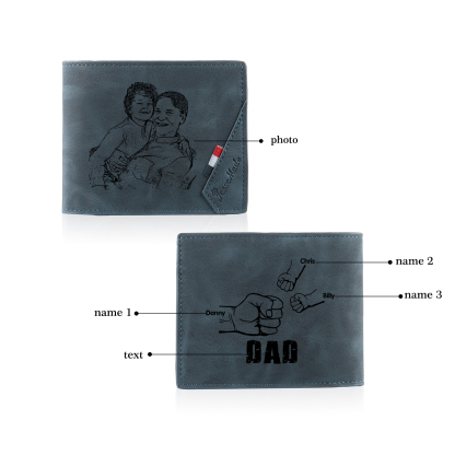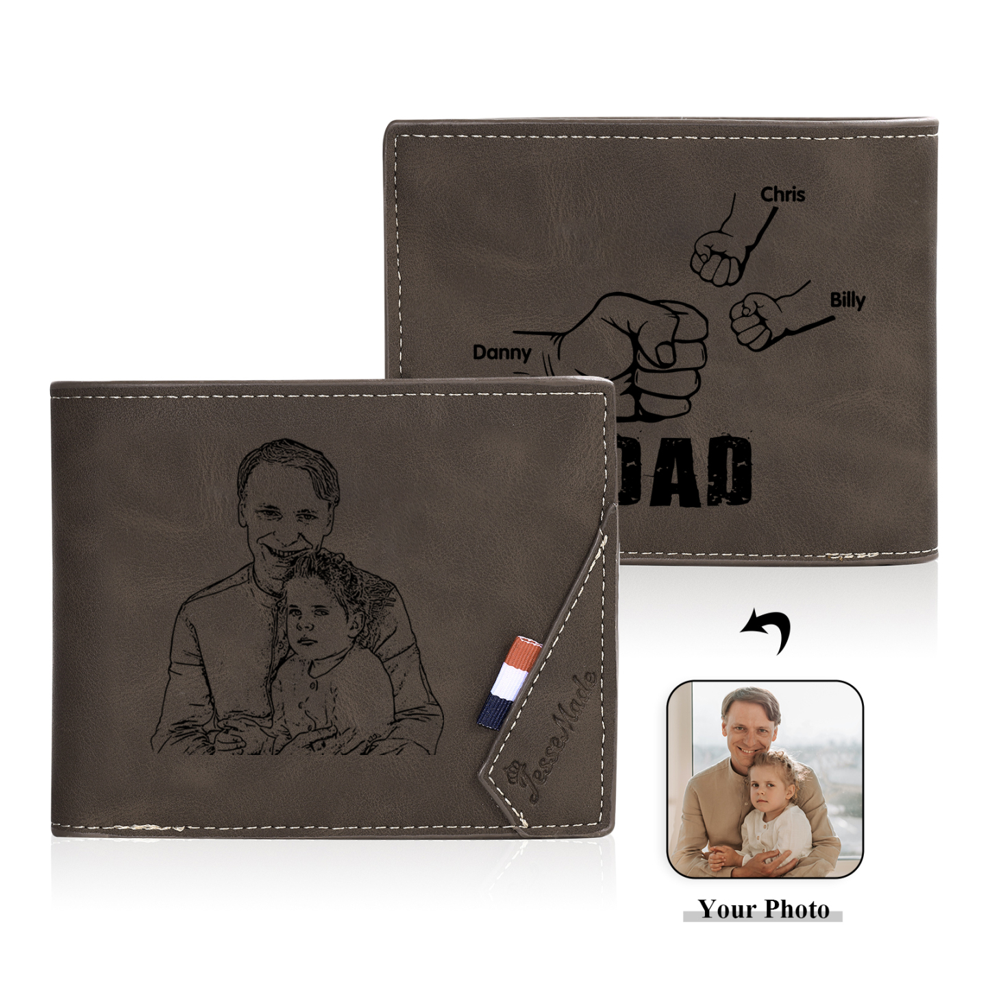3 Names - Personalized Photo Custom Leather Men's Folding Wallet as a Father's Day Gift for Dad