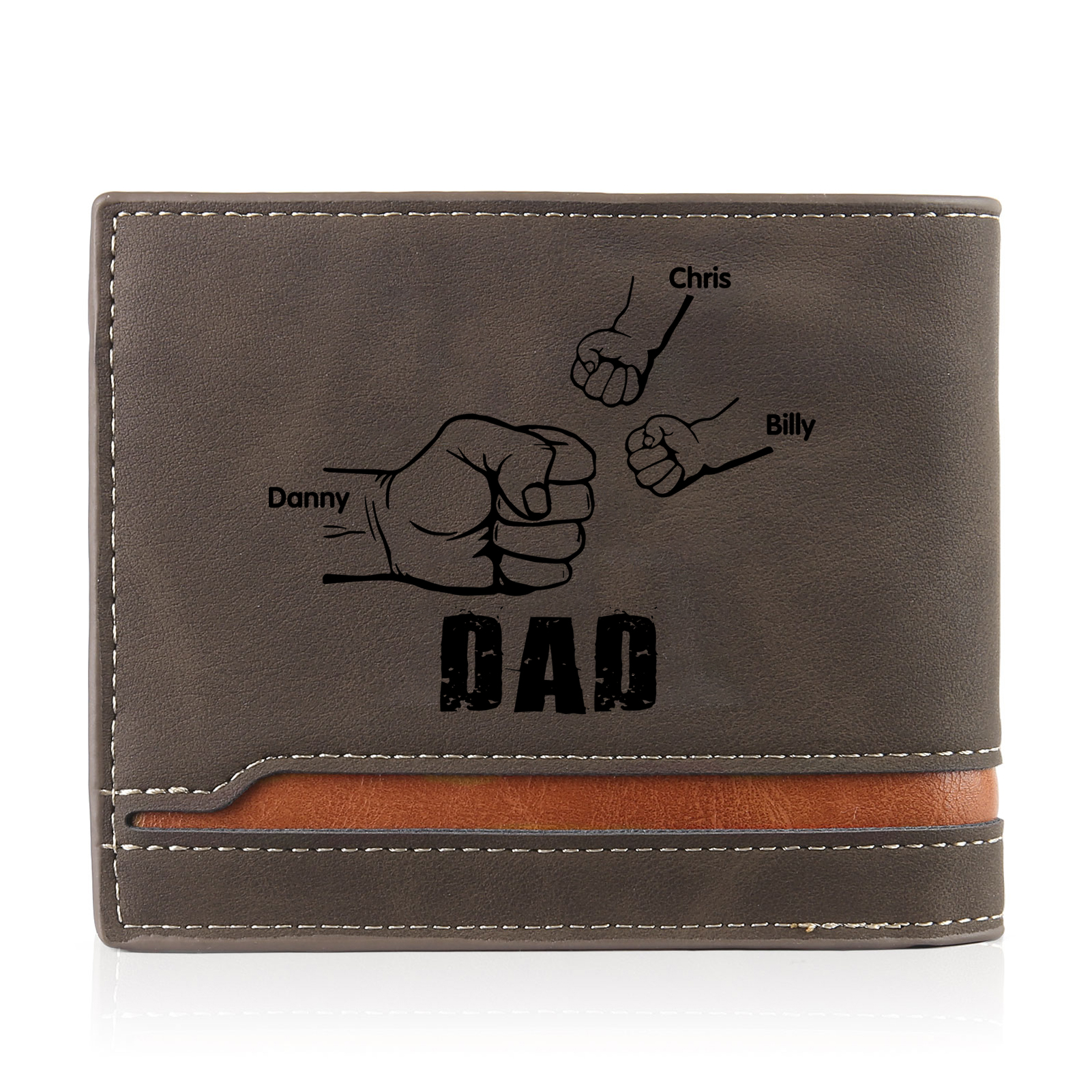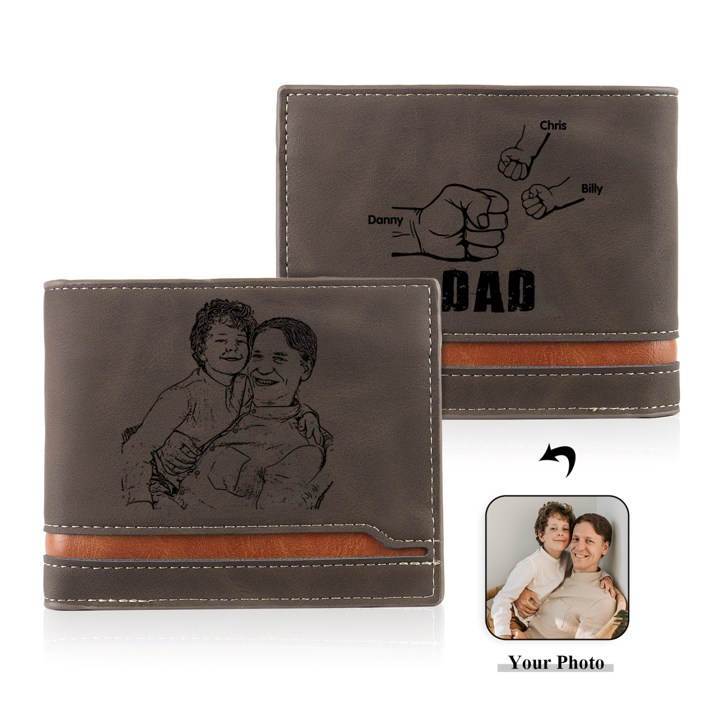 3 Names - Personalized Photo Custom Leather Men's Folding Wallet as a Father's Day Gift for Dad